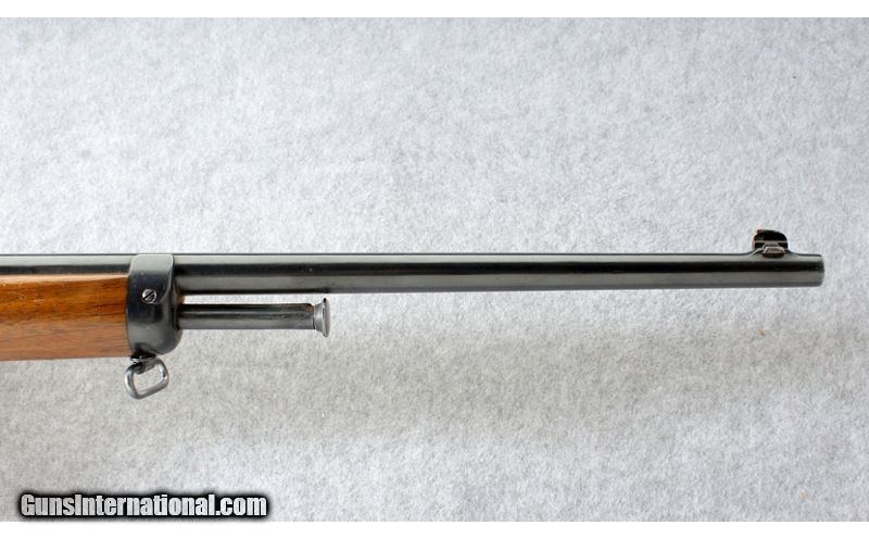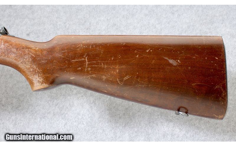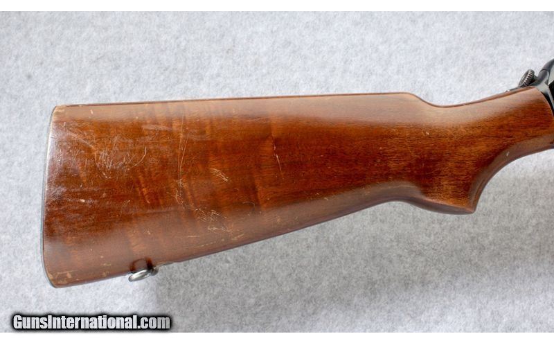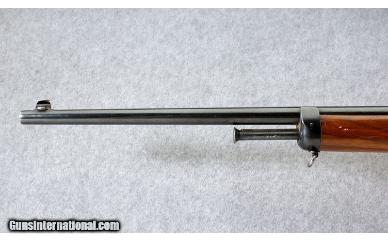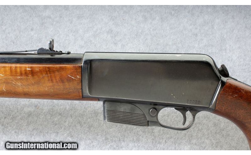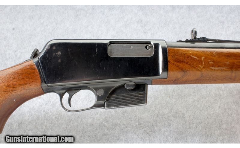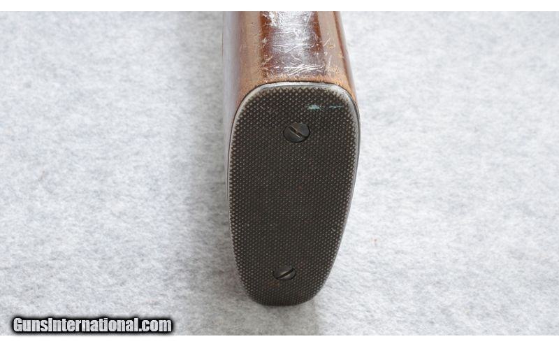 Description: The Winchester Model 1905 Self loader was based on patents filed in 1901 by T.C. Johnson, a longstanding employee of the Winchester Repeating Arms Company. The Model 1905 is a simple blowback design. It was produced from 1905 through 1920 with 29,113 manufactured. The now obsolete .32 Winchester Self loader cartridge pushes a 165 grain bullet about 1400 ft./sec. at the muzzle with 710 foot pounds foot energy. Manufactured 1907 .32 Winchester SOLD Metal Condition: Re-blued in fair condition. Wood Condition: Refinished in fair condition with scratches and dents Bore Condition: Good Barrels: 22 inch barrel Stock Dimensions: 14 inch LOP Butt Pad: Checkered steel plate Weight: 8 Lbs. 4 Oz. Sights: Buckhorn rear sight with bead front Item Location: Lehi, UT |