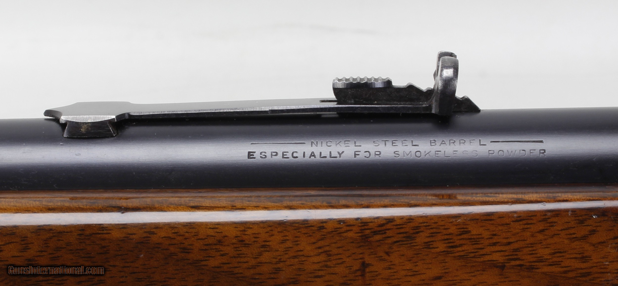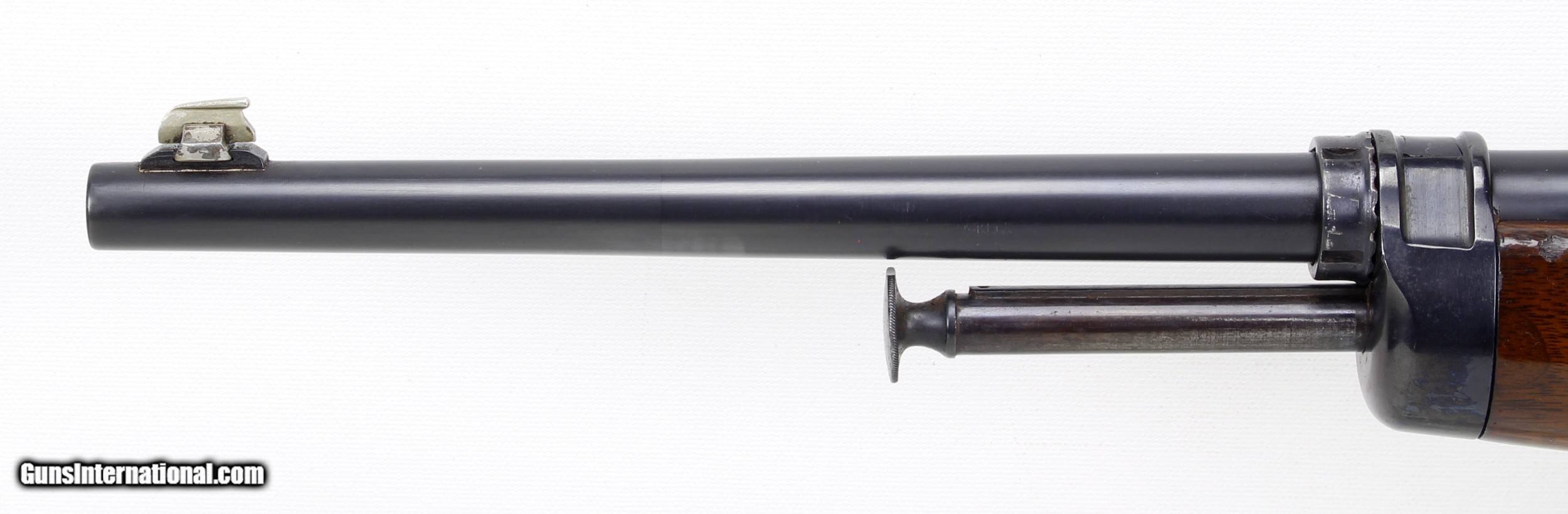 Description: Winchester Model 1910 Takedown in .401 Win. SN #12284. Mfg. in 1914. LOP 13 7/8". 19 1/4" barrel with an excellent bore. Blued metal is in very good condition other than some handling marks and nicks to the receiver. The really sharp looking Walnut stock and forend are in very good condition. Original buttplate. Very nice overall condition. SOLD Curio/Relic: Yes Manufacturer: Winchester Model: 1910 Takedown Serial Number: 12284 Caliber Info: .401 Win. Bore: Excellent Condition: VG Metal Condition: VG Barrels: 19 1/4 Finish: Blue |