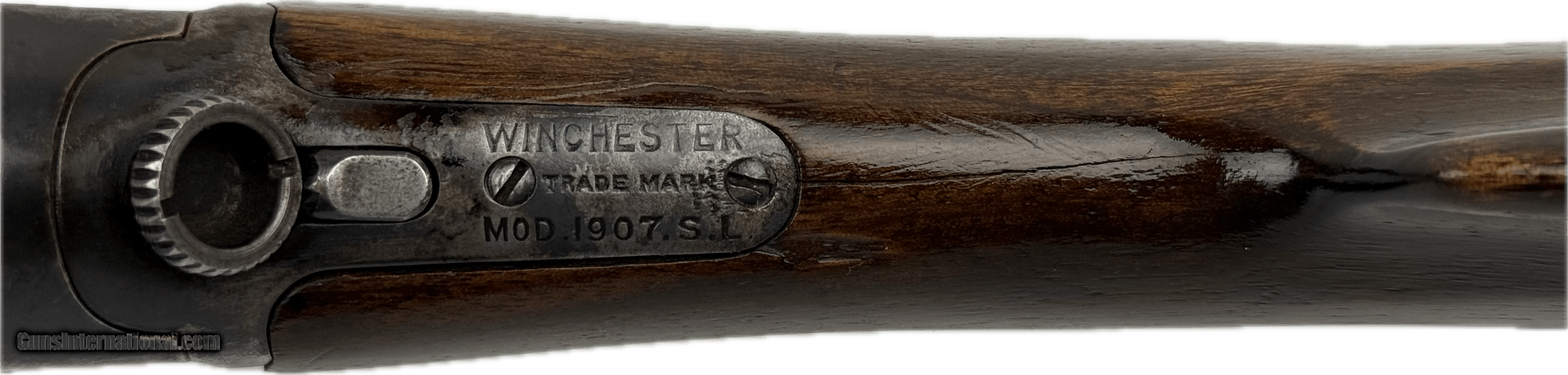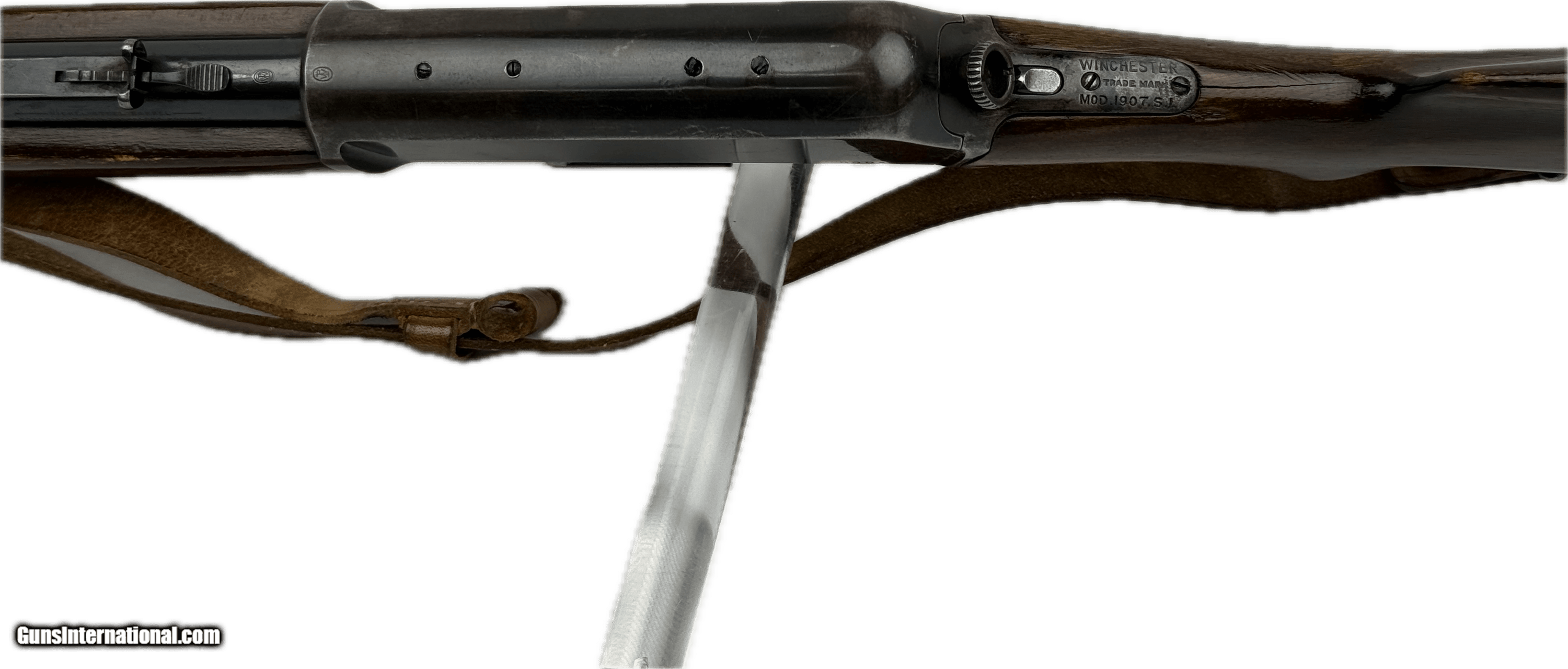 Description: Winchester, Model 1907 S.L., .351, 20” Barrel, Semi-Buckhorn Rear Sight, Brass Topped Post Front Sight, Drilled And Tapped Receiver, One Detachable Magazine, Two Piece Pistol Grip Stock, Sling Swivels, Leather Sling, Winchester Butt Plate, Mfg. Approx. 1907, Made In USA, 14” LOP, Serial # 3384, Condition: Very Good Plus, with scattered scratches, freckling, finish wear, professionally repaired cracks at upper and lower tang, Bore: Bright. Did this bring comfort to a WW1 pilot? Who’s side?************************************C&R*********************************25080292/58********************************C&R*********************************************** *******Free Shipping(Lower 48 States only)*********************Layaway Available************************Trades Considered*******************FIREARMS MAY HAVE FOREIGN PROOF AND IMPORT MARKS******* If you are the winning , you will receive payment instructions in a confirmation email • Payment: We accept United State Postal Service Money Orders or Credit Cards Add 3.5% Service Fee- Visa, MasterCard & Discover.