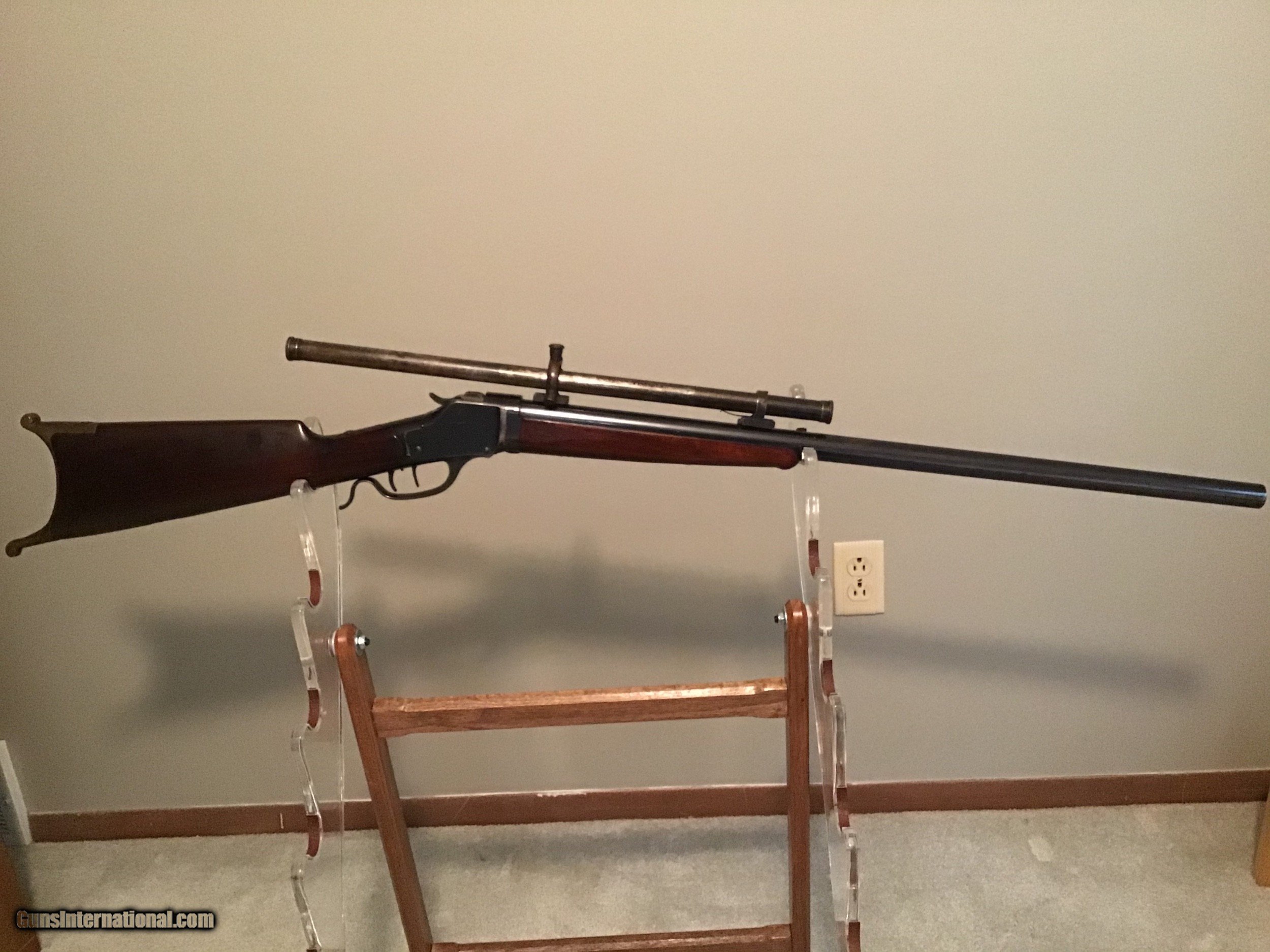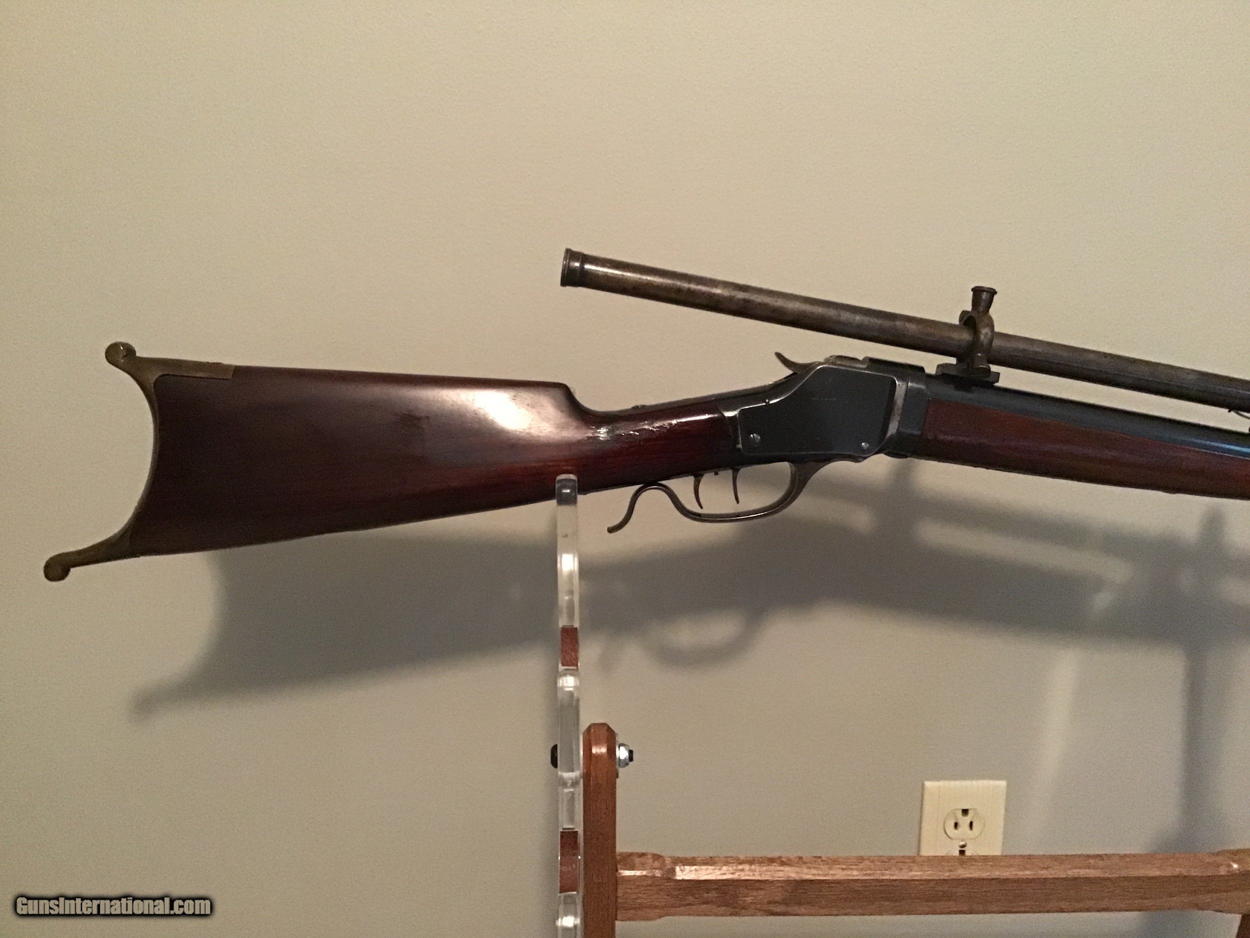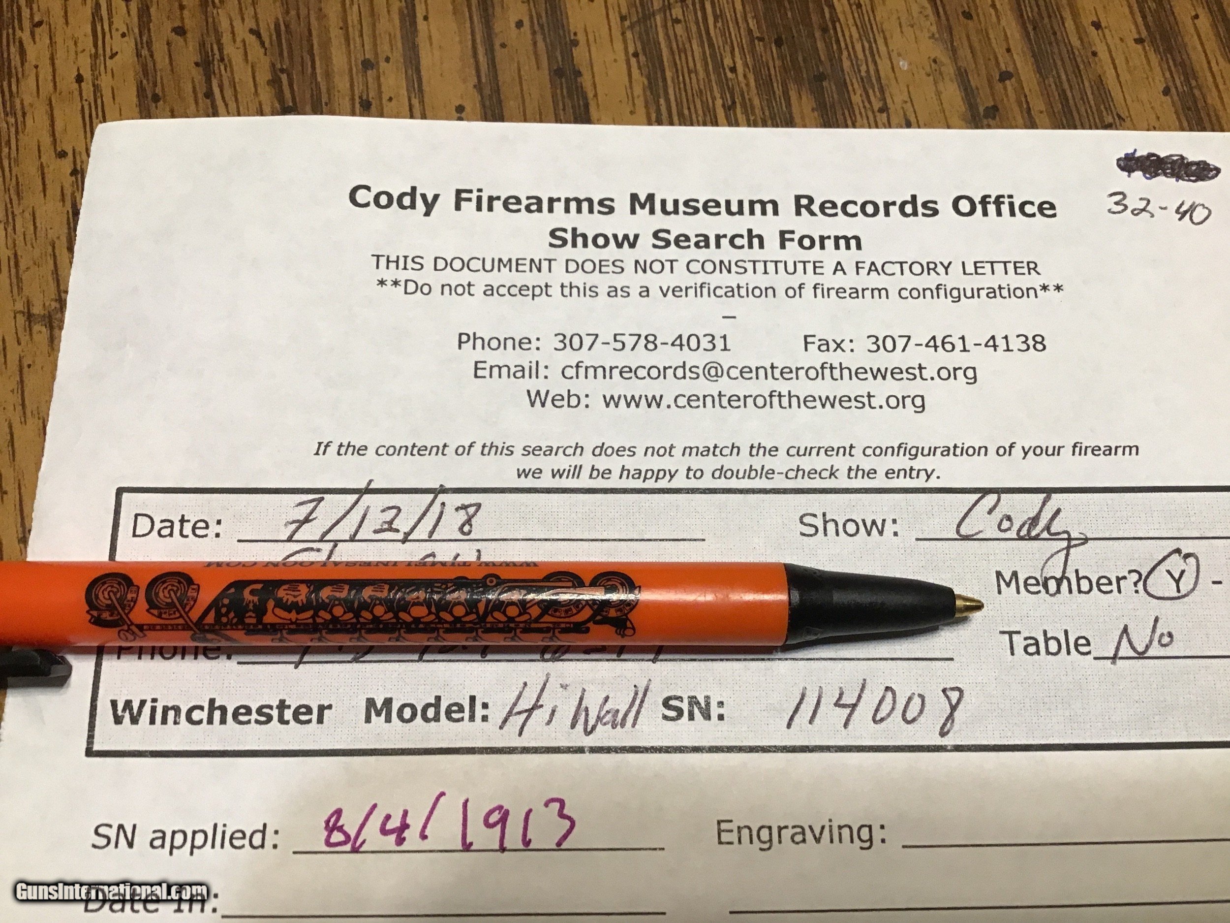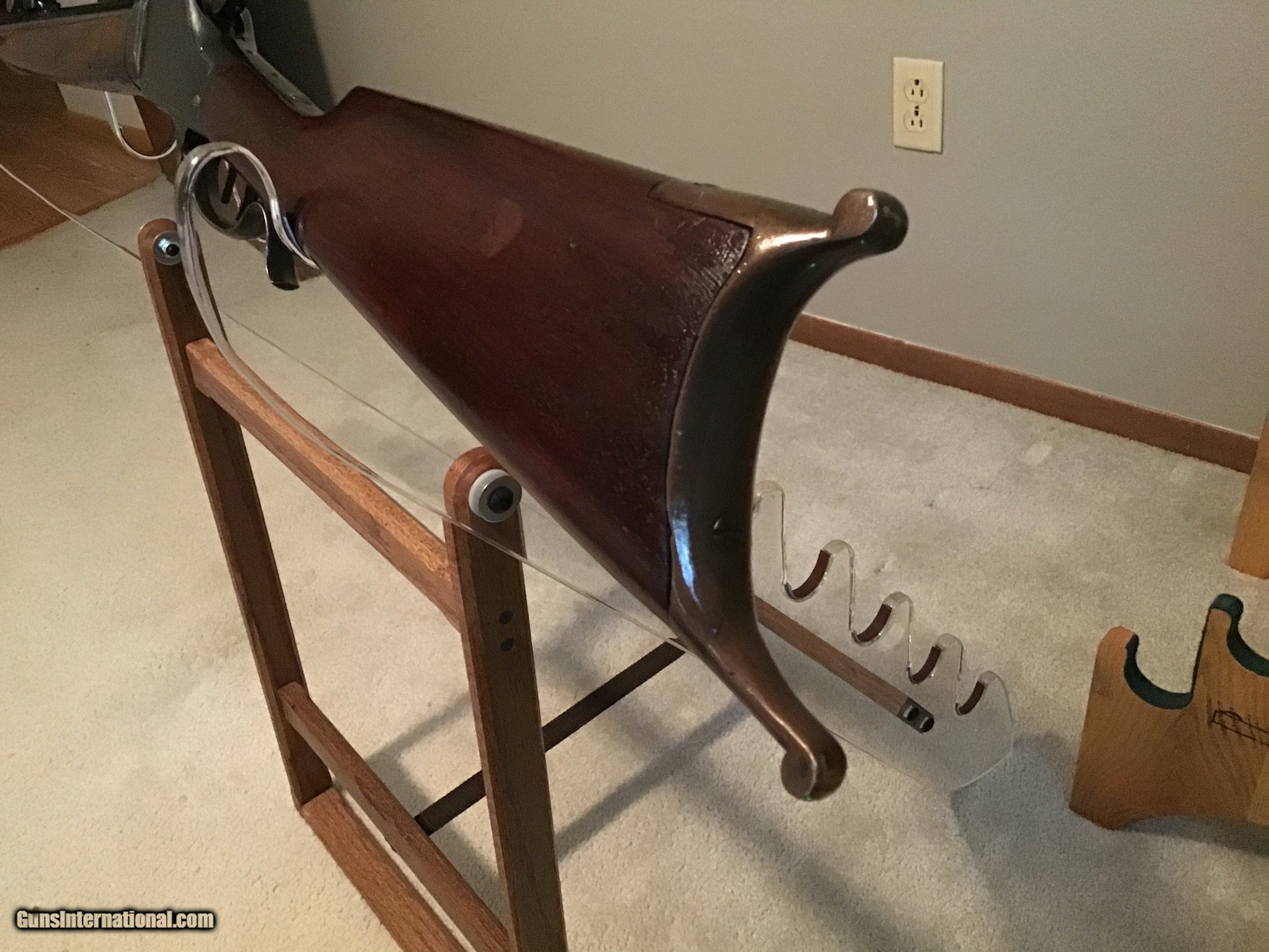Description: Winchester 1885 high wall. 32-40 caliber. Double set triggers. Takedown. Schuetzen butt stock. Came with a j.stevens no 535 scope which appears original. Excellent bore,really nice wood and original blue. I've never taken it down but I have shot it. Holds real tight pattern. Will ship for $65 to c n r or fll. .will give a 3- day inspection, you pay the shipping if you return it. Any questions call 715-923-0422. $3400 SOLD Curio/Relic: Yes Manufacturer: Winchester Model: 1885 Serial Number: 114003 Caliber Info: 32-40 Bore: Excellent Condition: Good Metal Condition: Original good. Wood Condition: Good Barrel Type: #3 Action: Single shot Triggers: Double set Stock: Schuetzen butt stock Fore End: Takedown Finish: Original blue Manufacture Date: 8-4-1913 Extras: Schuetzen butt,takedown Item Location: Suring wi. |