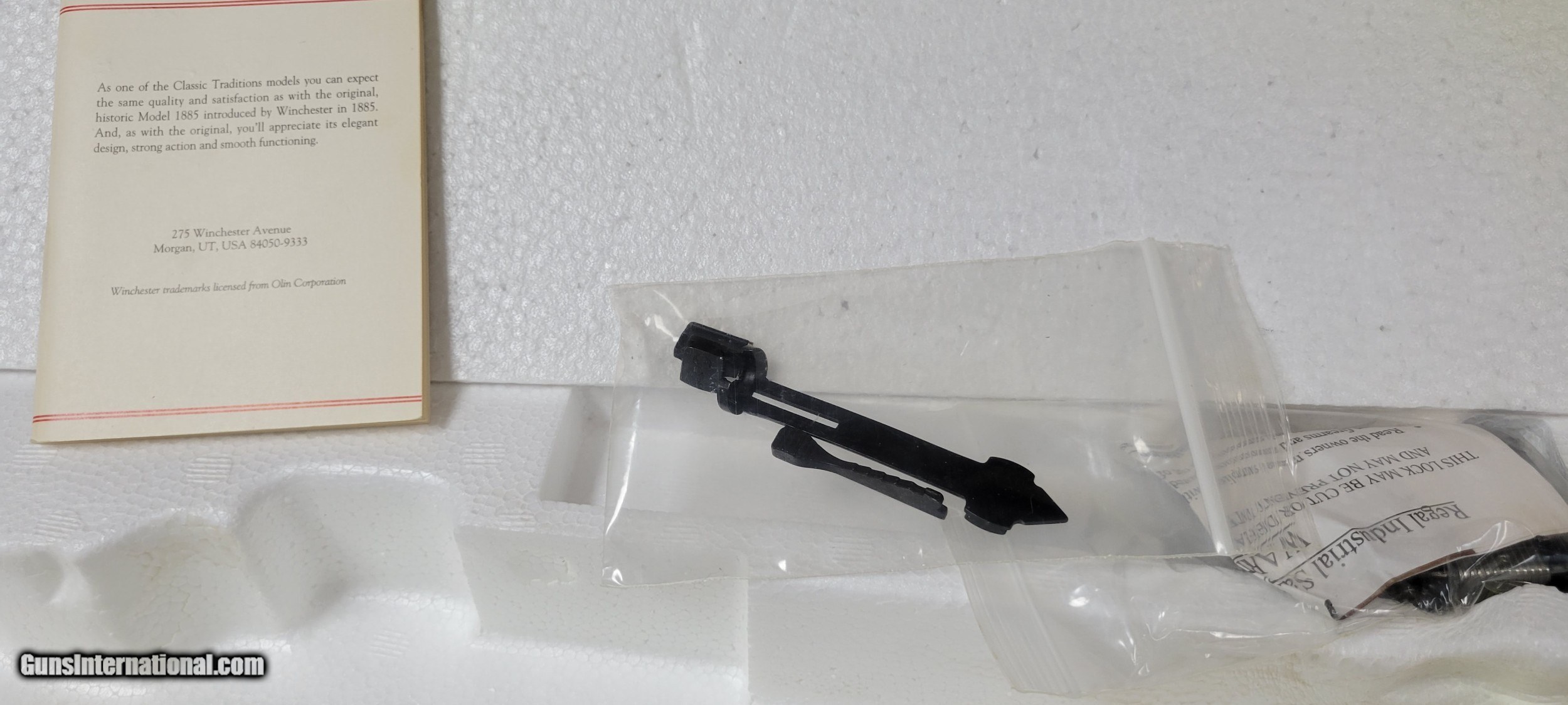 Description: This rifle is as all but new with the box and paperwork. It even has the extremely hard to find bases! 24" octagon barrel. All pertinent details will be in the picture of the box end. The factory sights are not on the gun but do come with it. Please call or email with any questions. WE TAKE CREDIT CARDS, DEBIT CARDS, MONEY ORDERS, CASHIER CHECKS, OR EVEN PERSONAL CHECKS.........AS LONG AS THEY'RE GOOD! 3% will be added to all charge cards. Sales tax will be charged unless you have a sales tax/resale permit. GUNS WILL BE HELD UNTIL PERSONAL CHECKS CLEAR. GUNS SUBJECT TO PRIOR SALE. There is a $50 shipping charge per gun and is NOT refundable. Insurance may be extra. Thank you, Darryl Howard SOLD |
