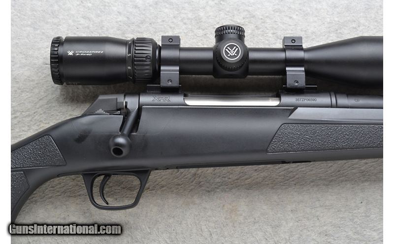 Description: This Winchester Model XPR is a right hand bolt action rifle in .30-06 Sprg. Cal. It has a 24 inch barrel. It is outfitted with a Vortex Crossfire 3-9x40 Scope. No iron sights. The butt stock is a textured grip black polymer pistol grip. The forearm is a textured grip black polymer. It has a loaded chamber indicator .30-06 Springfield SOLD Chambers: Right hand bolt action detachable magazine. Metal Condition: Very good. A few minor surface marks. Bore Condition: Excellent. Barrels: 24 inch. Stock Dimensions: LOP 13 5/8 inches. Fore End: Textured grip black polymer. Butt Pad: Black rubber recoil pad. Weight: 8 lb. 2 oz. Sights: Vortex Crossfire 3-9x40 Scope. Item Location: Richfield, WI |