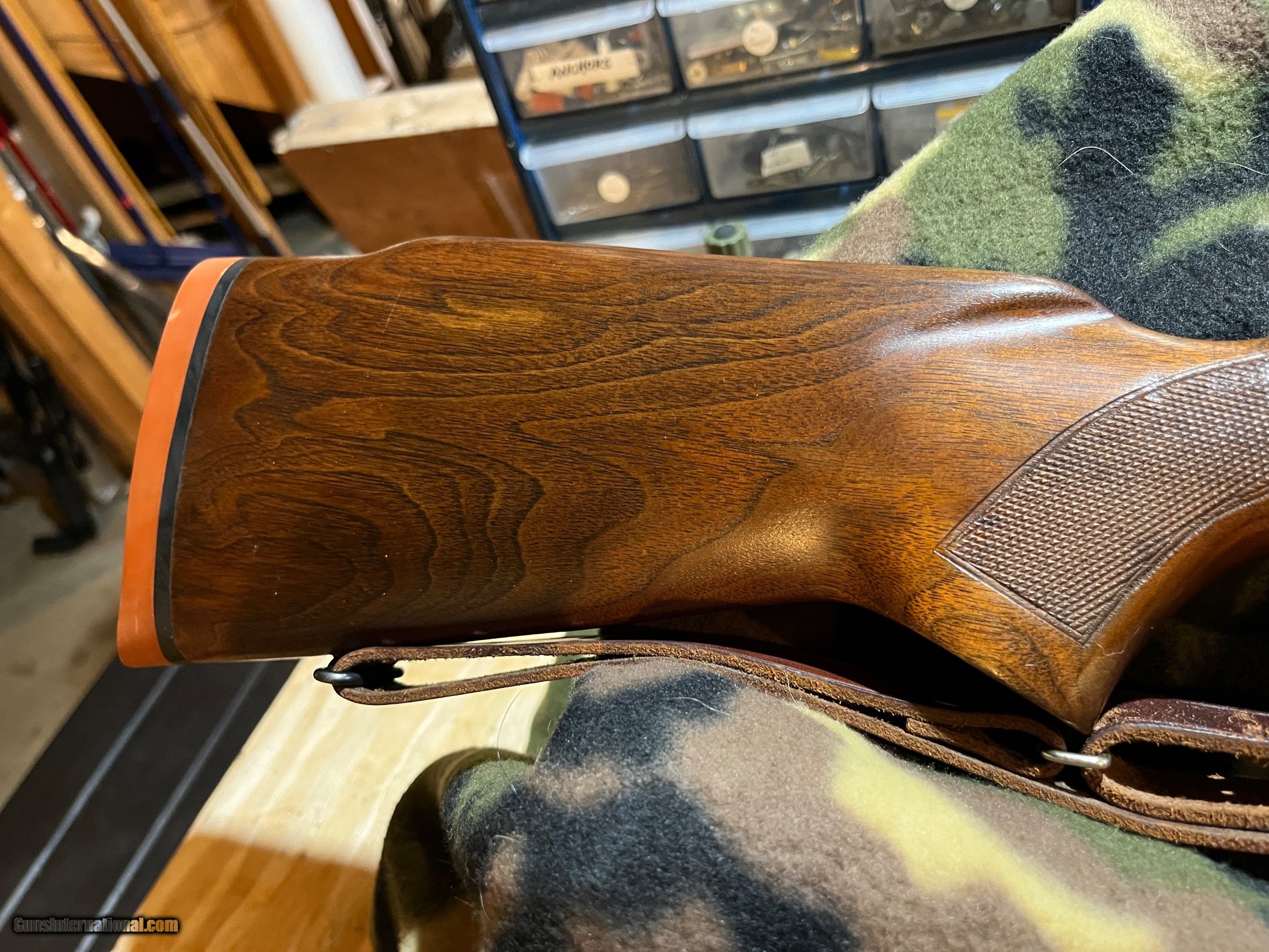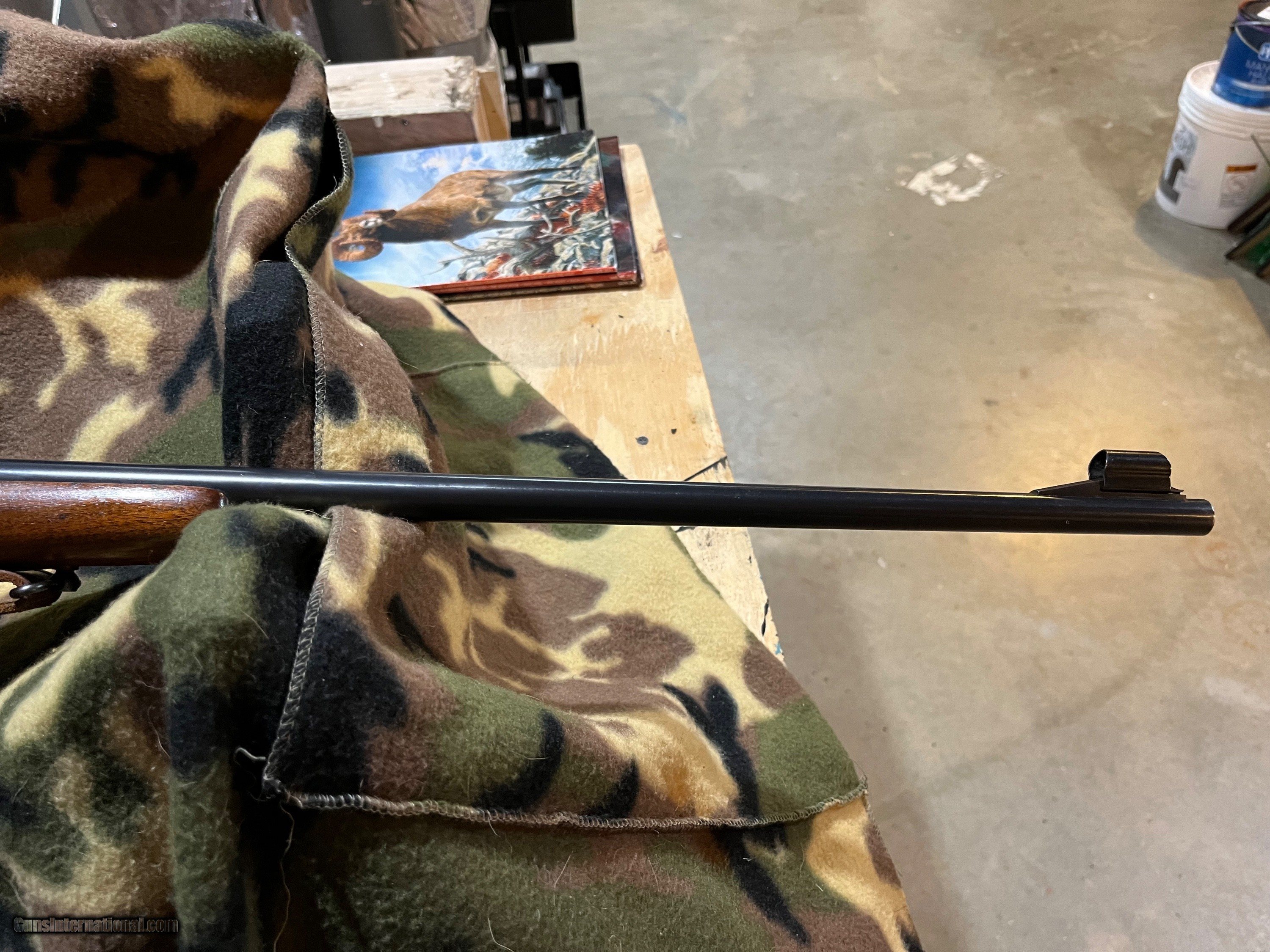 Description: NEW PRICE. Model 70 made in 1960. Metal is in great shape except for floorplate wear and scratch (see photo). Wood also in fine shape with handling dings on one side of buttstock and an egg sized flat spot in finish beneath breech ring on right side. Bore is excellent. No throat wear which is sometimes a problem on .264s. LOP is 13 7/8" over Winchester pad. Barrel length is 26". Hooded front sight and flip up rear. Bolt numbered to the gun. Comes with Redfield one piece mount and Leupold rings, but scope is not included. Will it kill a big deer? See last photo. Price includes shipping. SOLD Curio/Relic: Yes |