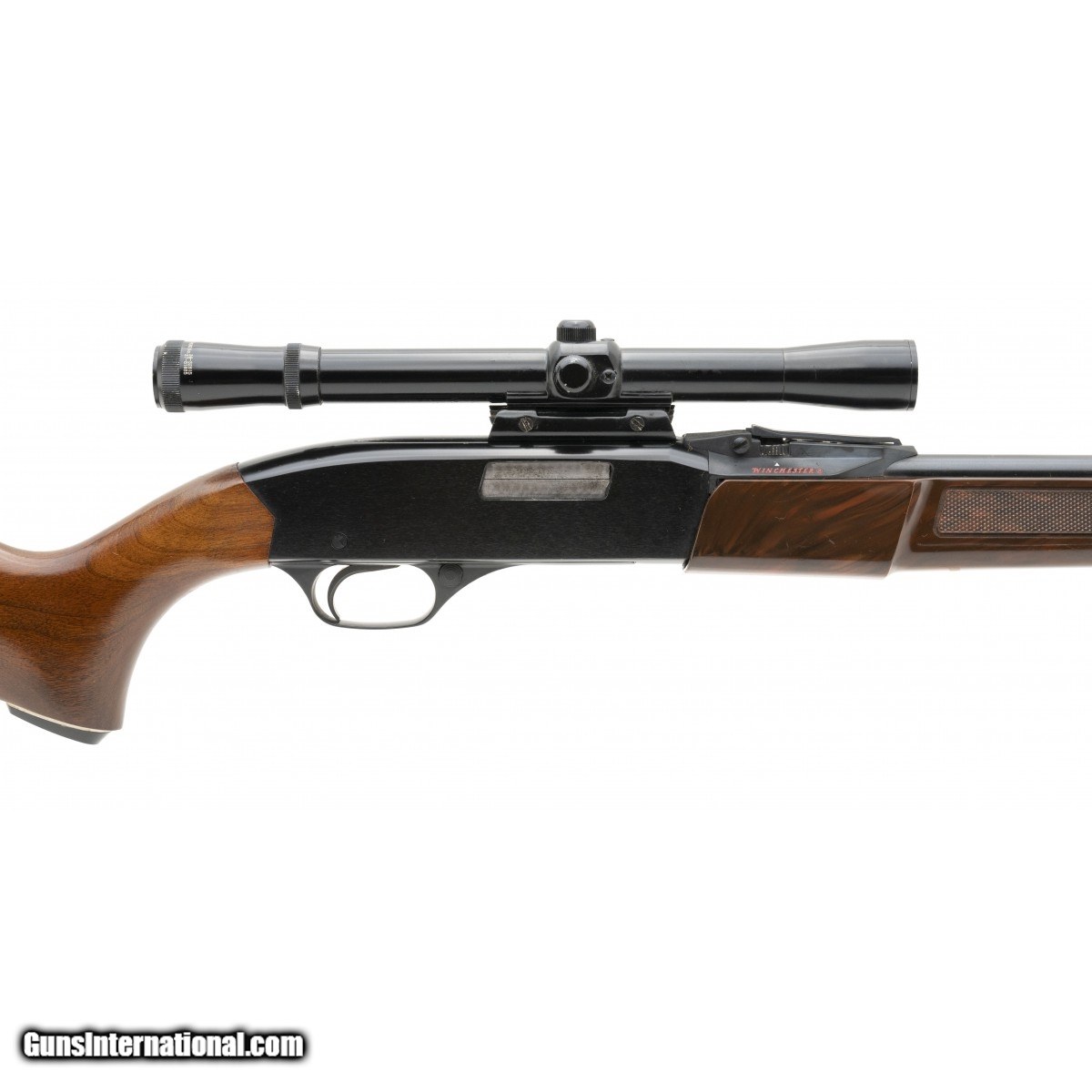 Description: " Pump action .22 with unusual plastic wood grain forend, and walnut stock. Has a vintage Tasco scope. A neat gun in excellent condition. SOLD |