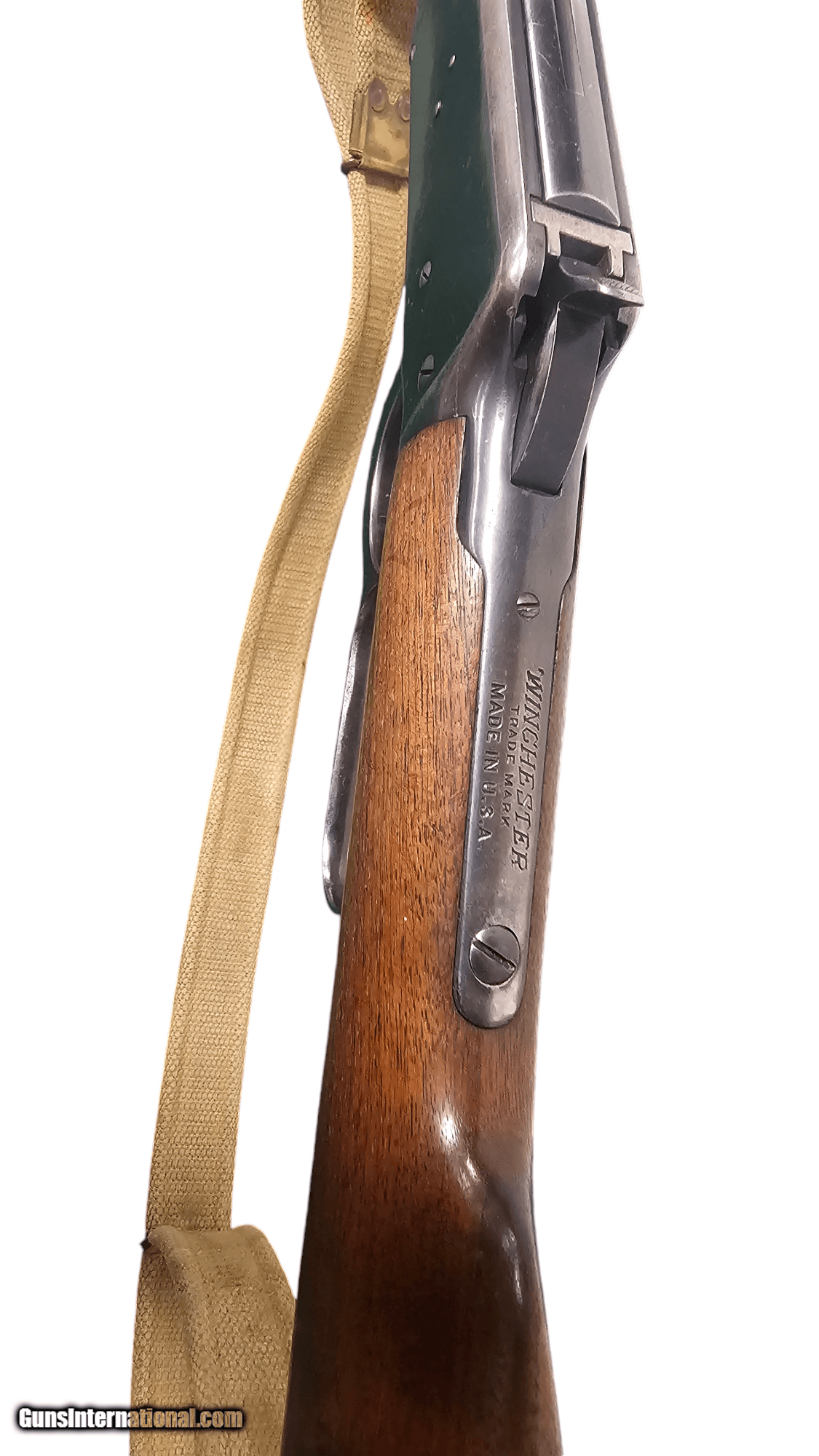 Description: **NEW LOWER PRICE!** **$1900** Manufactured circa 1942, this Winchester Model 94 lever action carbine is chambered in 30 W.C.F. (.30-.30), with a 7 round capacity, a barrel length of 22 inches and an overall length of 37.5 inches. This is an AMAZING rifle with such history! Not only is this a beautiful example of a coveted Winchester model 94, but it is a Pacific Coast Militia Rangers / PCMR issue rifle as well. With only between 2,500 and 3,000 of these rifles issued to the Canadian Department of Defense to be used by the Pacific Coast Militia Rangers (PCMR) along Canada’s west coast during WWII, very few remain , with VERY limited numbers in the United States. This is a highly desirable and collectible rifle for the discerning Winchester collector. The action is nice and smooth, locks up nice and tight. The metal finish has wear marks as seen in the photos as well as the wood stock and forearm. The Rangers were civilians trained and tasked with patrolling the wild and largely uninhabited western front of the Canadian coastline against a feared Japanese invasion after the attack on Pearl Harbor. The “C-broad arrow” is very well marked and visible in all three original marking locations: on the receiver, on the butt stock and on the forearm. The Winchester proof marks on the rear tang area are visible. An original issue canvas sling is included and attached, distinct to the PCMR Winchester. The butt stock swivels used were the same as the type seen on Ross rifles, and the forward barrel bands were custom made and fitted by different gunsmiths, using Lee Enfiled sling swivels. The bore is bright and clean, and overall for the history and age of this rare rifle, is in very good condition. At the end of the war the Militiamen had the option of buying their rifles for $5.00. Of the original issued rifles, 600 were returned to the Canadian government after the end of the war and used for a limited time then destroyed, leaving an even more limited number in circulation. A basic internet search will reveal some great history and information on these rifles and the PCMR militia: “The Canadian government announced the formation of the “Coast Defense Reserve Militia” on March 14, 1942, Shortly after, the name was changed to the Pacific Coast Militia Rangers, or PCMR”. To prepare the rifles for service, they were all fitted with sling swivels by local gunsmiths, with the process for the Winchester model 94’s sling fitment following one of three options: Using buttstock swivels of the same type as on the Ross rifle, with an additional barrel band produced locally, commercial aftermarket sling swivels, or finally, a combination of the two. Over one hundred companies were formed across British Columbia and the Yukon territory. At first they used their own weapons, and then some old surplus P-17, Ross and other rifles, but eventually most were issued lever action Winchester Model 94 .30-30 caliber carbines, with a few Marlins as well. Their uniforms at first consisted of just a cap badge and armband, but later some weatherproof tunics and other gear were issued.Some 15,000 men ranging from adolescents to grandfathers served in the PCMR. It was disbanded in September 1945, Although they never engaged the Japanese in battle, they preformed vital work such as emergency rescue and firefighting. Perhaps most importantly, they instilled some degree of confidence in the local population that they were being protected without tying up large numbers of regular forces who were needed overseas. By providing a degree of military control and discipline they also kept any overenthusiastic locals from running around the woods shooting at shadows in the hysteria-prone atmosphere of the day.” This firearm was imported from Canada and bears a discreet import mark. Please feel free to contact us with any questions. Payment Methods: payment can be made by personal check, cashier’s checks or money orders. We also accept VISA, MasterCard, and Discover cards, subject to a 3.5% charge. Checks and money orders can take 7-10 business days to clear upon arrival to us. Sales Policy: Any questions or concerns you may have should be resolved before committing to purchase by contacting us. Some items may not be legal in every state, thus it is up to you, the buyer, to know and comply with your local and state laws. While we do our best to visually inspect all firearms, the Buyer is responsible for determining if a used gun is safe to shoot. The firearms offered have not been test fired, and we recommend that you should have any used firearm inspected by a gunsmith prior to shooting. We strive to provide top quality service along with fair and competitive prices. All of the information provided on each firearm is as accurate as possible. SOLD |