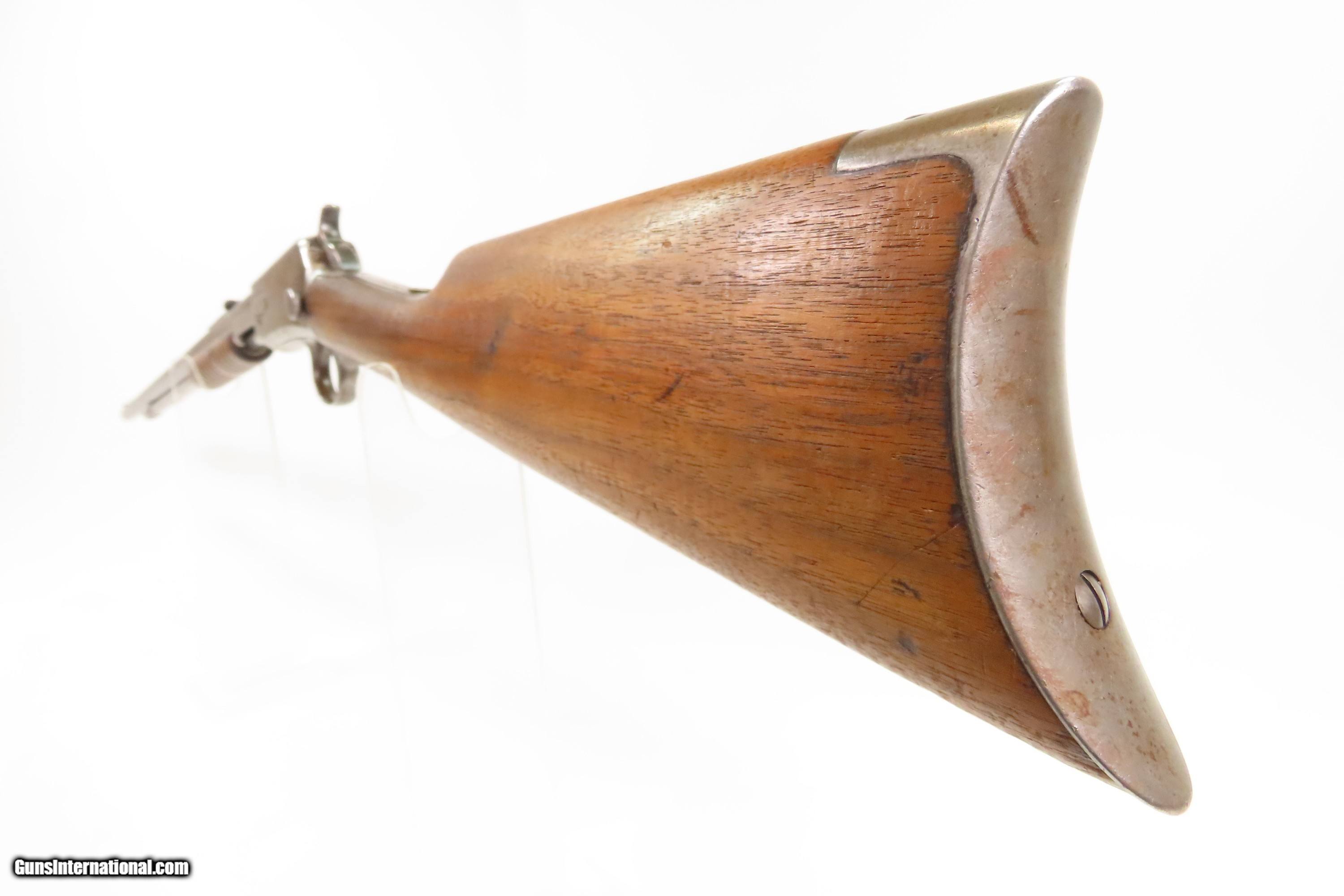 Description: 1915 3rd Model WINCHESTER M1890 SLIDE Action TAKEDOWN Rifle in .22 WRF C&R Easy Takedown Sporting/Hunting/Plinking Rifle Here we present a C&R Winchester Model 1890 3rd Model Slide Action Rifle chambered in .22 Long Rifle Rimfire, manufactured in 1915 in New Haven, Connecticut. In the late 1880s, the Winchester Repeating Arms Company asked John Moses Browning to design a replacement for the Model 1873 rifle, since the rim fire version of the Model 1873 had never achieved any great popularity. On June 26, 1888, a patent for the new design was issued to John & Matthew Browning. Under this patent, Winchester created the second repeating slide action .22 rifle ever successfully developed and manufactured, being narrowly edged out by the Colt Lightning small frame carbine The Model 1890 proved to be the most successful repeating rim fire rifle for general all around shooting ever made by Winchester. The overall condition is good. Remnants of original blue on the barrel with a mixed gray patina. The stock is refinished with a stable crack under and to the right to the comb. Replacement screws in the receiver tang. Winchester proofed barrel/receiver. The wood on the slide remains in good condition. The bore is bright with serviceable rifling and a spot of pitting midway. Own the original! This firearm is classified as a Curio & Relic. Barrel: 24 inches. Caliber: .22 Winchester RimFire Overall condition as seen in photos. Very Fast. Very Safe. FREE SHIPPING. Will need to be sent to your local FFL or C&R Licensee. This firearm is classified as a Curio & Relic. Guaranteed AUTHENTIC & Includes CERTIFICATE OF AUTHENTICITY. $1650 #257045 Curio/Relic: Yes Price: $1,650.00 Buy Now Pay with ![]() Contact Seller |