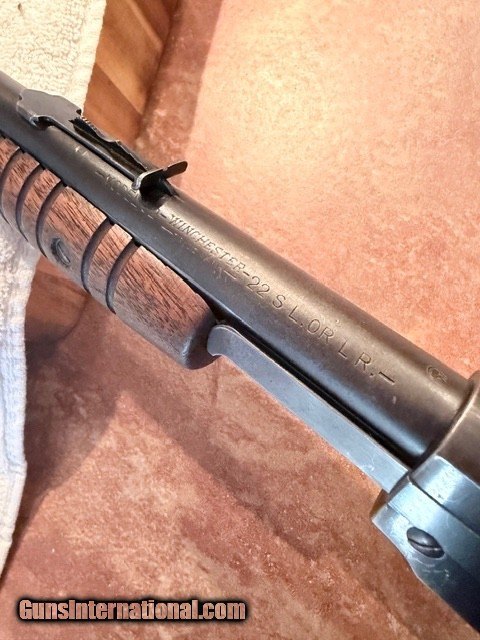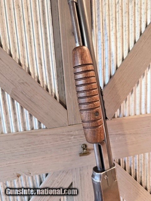 Description: 1939 Winchester 62 pump action 22 lr rifle. Gun is in original condition, wood is very good shape, no repairs or cracks, bluing show high edge wear on the receiver and some bluing loss on the barrel because of the slide action. The bore is very nice and rifle functions perfectly. If your looking for a nice original shooter this would be a good one. $35 shipping FFL to ffl zelle , cashiers, USPS MO, Credit/Debit add 3% Rifle Caliber: .22 Long Rifle Price: $675.00 Shipping: $35.00 Buy Now Contact Seller |