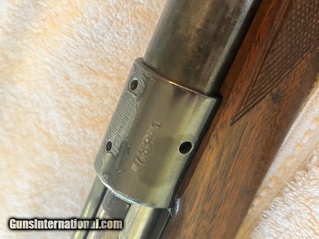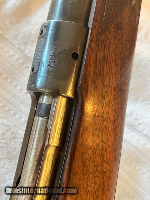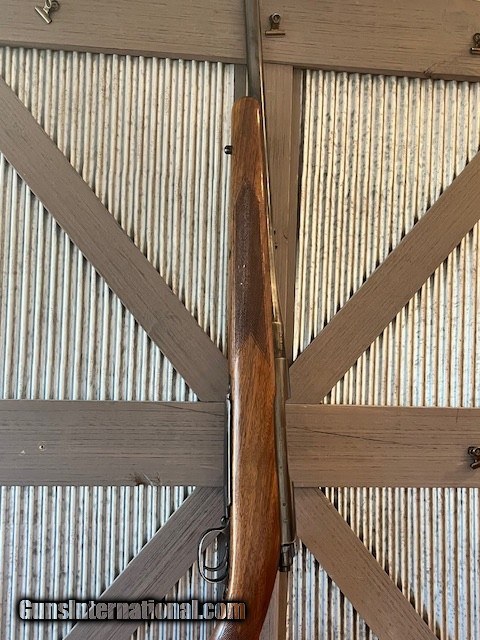 Description: Serial number dates the rifle to 1946, clover leaf tang.At some point the rifle was rebarreled to 338 Win Mag. Stock is in great shape for its age, bluing is thinning on the barrel and receiver. No sights or blocks, rifle is very presentable. SOLD |