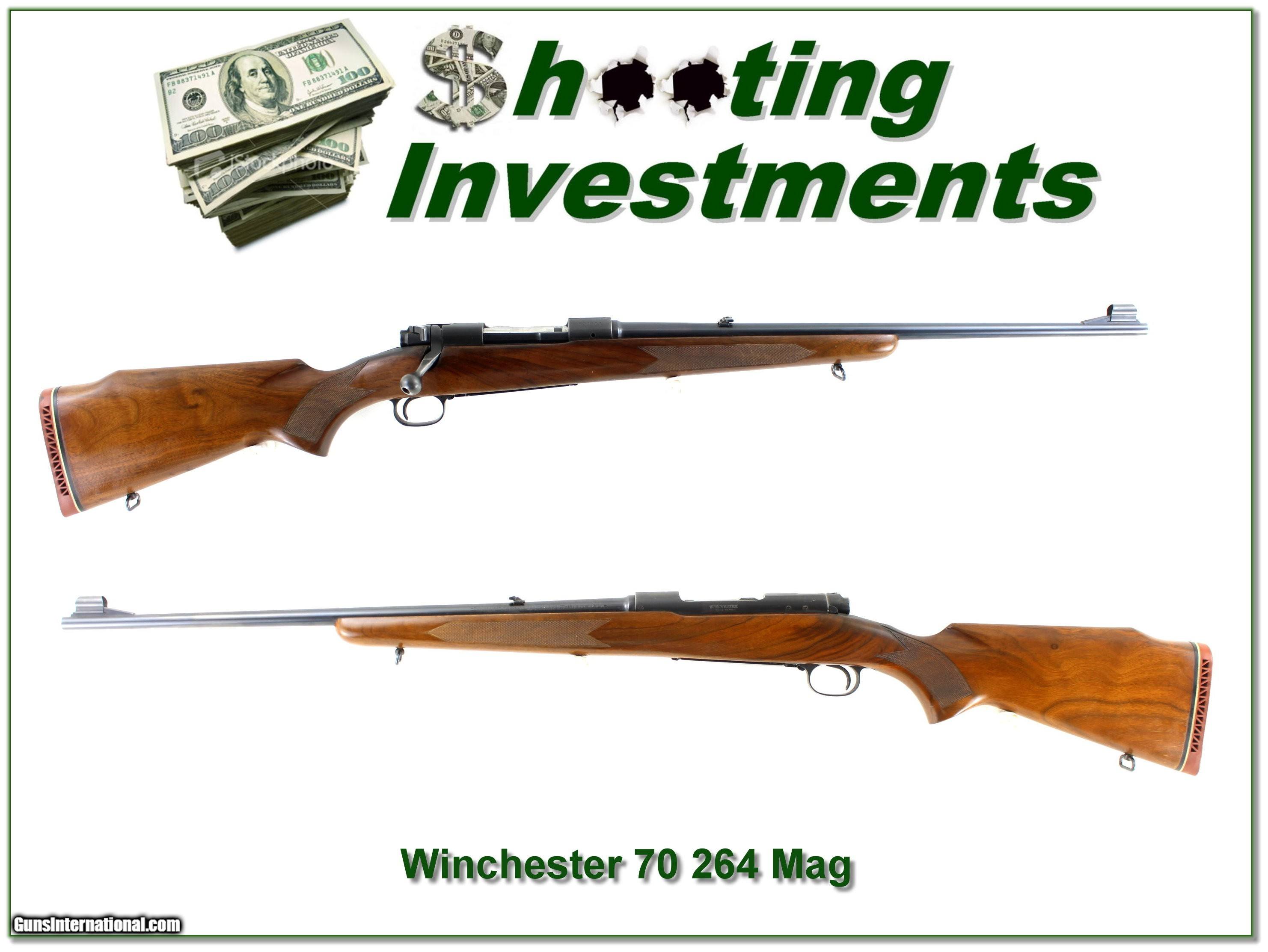 Description: Collectors and hunters, this is a hard-to-find Winchester pre-64 Model 70 Featherweight in 264 Winchester Magnum. It is all-original with much nicer wood grain than most. The barrel is 22in with open sights and original from t hood still in place. The blue is nearly all present with light thinning at the muzzle. The wood has just a few minor marks. It has a Winchester recoil pad. It will make a fine addition to your collection or be an impressive hunting gun. Shipping and insurance is $49. Please email me with any questions or larger pictures. (Consign your quality firearms with Shooting Investments for only 12%! Let me know if you have any you would like to sell!) 26-0101 Payment: Payment is by Money Order, Cashier’s Check or Personal Check. I can now also accept Credit Cards (MasterCard, Visa, Discover & American Express) with a 3% convenience fee. Shipping: The shipping charge will be listed in each description. It is $49 for most firearms. Some heavy guns or those insured for over $2000 will be higher. Shipments to Alaska and Hawaii are higher because air shipment is required. Most firearms are shipped on Tuesday and Thursday and usually in 5 days of receipt of payment. We package all shipments carefully and insure them. Optics are shipped Priority Mail and most other non-firearm shipments are shipped First Class. Returns: Our return policy is simple. If for any reason you are not pleased with your purchase, you may return your item for a full refund of purchase price. Ammunition cannot be returned. It is important to us that you are happy. Guns cannot be fired or dissembled before returning them and they must be returned in the same condition as received. Notification of a return must occur within 3 days of receipt at your dealer. Shipping, convenience and dealer fees are not refundable and are the responsibility of the buyer. Lay-a-way: If needed, we offer a 60 day lay-a-way option on most firearms. It is 1/3 now, 1/3 in 30 days and 1/3 in 60 days. Lay-a-way firearm sales are final and cannot be returned. If a lay-a-way is not completed the first payment cannot be refunded. Consigning your firearms with Shooting Investments: We will help you get top dollar for your firearms. While most local guns shops charge 20% or more, our fee is only 12% with a minimum of $100. At your local gun shop it might take months to sell. Selling on-line provides instant access to thousands of interested buyers. You won’t find any other on-line dealer willing to sell your firearms for only 12% or listing every gun on 3 separate s. Selling through an House typically costs the seller 15% and the buyer an addition 15% (so 30%) and you have to wait several months to sell and longer to receive funds. If properly priced, we will sell your firearms within a few weeks. Send us an email or give us a call and we’ll explain how easy it is for you to get top dollar. Trading: Trading for us is really just buying your gun to re-sell. If you have a gun you want to trade, please email a picture and we will let you know what we can give for it. You will always get more if we sell it for you on consignment. Price: $2,699.00 Contact Seller |