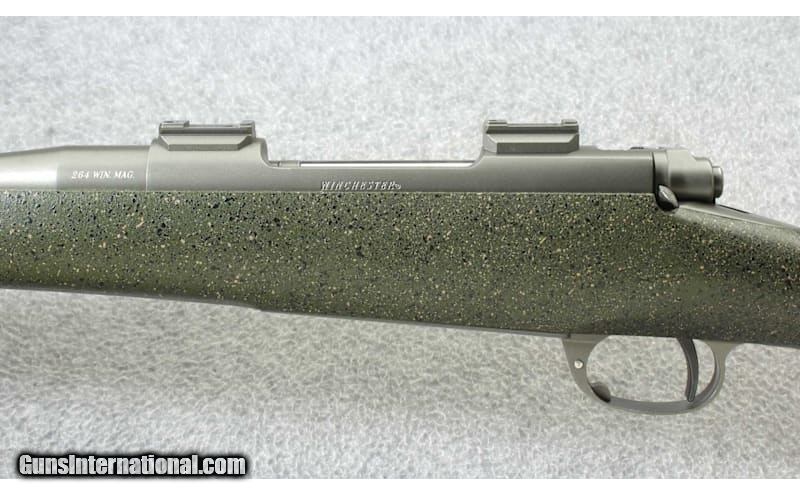 Description: This custom rifle by Basner Ultimate Rifle LLC was built on a recent production Winchester Model 70 action. It features: a control round feed action, a large Mauser style claw extractor, three position safety, hinged floorplate and composite stock. .264 Winchester Magnum SOLD Metal Condition: Excellent Barrels: 26 inch threaded and fluted barrel Stock Dimensions: 13 1/2 inch LOP Butt Pad: Decelerator pad Weight: 7 lbs. Sights: Drilled and tapped for scope mounting Item Location: Lehi, UT |