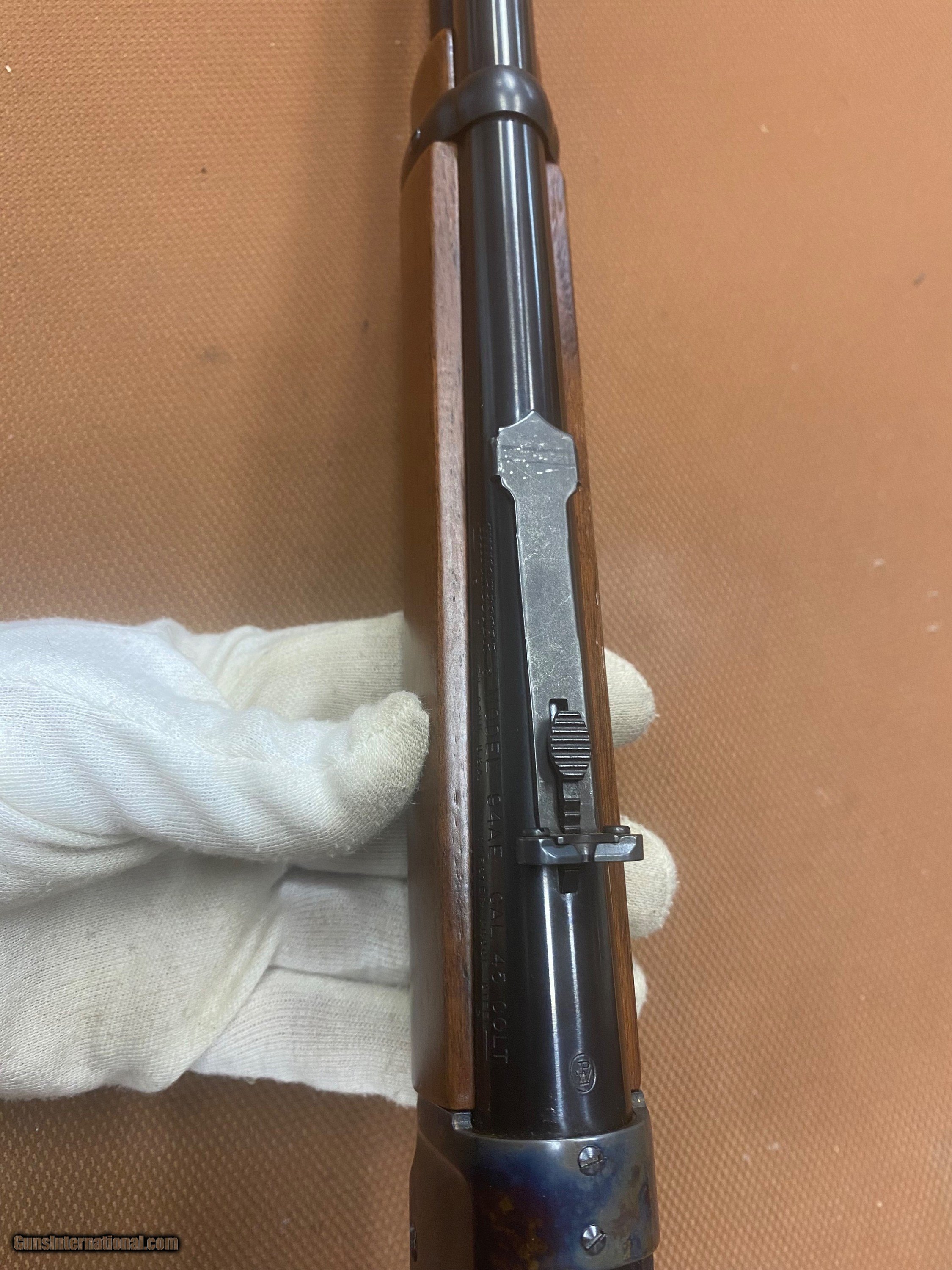 Description: Beautiful and Hard to come by, Winchester 94 AE Trapper Saddle ring, in 45 Colt. It features a gorgeous blue finish with super vivid case color hardened receiver. The gun operates flawlessly. Barrel and chamber like new! Beautiful walnut stock and forearm! Best part of all, NO ugly tang safety nor side safety. Old style safety, like it's supposed to be! As the pictures clearly show, this rifle is in mint condition! Only imprison is a little spot on foredom, right hand side (please see last picture). Cashier checks and usps money orders same as cash. Personal checks will be held until funds clear (3-5 business days). Shipping with insurance will be $75 to Continental US only (AK & HI extra). No sales to California. SOLD Rifle Caliber: .45 Colt |