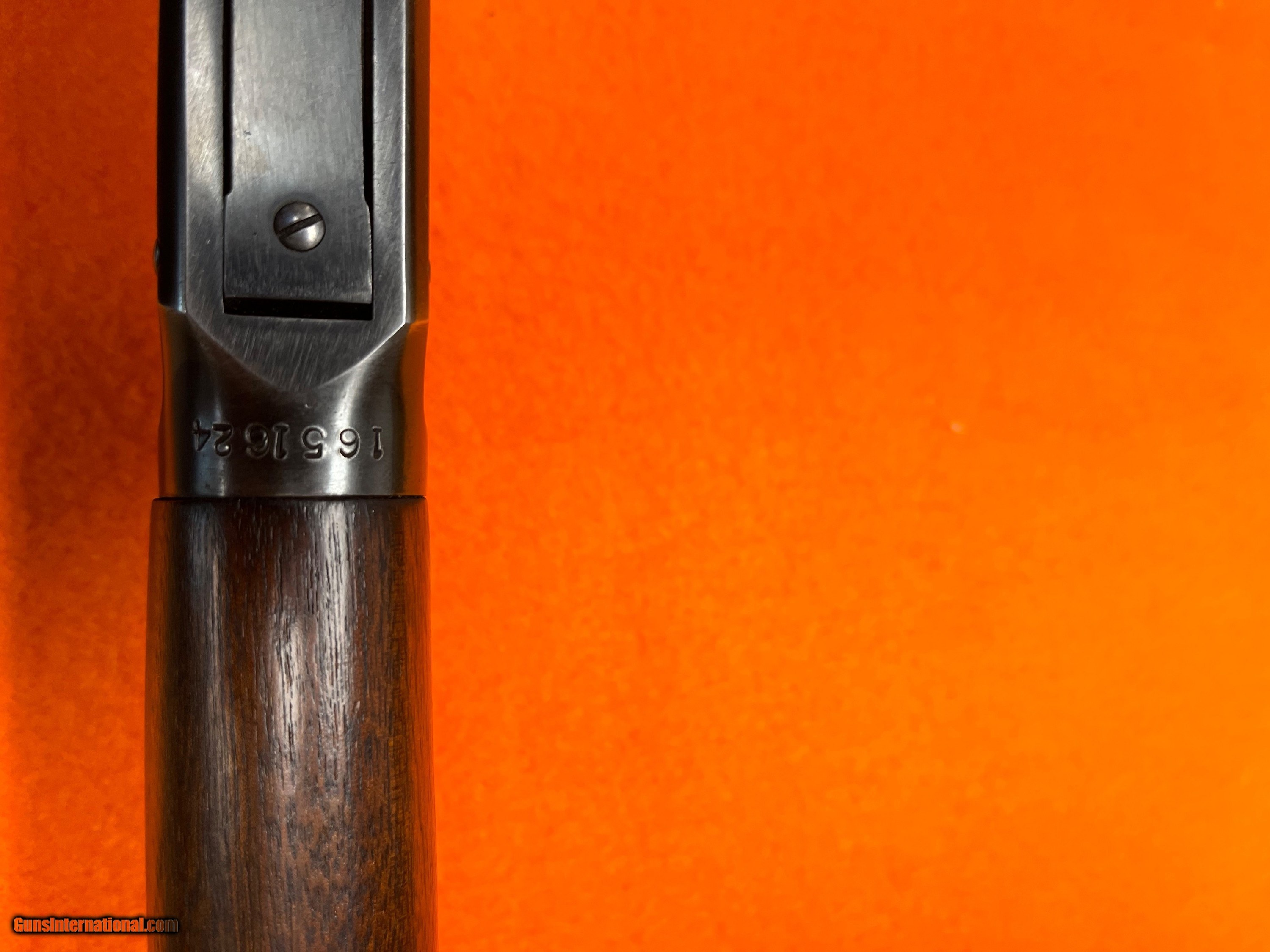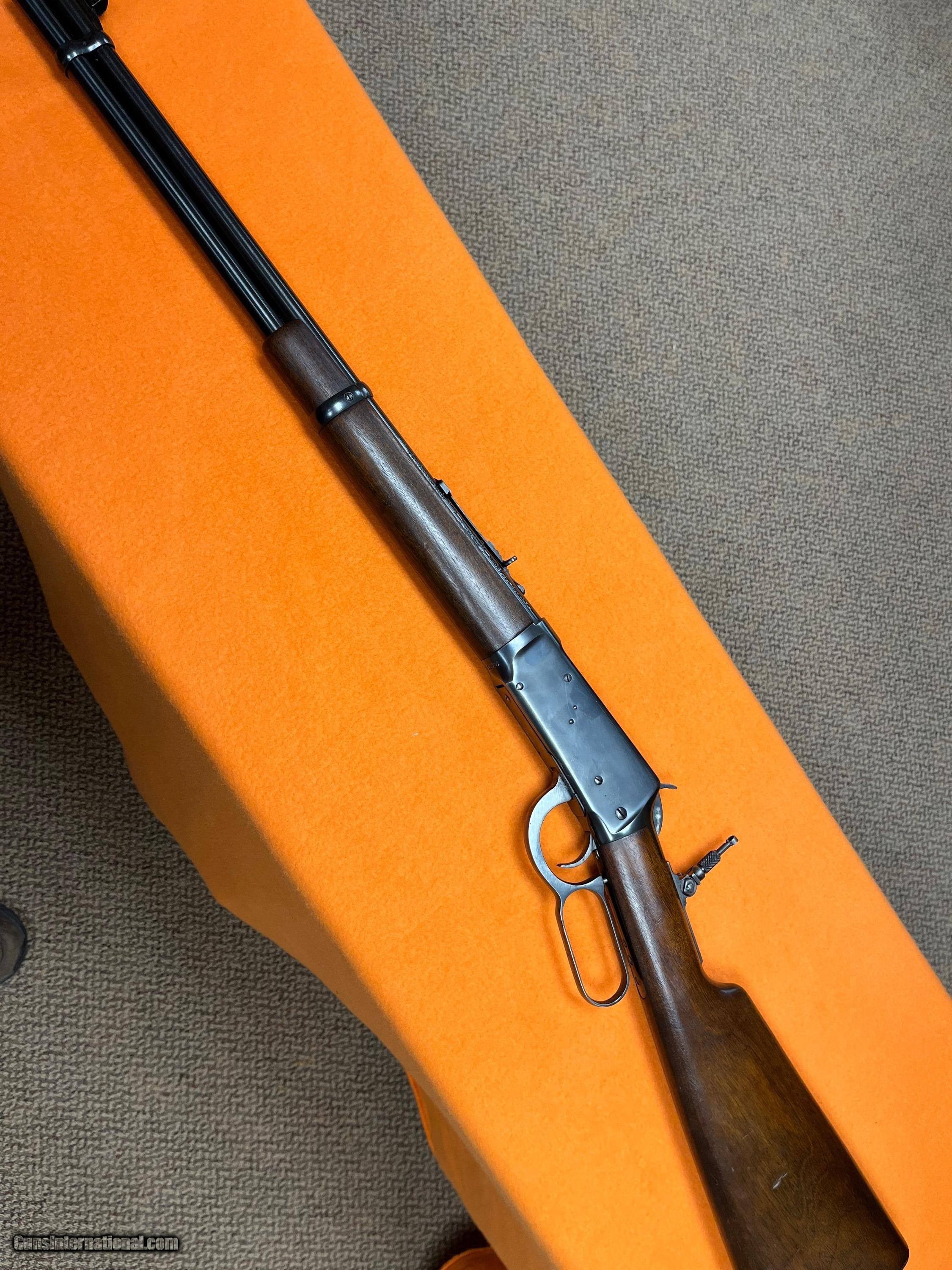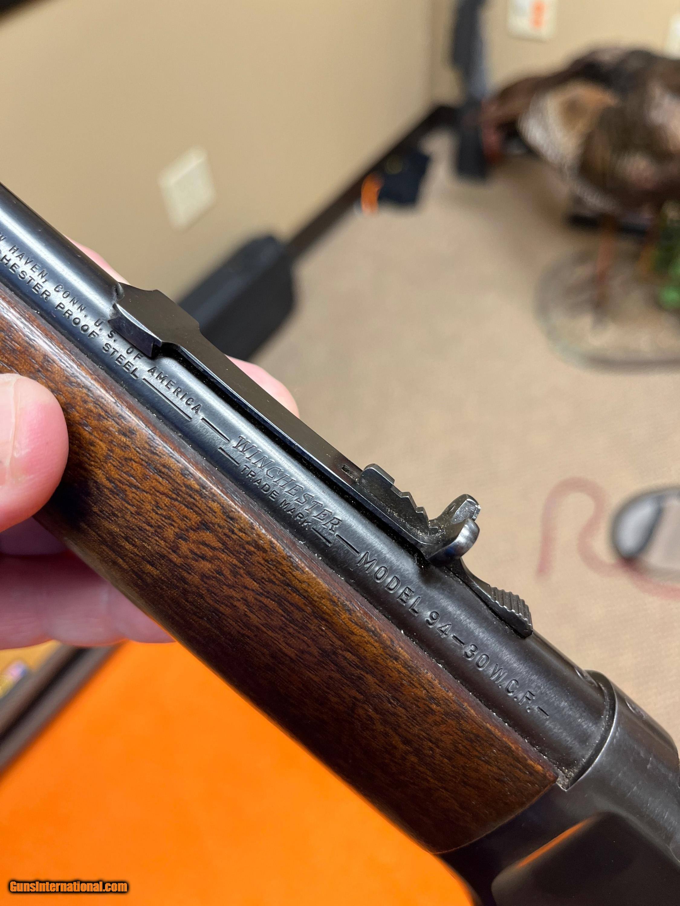 Description: A EXTREMLY CLEAN MODEL 94 CHAMBERED IN 30/30 OR 30WCF TANG REAR SIGHTS , BRIGHT SHINNEY BORE NO PITS OR BLEMISHES , BLUING EXCELLENT PRODUCTION YEAR 1948, WOOD IS EXCELLENT, MINER BLEMISH ON 1 SCREW EJECTOR SIDE A RARE FIND IN THESE DAYS STILL A RELEABLE DEER GUN WITH LONG RANGE SIGHTS BUYER PAYS SHIPPING AND iNSURANCE POASTAL MONEY ORDERS SOLD Rifle Caliber: .30-30 Winchester |