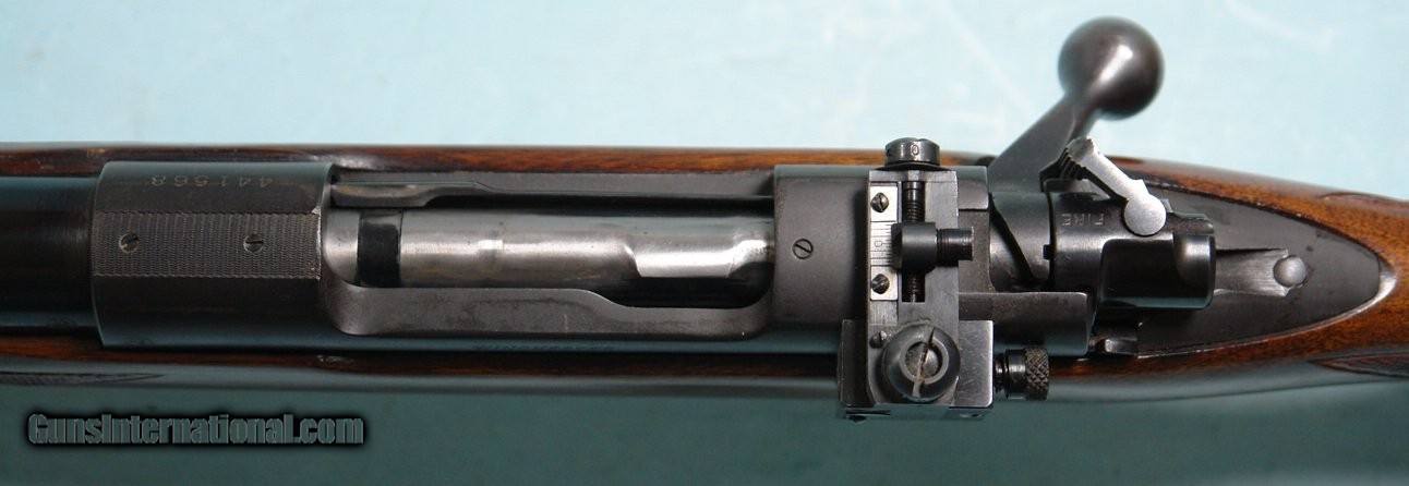 Description: 32992- PRE-64 WINCHESTER MODEL 70 STANDARD WEIGHT .243 WIN. CAL. BOLT ACTION RIFLE MFG. 1959. 24” barrel with ramp front sight with hood and express folding leaf rear sight. Lyman receiver sight. All original excellent with approximately 97-98% blue and nearly all the stock finish with a few minor nicks. Perfect working order and excellent bright bore. Little used. $1250. Curio/Relic: Yes Rifle Caliber: .243 Winchester Price: $1,250.00 Contact Seller |