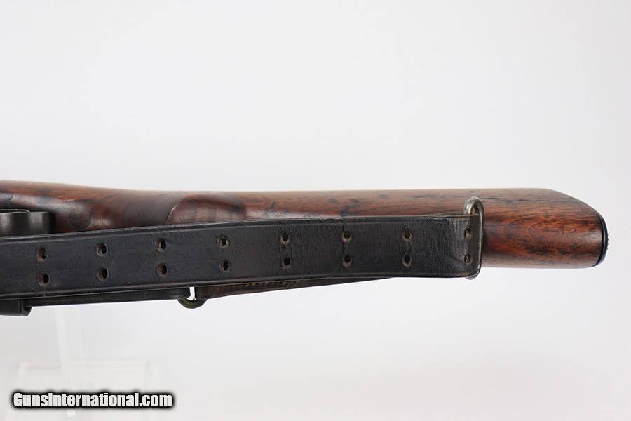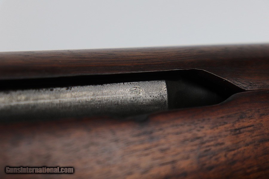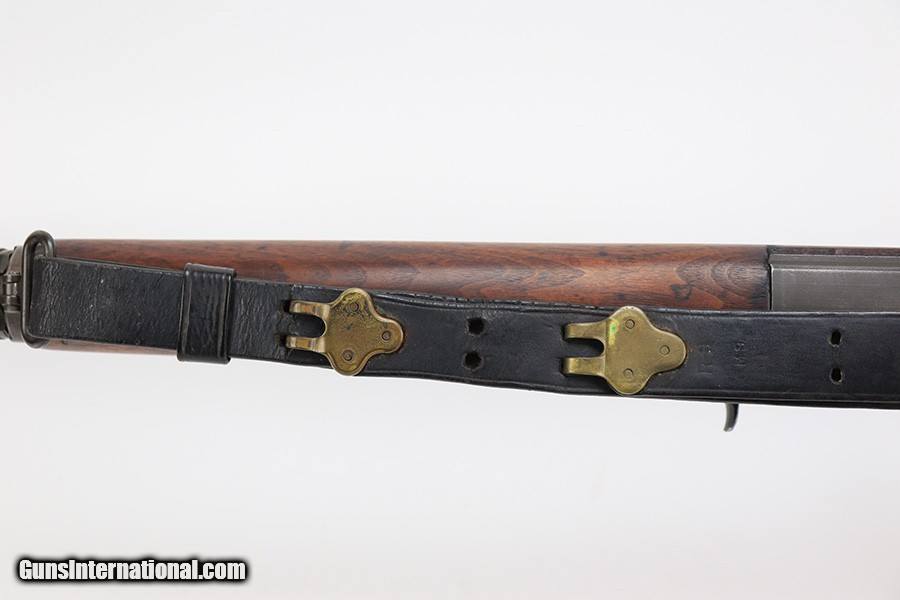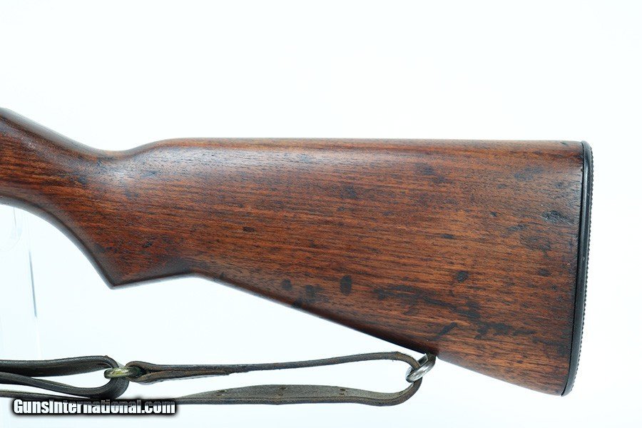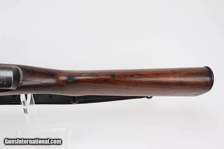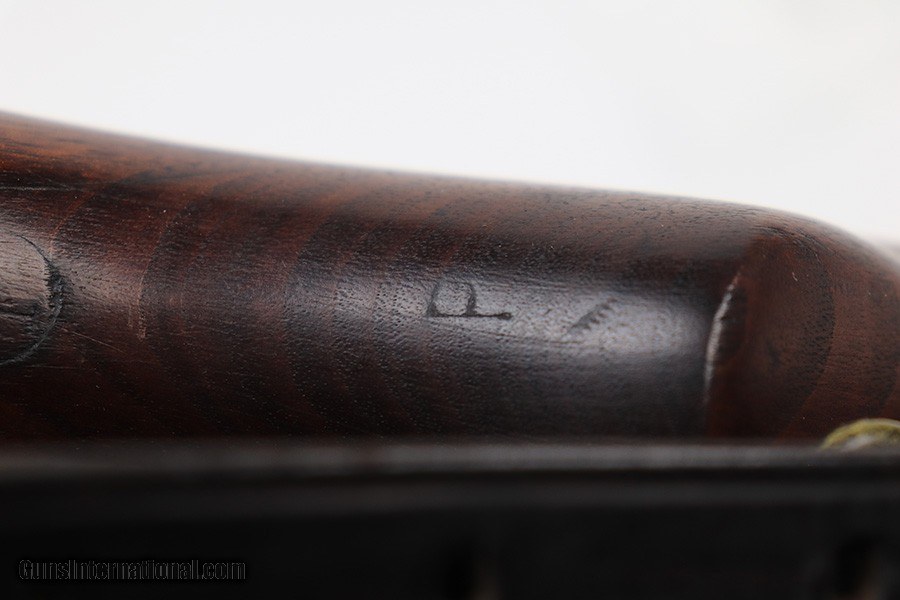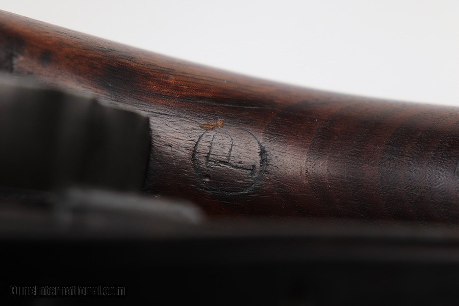 Description: This is a super early Winchester M1 Garand, one of the first 1,000 ever produced! Made in February of 1941. All manufacturer marked parts are produced by Winchester, with flush nut rear sight. The stock is a slightly later Winchester replacement, as a serial this early should've had a RS inspector's mark rather than a WB. The metal finish is original throughout, with thinning on the gas tube and side of the receiver. The gun has an uncut op rod, and battle range marked rear sight. Stock is WRA marked but has a notable crack along the top of the wrist. The stock also has been repaired with wood putty underneath the buttplate, with one of the screw holes replaced which is causing the buttplate to be slightly crooked. The bore has pronounced rifling but wear and frost throughout. ME is a 6.5, TE is a 3. Comes with an original leather sling. SOLD Curio/Relic: Yes Rifle Caliber: .30-06 Springfield |