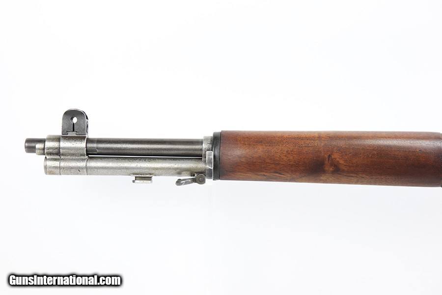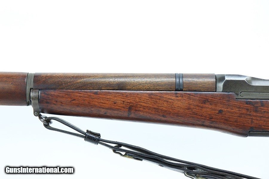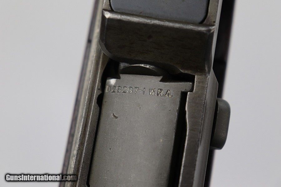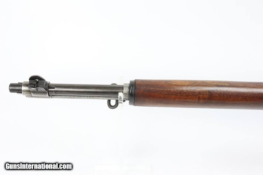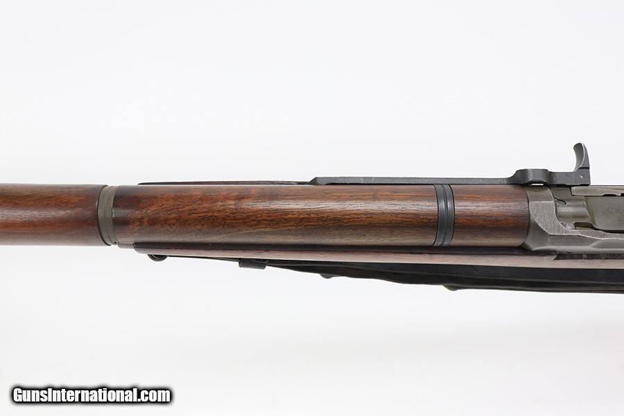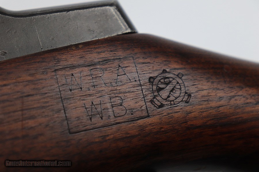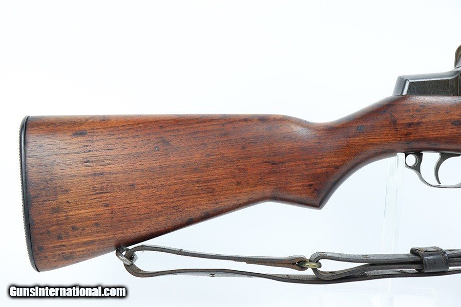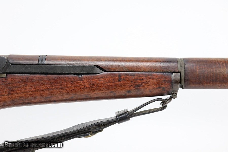 Description: This is a super early Winchester M1 Garand, one of the first 1,000 ever produced! Made in February of 1941. All manufacturer marked parts are produced by Winchester, with flush nut rear sight. The stock is a slightly later Winchester replacement, as a serial this early should've had a RS inspector's mark rather than a WB. The metal finish is original throughout, with thinning on the gas tube and side of the receiver. The gun has an uncut op rod, and battle range marked rear sight. Stock is WRA marked but has a notable crack along the top of the wrist. The stock also has been repaired with wood putty underneath the buttplate, with one of the screw holes replaced which is causing the buttplate to be slightly crooked. The bore has pronounced rifling but wear and frost throughout. ME is a 6.5, TE is a 3. Comes with an original leather sling. SOLD Curio/Relic: Yes Rifle Caliber: .30-06 Springfield |
