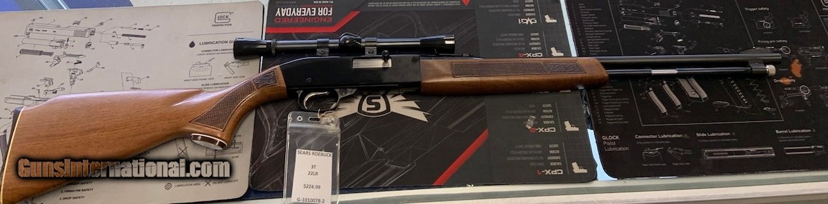 Description: Guns Listing ID: 637212 Excellent firearm, will ship with a leather soft case not seen in the photos. Has a small ready to be sighted in scope. Great little rifle to teach the kids or to take down the squirrels. SOLD Manufacturer: SEARS ROEBUCK AND CO. Model: 3T Caliber Info: .22 CAL Condition: Used - Non-Certified Barrels: 20 BARREL Finish: BLUE |