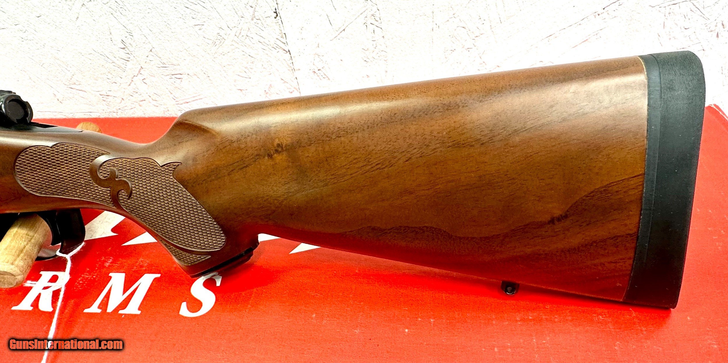 Description: -USA Made- Not an import This is a new in Box never Fired Winchester model 70 Featherweight chambered in 270 Winchester. Lightweight bolt-action hunting rifle with classic looks. Satin finish walnut stock with classic Featherweight cut checkering and Schnabel fore-end. Free-floating Featherweight profile barrel, controlled round feed with claw extractor, Pachmayr® Decelerator® recoil pad. Maine Residents add 5.5% Sales Tax Flat Rate 45.00 Shipping and Handling Price reflects a cash discount of 3.5% Action LengthLong ActionCaliber270 Win Barrel Length22"Overall Length42 3/4" Length of Pull13 3/4"Drop at Comb1/2" Drop at Heel3/4"Weight7 lbs 0 oz Magazine Capacity5Twist Rate10" Barrel FinishBrushed PolishStock FinishSatin Wood GradeGrade IReceiver FinishBrushed Polish Chamber FinishPolishedBarrel MaterialSteel Barrel ContourFeatherweightStock MaterialBlack Walnut Recoil PadPachmayr DeceleratorPistol Grip CapGloss Polymer CheckeringCut 20 LPISling Swivel StudsGloss Blue Receiver MaterialSteelTrigger FinishBrushed Polish Bolt Slide FinishJeweledMagazine TypeHinged Floorplate Trigger MaterialStainless SteelTrigger Guard MaterialAlloy Trigger Guard EngravingNoneFloor Plate MaterialSteel Drilled and Tapped for ScopeYes SOLD Rifle Caliber: .270 Winchester Manufacturer: Winchester Model: 70 Featherlight Serial Number: 35 AMP03695 Barrel Length: 22 Chambers: Bolt Controlled round feeding Condition: Mint New Metal Condition: Mint New Wood Condition: Mint New Bore Condition: Mint Unfired Manufacture Date: 2006-2012 Item Location: Buxton Maine |