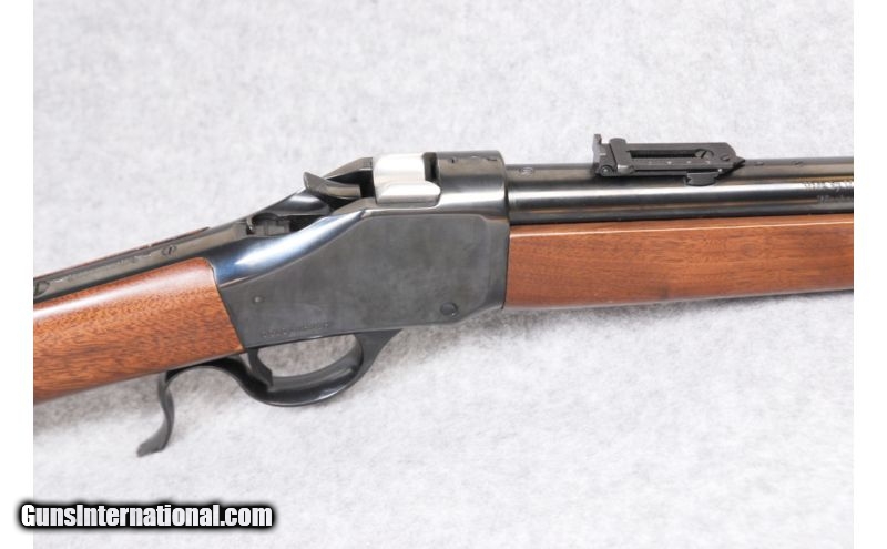 Description: SOLD Caliber Info: .38-55. Metal Condition: Blue-black receiver, checkered hammer, and "S" grip. Wood Condition: New. Bore Condition: New. Barrels: 16 1/2" round barrel. Triggers: Black. Stock: Plain straight-hand walnut stock. Stock Dimensions: LOP: 12 1/2". Fore End: Narrow, plain, semi-Schnabel fore end. Butt Pad: Steel shotgun butt plate. Sights: Brass insert front blade and adjustable sporting sight rear. Extras: Comes with the original box. Item Location: Kansas City, KS |