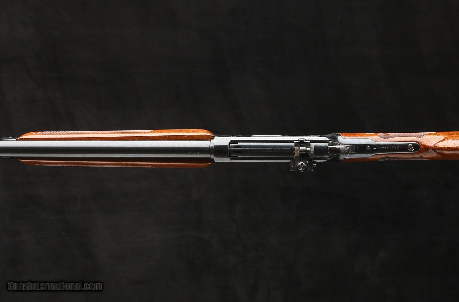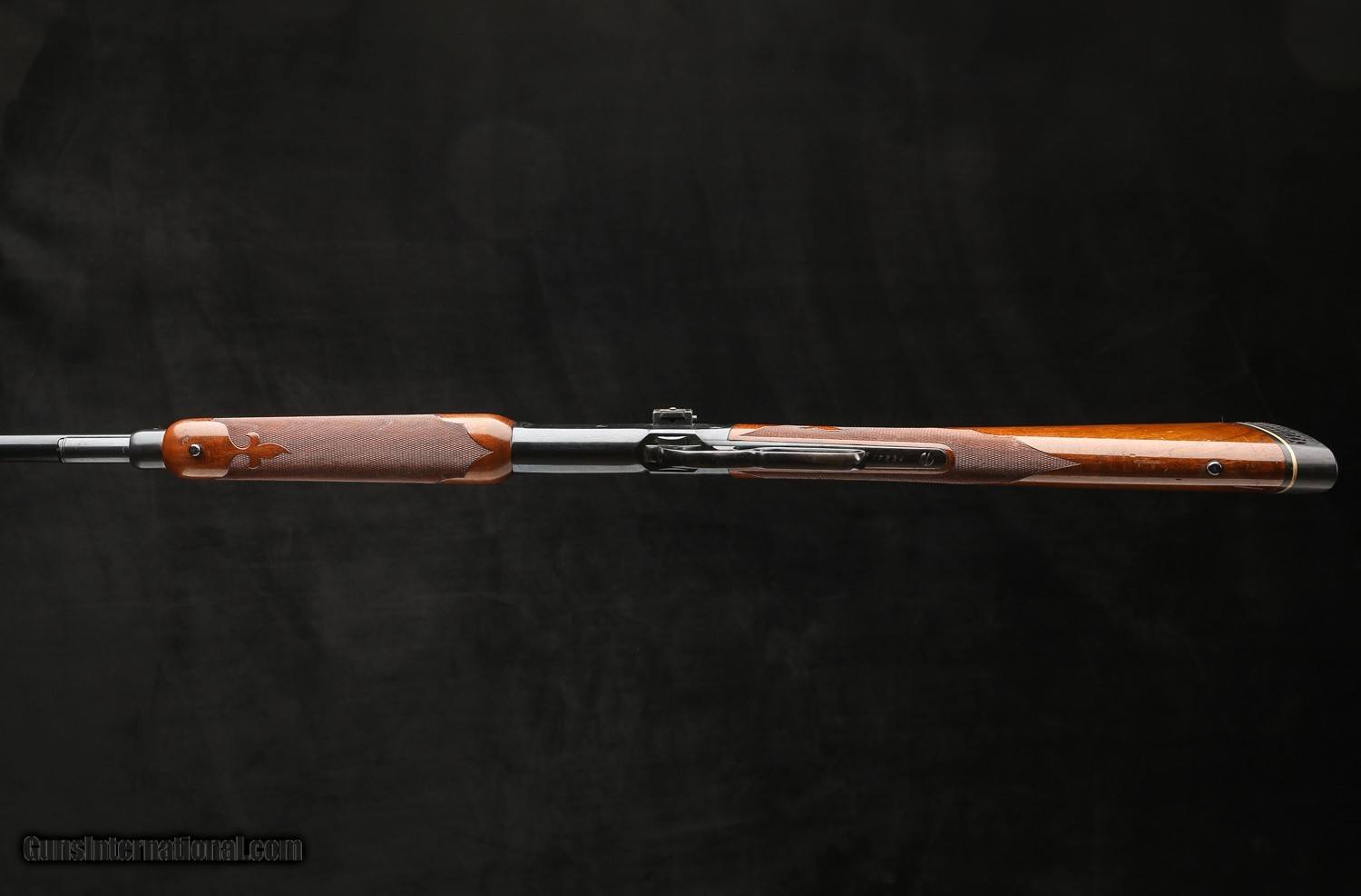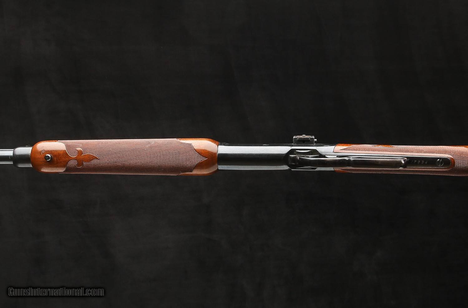 Description: Winchester 1886 45-70 Govt lever action rifle, 22" round barrel, 13 3/4" LOP over a 1" pad, tube magazine, steel forend cap, straight grip stock, standard blue finish, Lyman peep sight, custom stocked with beautiful Fleurdelis checkering, great rifle. Has a few light handling marks on the wood. Rifle Caliber: .45-70 Government Price: $2,595.00 Contact Seller |