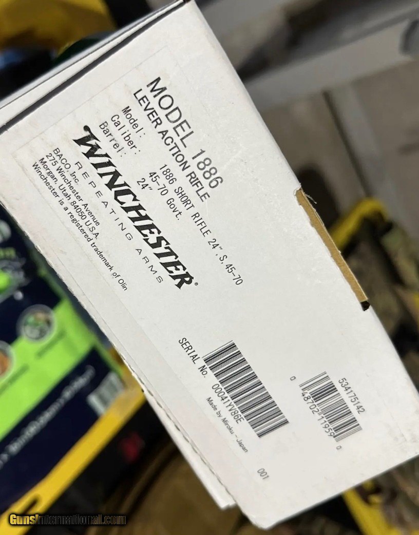 1886 .45-70 'Short' Rifle. 24" barrel, box, paperes, unfired.