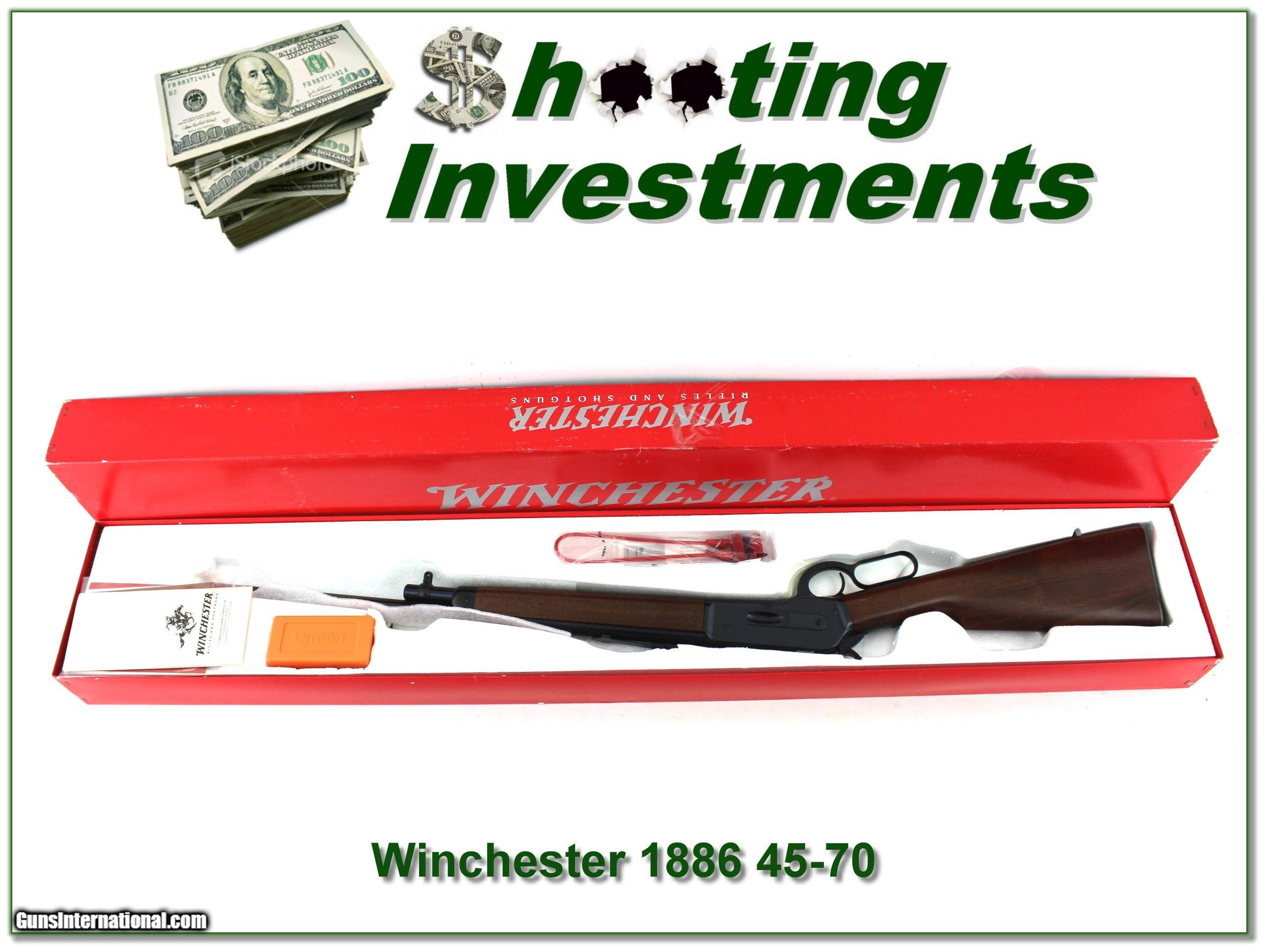 Description: This is a like new excellent condition Winchester 1886 in 45-70. It is the extra light model with 22in barrel. I don’t find any marks and I’m sure only a few rounds fired. It comes in original box with papers and includes a Lyman rear peep that was never mounted. I am selling this one on consignment and as such lay-a-way can’t be used. It does of course have the standard 3-day inspection. Shipping and insurance is $49. Please email me with any questions or larger pictures. (Consign your quality firearms with Shooting Investments for only 12%! Let me know if you have any you would like to sell!) 24-0429 Payment: Payment is by Money Order, Cashier’s Check or Personal Check. I can now also accept Credit Cards (MasterCard, Visa, Discover & American Express) with a 3% convenience fee. Shipping: The shipping charge will be listed in each description. It is $49 for most firearms. Some heavy guns or those insured for over $2000 will be higher. Shipments to Alaska and Hawaii are higher because air shipment is required. Most firearms are shipped on Tuesday and Thursday and usually in 5 days of receipt of payment. We package all shipments carefully and insure them. Optics are shipped Priority Mail and most other non-firearm shipments are shipped First Class. Returns: Our return policy is simple. If for any reason you are not pleased with your purchase, you may return your item for a full refund of purchase price. Ammunition cannot be returned. It is important to us that you are happy. Guns cannot be fired or dissembled before returning them and they must be returned in the same condition as received. Notification of a return must occur within 3 days of receipt at your dealer. Shipping, convenience and dealer fees are not refundable and are the responsibility of the buyer. Lay-a-way: If needed, we offer a 60 day lay-a-way option on most firearms. It is 1/3 now, 1/3 in 30 days and 1/3 in 60 days. Lay-a-way firearm sales are final and cannot be returned. If a lay-a-way is not completed the first payment cannot be refunded. Consigning your firearms with Shooting Investments: We will help you get top dollar for your firearms. While most local guns shops charge 20% or more, our fee is only 12% with a minimum of $75. At your local gun shop it might take months to sell. Selling on-line provides instant access to thousands of interested buyers. You won’t find any other on-line dealer willing to sell your firearms for only 12% or listing every gun on 3 separate s. Selling through an House typically costs the seller 15% and the buyer an addition 15% (so 30%) and you have to wait several months to sell and longer to receive funds. If properly priced, we will sell your firearms within a few weeks. Send us an email or give us a call and we’ll explain how easy it is for you to get top dollar. Trading: Trading for us is really just buying your gun to re-sell. If you have a gun you want to trade, please email a picture and we will let you know what we can give for it. You will always get more if we sell it for you on consignment. SOLD |