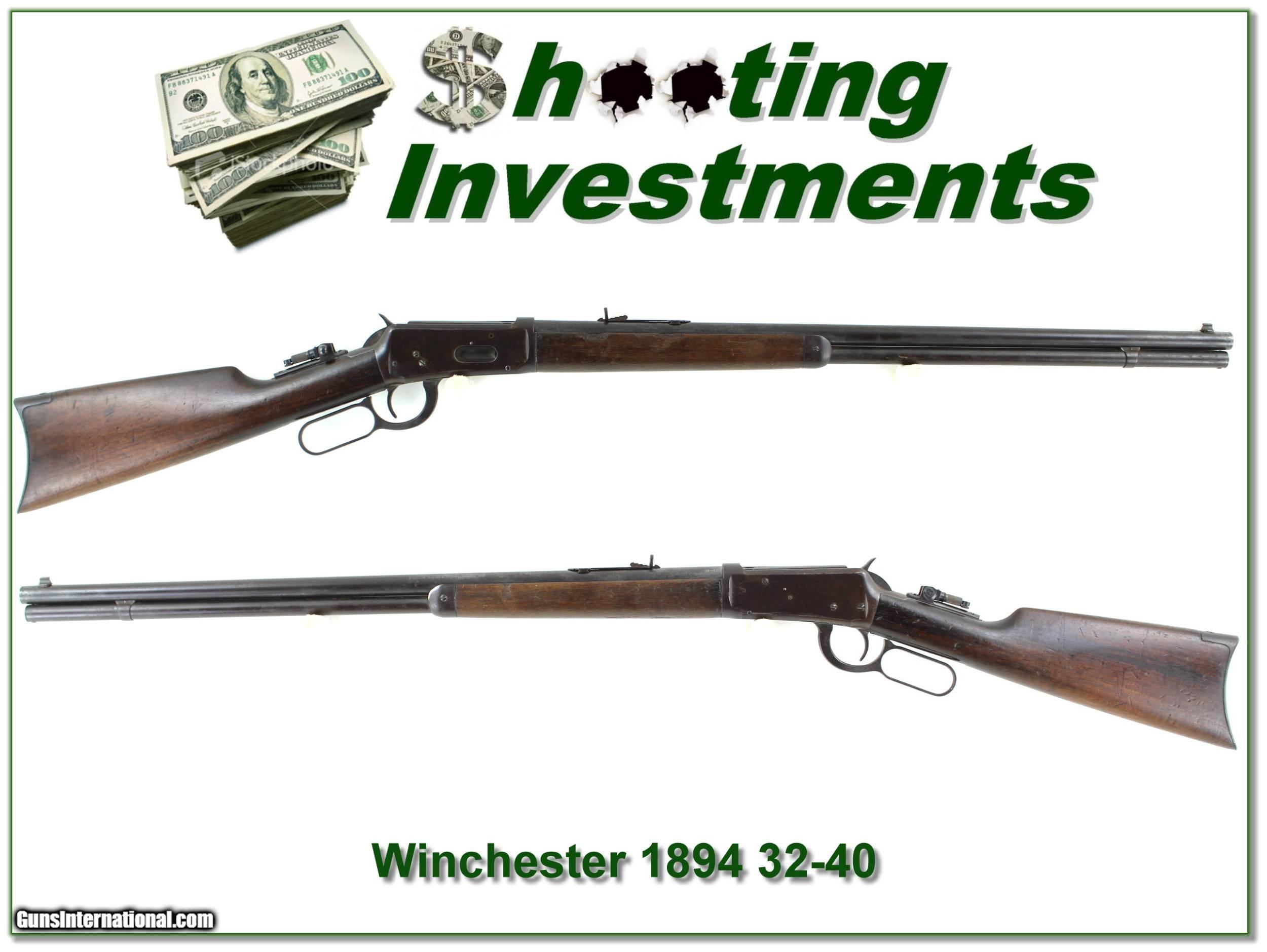 Description: This is a 1916 made Winchester 1894 in the harder to find 32-40 caliber. The finishes are all original. A rear tang sight was added. It has a 26in round barrel with full length magazine. It is a nice fully functional classic Winchester! I am selling this one on consignment and as such lay-a-way can’t be used. It does of course have the standard 3-day inspection. Shipping and insurance is $39. Please email me with any questions or larger pictures. (Consign your quality firearms with Shooting Investments for only 12%! Let me know if you have any you would like to sell!) 20-1022 Payment: Payment is by Money Order, Cashiers Check or Personal Check. I can now also accept Credit Cards (MasterCard, Visa, Discover & American Express) with a 3% convenience fee. Shipping: The shipping charge will be listed in each description. It is $39 for most firearms. Some heavy guns or those insured for over $2000 will be higher. Shipments to Alaska and Hawaii are higher because air shipment is required. Most firearms are shipped on Tuesday and Thursday and usually in 5 days of receipt of payment. We package all shipments carefully and insure them. Optics are shipped Priority Mail and most other non-firearm shipments are shipped First Class. Returns: Our return policy is simple. If for any reason you are not pleased with your purchase, you may return your item for a full refund of purchase price. Ammunition cannot be returned. It is important to us that you are happy. Guns cannot be fired or dissembled before returning them and they must be returned in the same condition as received. Notification of a return must occur with-in 3 days of receipt at your dealer. Shipping, convenience and dealer fees are not refundable and are the responsibility of the buyer. Lay-a-way: If needed, we offer a 60 day lay-a-way option on most firearms. It is 1/3 now, 1/3 in 30 days and 1/3 in 60 days. Lay-a-way firearm sales are final and if not completed the first payment cannot be returned. Consigning your firearms with Shooting Investments: We will help you get top dollar for your firearms. While most local guns shops charge 20% or more, our fee is only 12% with a minimum of $75. At your local gun shop it might take months to sell. Selling on-line provides instant access to thousands of interested buyers. You won’t find any other on-line dealer willing to sell your firearms for only 12% or listing every gun on 3 separate s. Selling through an House typically costs the seller 15% and the buyer an addition 15% (so 30%) and you have to wait several months to sell and longer to receive funds. If properly priced, we will sell your firearms in a few weeks. Send us an email or give us a call and we’ll explain how easy it is for you to get top dollar. Trading: Trading for use is really just buying your gun to re-sell. If you have a gun you want to trade, please email a picture and we will let you know what we can give or it. You will always get more if we sell it for you on consignment. Help for California Buyers: We are happy to ship to California. It is the buyer’s responsibility to make sure any item you buy is legal in your state. We are also happy to help with your purchase of a firearm from someone other than us. If you see a gun you would like to buy but the seller can’t or won’t ship to California they can ship to use and we’ll then ship it to your California dealer. The cost for this service is only $30 + shipping. Let us know if we can help! SOLD |