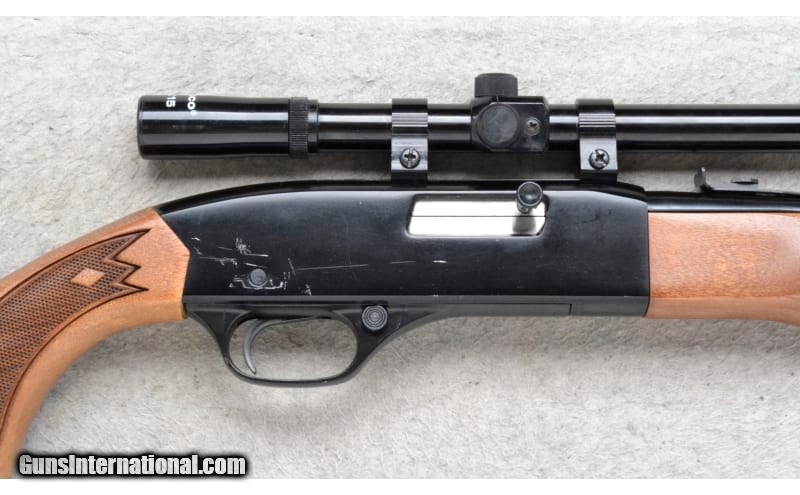 Description: This Winchester Model 190 is a right hand semi-auto rifle in .22 Long or Long Rifle Cal. It has a 20.5 inch barrel. A blade front sight and an adjustable notch middle sight. It is outfitted with a Tasco 4x15 Scope. The butt stock is a diamond checkered grip hardwood pistol grip. The forearm is a diamond checkered grip hardwood. .22 Long Rifle SOLD Chambers: Tube Magazine. Metal Condition: Good. receiver has some light handling marks. Wood Condition: Very good. A few minor use marks. Bore Condition: Excellent. Barrels: 20.5 inch. Stock Dimensions: LOP 13.5 inches. Fore End: Diamond checkered grip hardwood. Butt Pad: Winchester grooved black plate. Weight: 5 lb. 4 oz. Sights: Blade front. Adjustable notch rear. Tasco 4x15 Scope. Item Location: Richfield, WI |