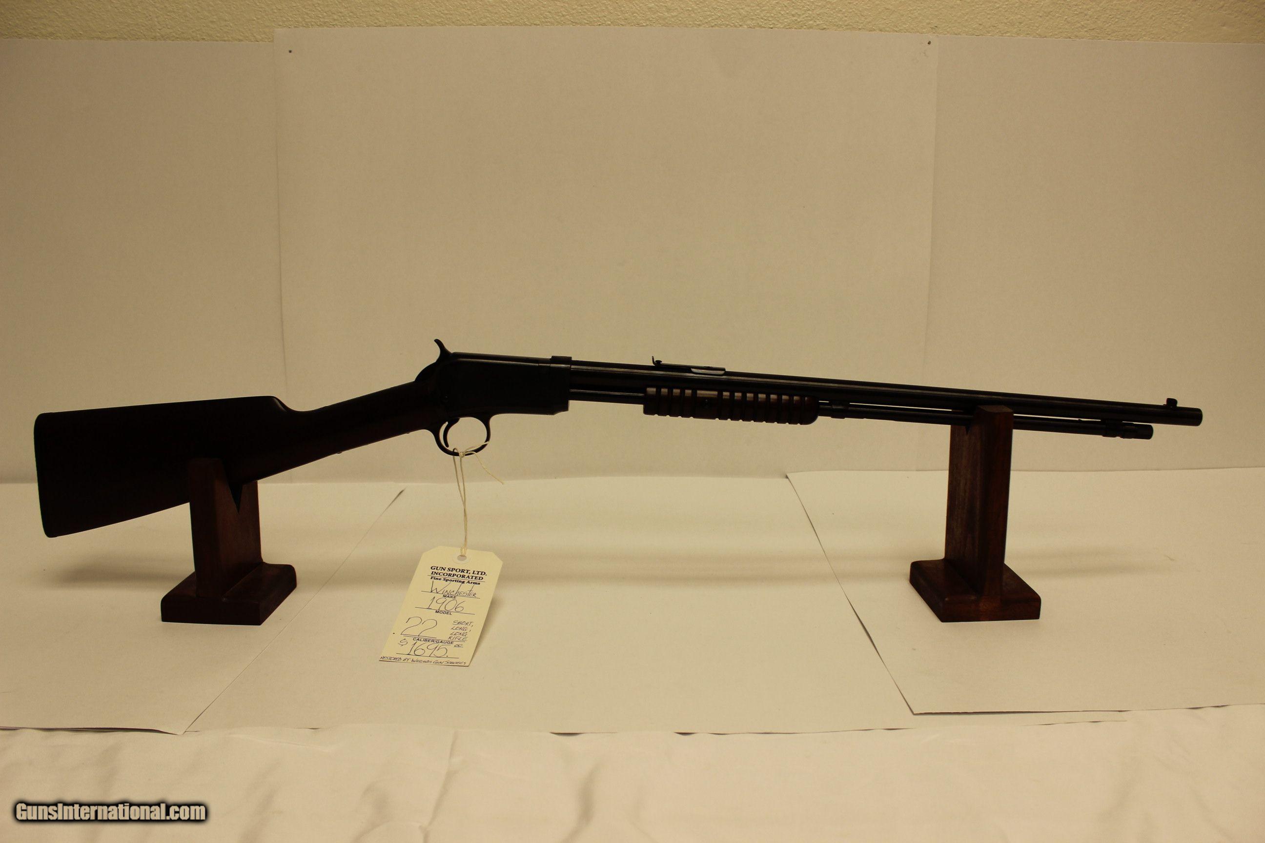 Description: Winchester 1906 .22 Short, Long, Long Rifle, restored by Wiegans Gun Services, 20" BBL, 4lb 8oz, 13" L.O.P. manufactured in 1919 SOLD |