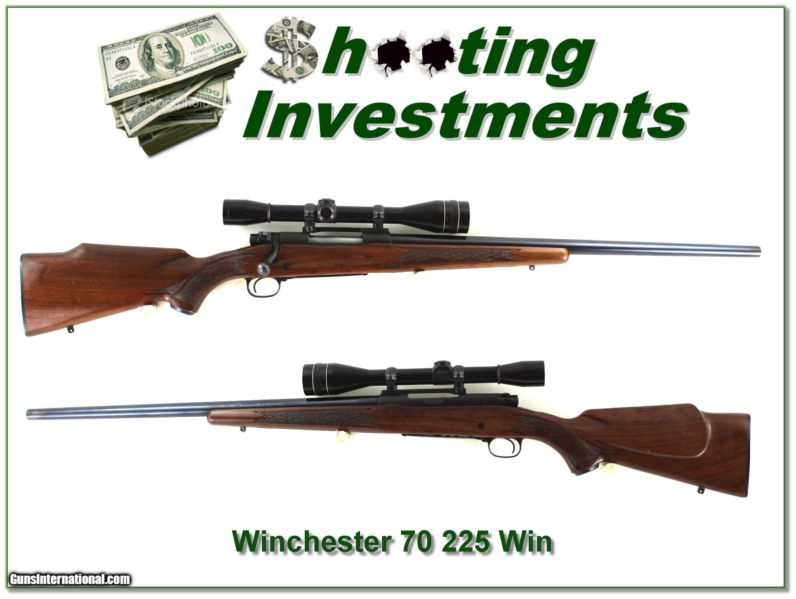 Description: Collectors, shooters and varmint hunters, this is a seldom seen First Year Winchester 70 in 225 Winchester. It is a rare Varmint Heavy barrel Winchester made in 1964. It has a heavy 24in barrel and comes with pictured Leupold 12 scope. The metal is excellent, and the wood has some marks from use. Its owner says it’s extremely accurate! I am selling this one on consignment and as such lay-a-way can’t be used. It does of course have the standard 3-day inspection. Shipping and insurance is $49. Please email me with any questions or larger pictures. (Consign your quality firearms with Shooting Investments for only 12%! Let me know if you have any you would like to sell!) 25-0059 Payment: Payment is by Money Order, Cashier’s Check or Personal Check. I can now also accept Credit Cards (MasterCard, Visa, Discover & American Express) with a 3% convenience fee. Shipping: The shipping charge will be listed in each description. It is $49 for most firearms. Some heavy guns or those insured for over $2000 will be higher. Shipments to Alaska and Hawaii are higher because air shipment is required. Most firearms are shipped on Tuesday and Thursday and usually in 5 days of receipt of payment. We package all shipments carefully and insure them. Optics are shipped Priority Mail and most other non-firearm shipments are shipped First Class. Returns: Our return policy is simple. If for any reason you are not pleased with your purchase, you may return your item for a full refund of purchase price. Ammunition cannot be returned. It is important to us that you are happy. Guns cannot be fired or dissembled before returning them and they must be returned in the same condition as received. Notification of a return must occur within 3 days of receipt at your dealer. Shipping, convenience and dealer fees are not refundable and are the responsibility of the buyer. Lay-a-way: If needed, we offer a 60 day lay-a-way option on most firearms. It is 1/3 now, 1/3 in 30 days and 1/3 in 60 days. Lay-a-way firearm sales are final and cannot be returned. If a lay-a-way is not completed the first payment cannot be refunded. Consigning your firearms with Shooting Investments: We will help you get top dollar for your firearms. While most local guns shops charge 20% or more, our fee is only 12% with a minimum of $100. At your local gun shop it might take months to sell. Selling on-line provides instant access to thousands of interested buyers. You won’t find any other on-line dealer willing to sell your firearms for only 12% or listing every gun on 3 separate s. Selling through an House typically costs the seller 15% and the buyer an addition 15% (so 30%) and you have to wait several months to sell and longer to receive funds. If properly priced, we will sell your firearms within a few weeks. Send us an email or give us a call and we’ll explain how easy it is for you to get top dollar. Trading: Trading for us is really just buying your gun to re-sell. If you have a gun you want to trade, please email a picture and we will let you know what we can give for it. You will always get more if we sell it for you on consignment. SOLD |