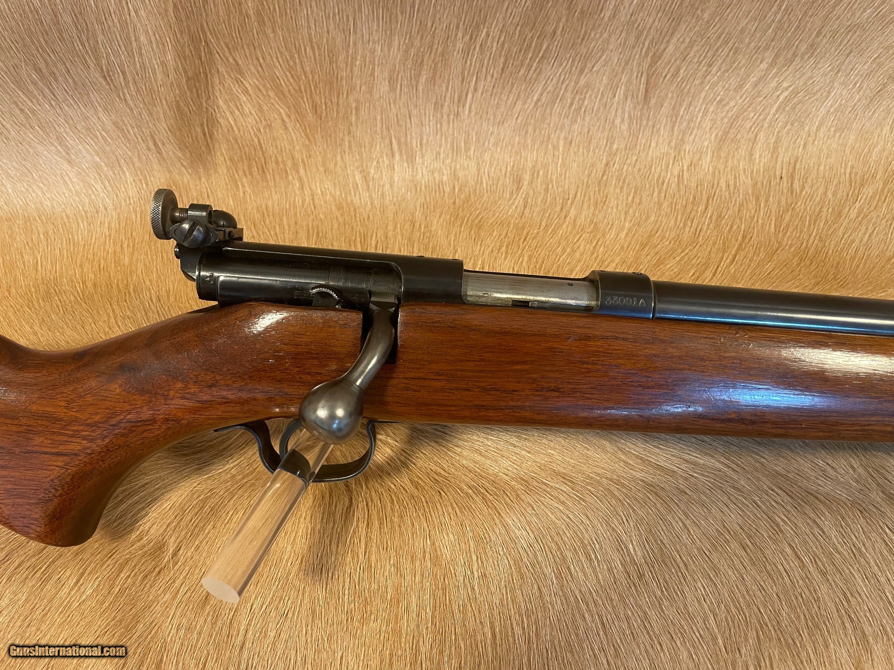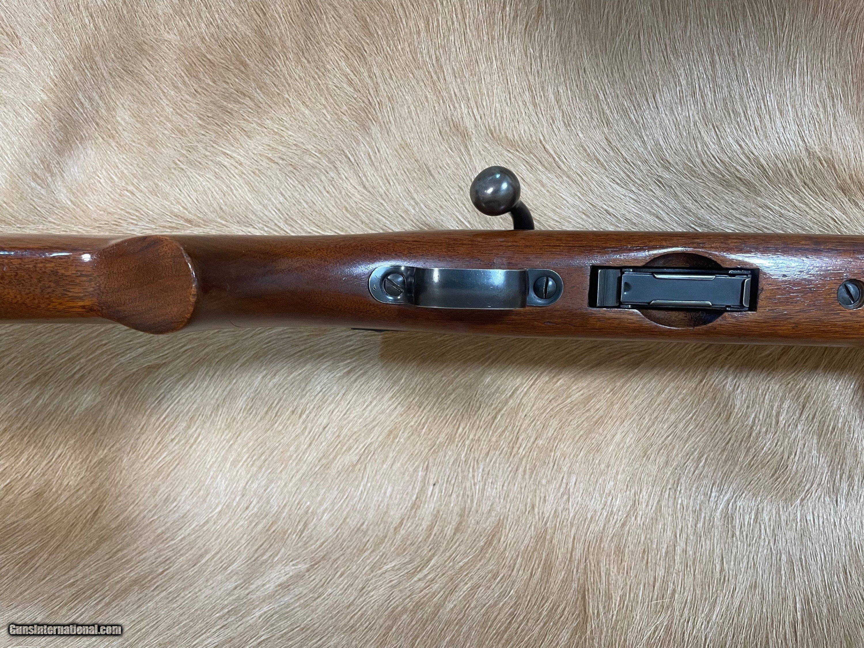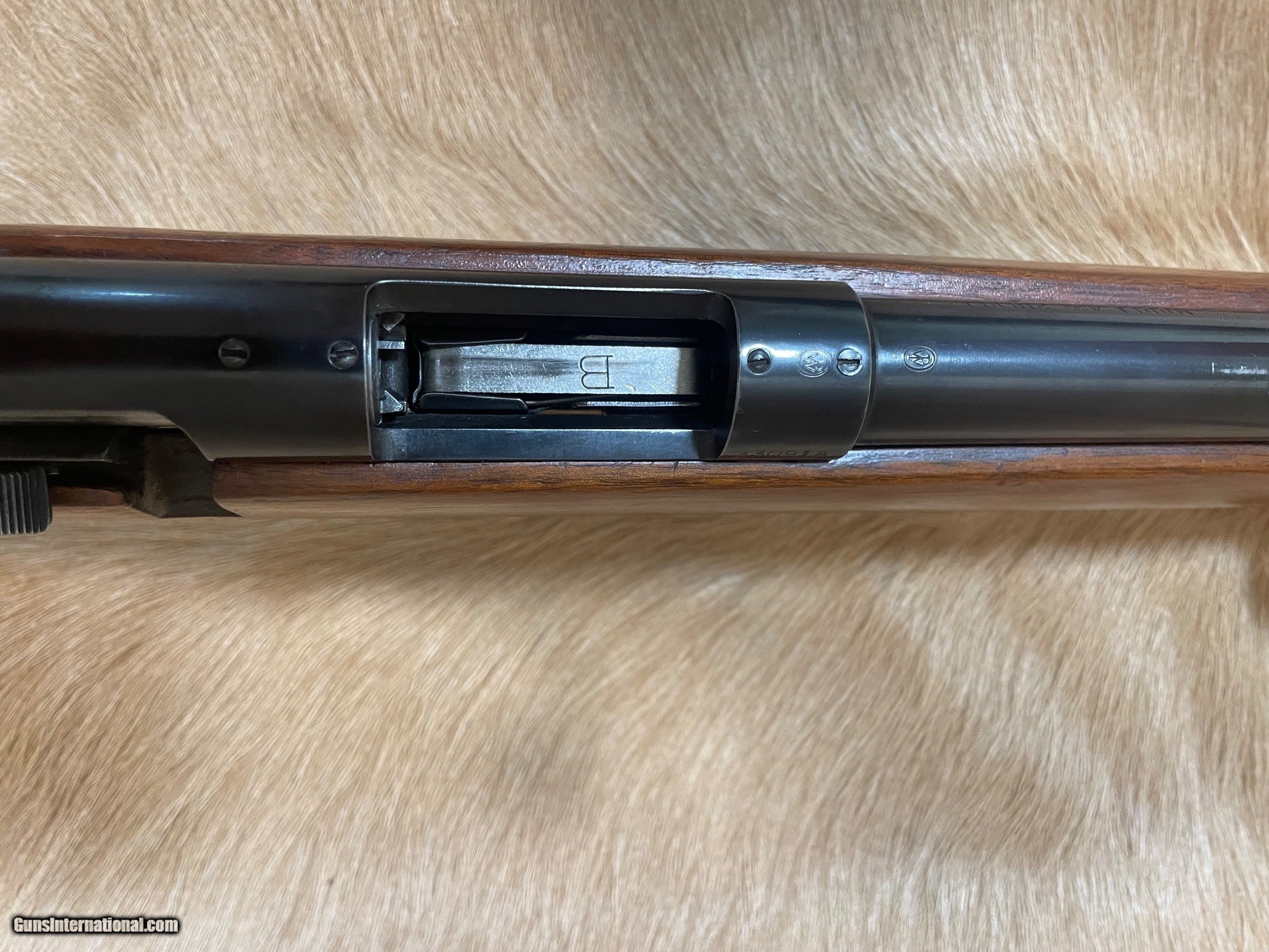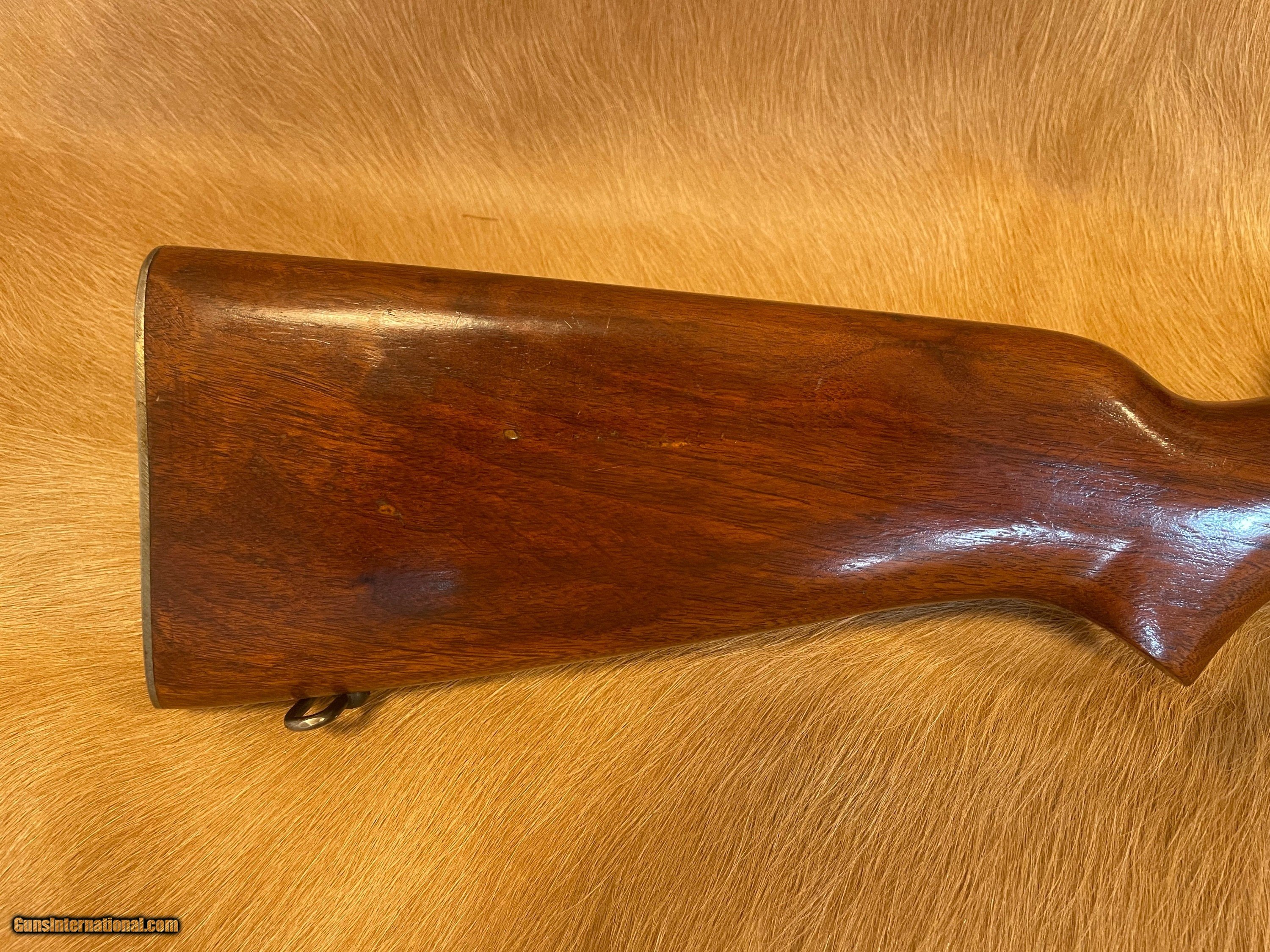 Description: A factory correct Winchester 43 .218 bee with a very nice numbers matching Lyman 57A peep sight. A well maintained rifle, showing light handling marks to wood and metal. The receiver is factory drilled. The bore is excellent mirror bright with strong defined rifling. This rifle comes as pictured with one factory magazine. Please look at the photos. Happy to answer any questions. Rifle Caliber: .218 Bee Manufacturer: Winchester Model: 43 Barrel Length: 24” Condition: Very good Metal Condition: Very good Wood Condition: Very good Bore Condition: Excellent Price: $1,495.00 Contact Seller |