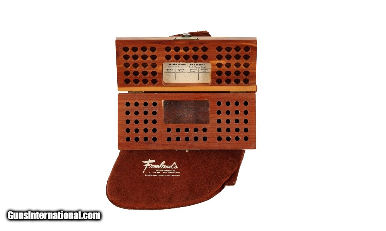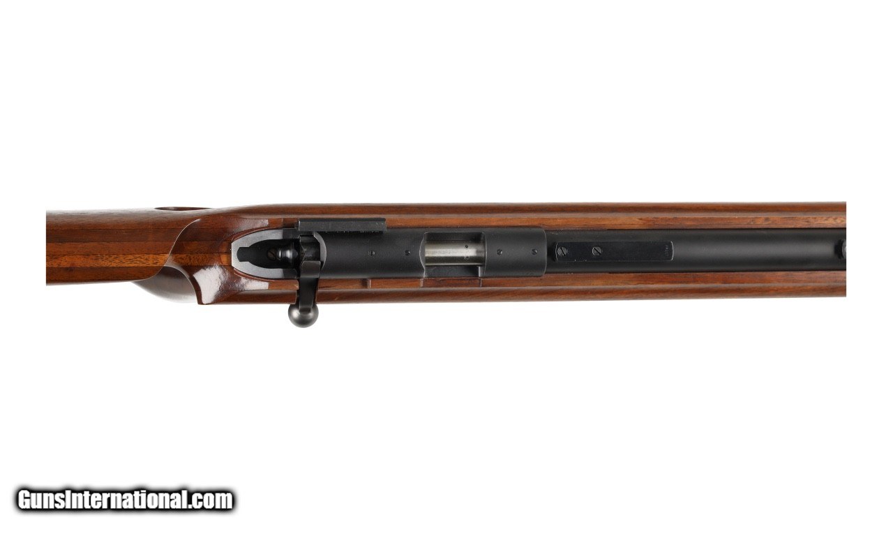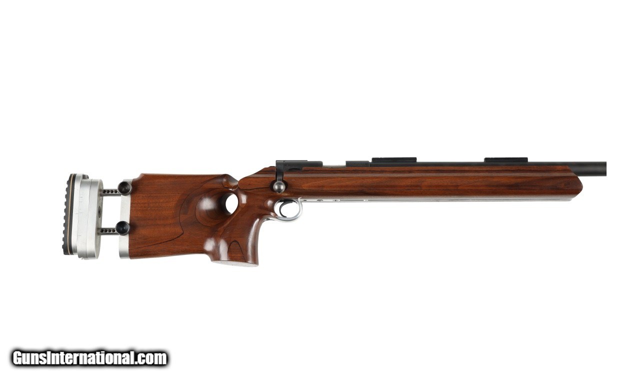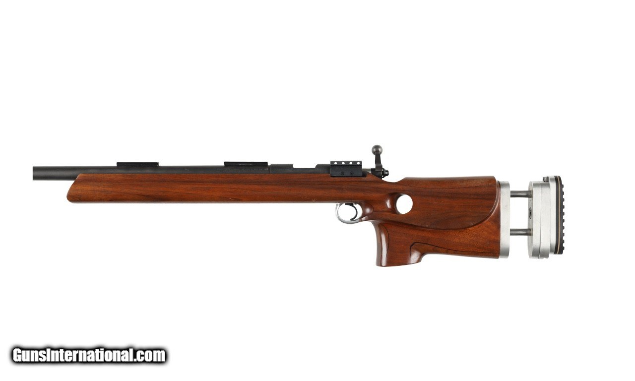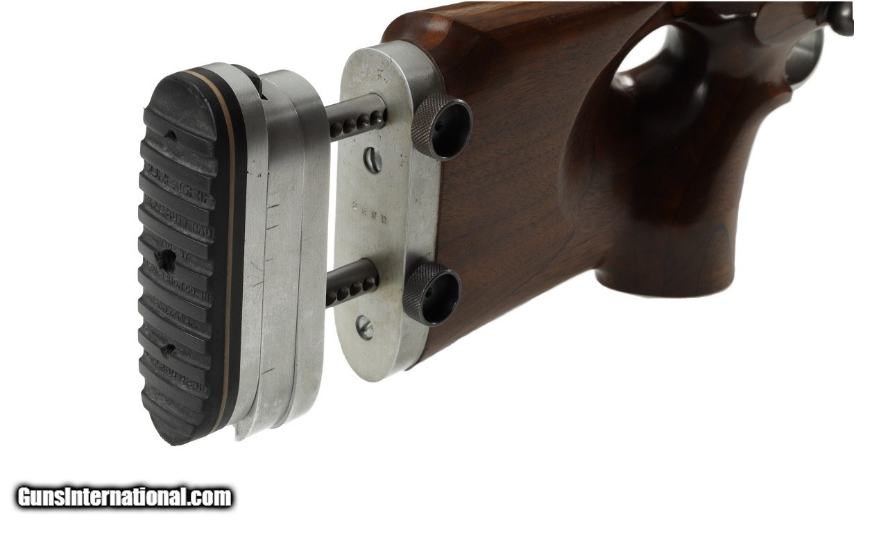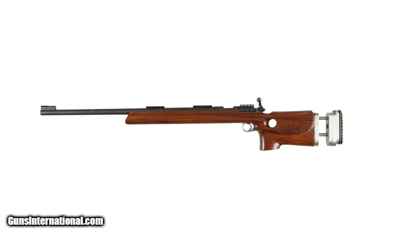 Description: Hooked butt plate, Redfield scope 24x, Hawkeye shooting jacket size 46, Gates rear sight, Anschutz front sight, .22 cartidge box and sling. SOLD Rifle Caliber: .22 Long Rifle Manufacturer: Winchester Model: 52 Barrel Length: 28 Condition: G Metal Condition: G Wood Condition: G Bore Condition: G Action: Bolt Triggers: Single Butt Pad: Adjustable LOP: Adjustable. |