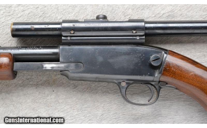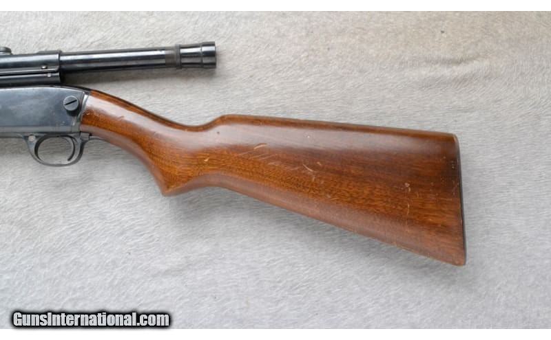 Description: This Winchester Model 61 is a right hand pump action rifle in .22 Short, Long or Long Rifle Cal. It has a 24 inch barrel. A blade front sight, adjustable notch middle sight and is outfitted with a Weaver Scope. The butt stock is a smooth grip walnut pistol grip. The forearm is a grooved grip walnut. Serial Number 225346. .22 Short/Long/Long Rifle Barrels: 24 inch Weight: 6 lb. 4 oz. Item Location: Richfield, WI Price: $799.99 Contact Seller |