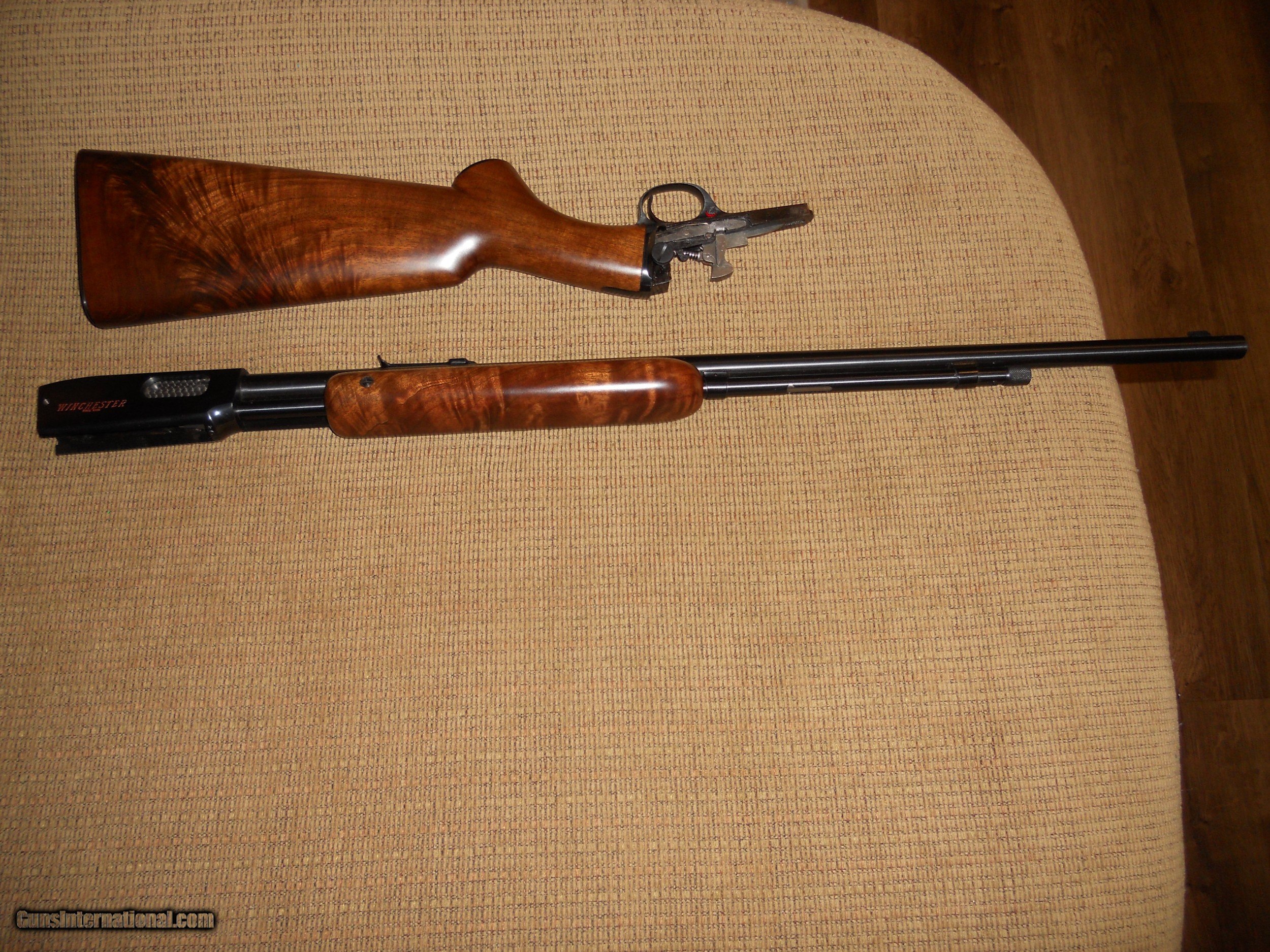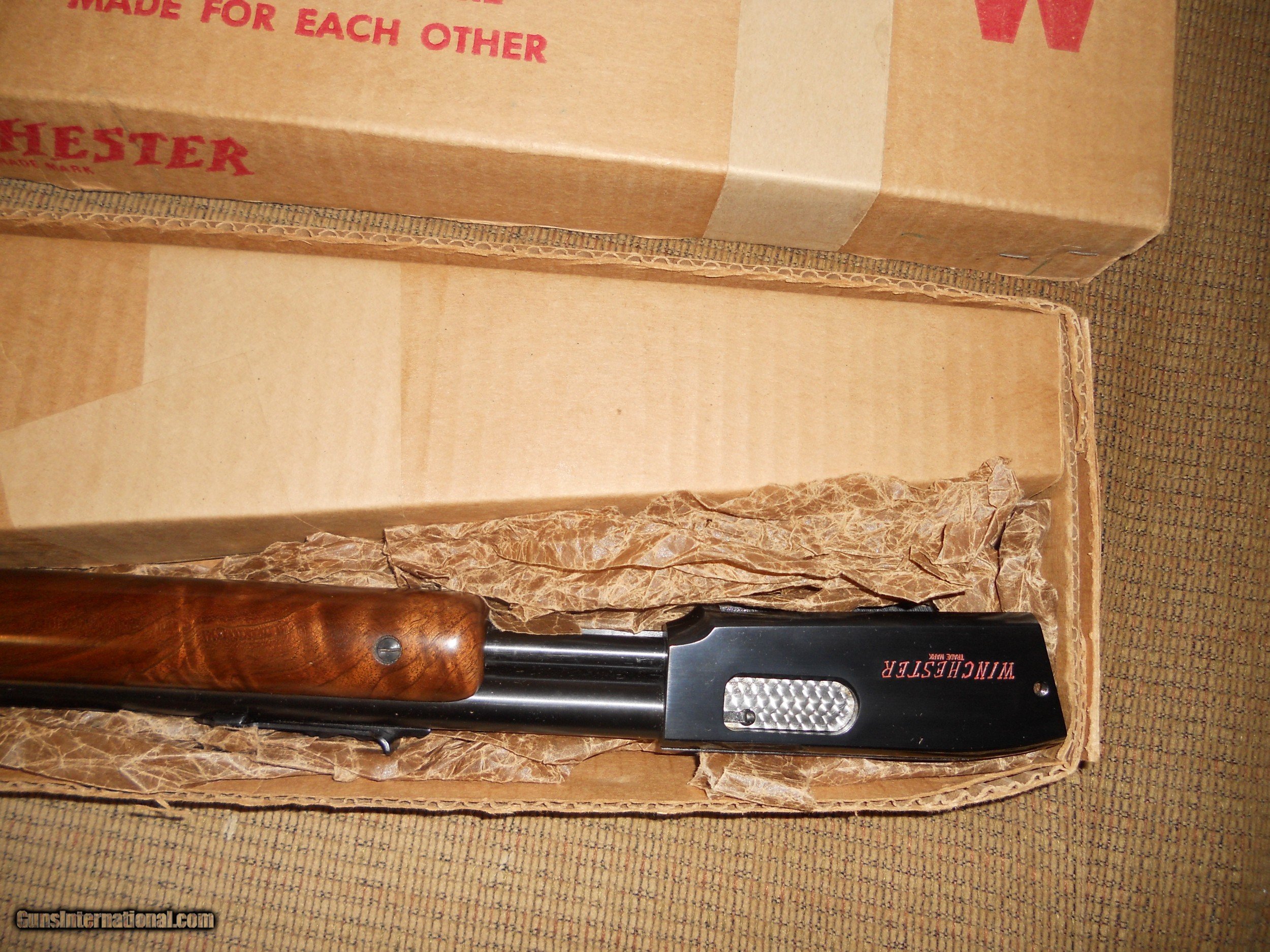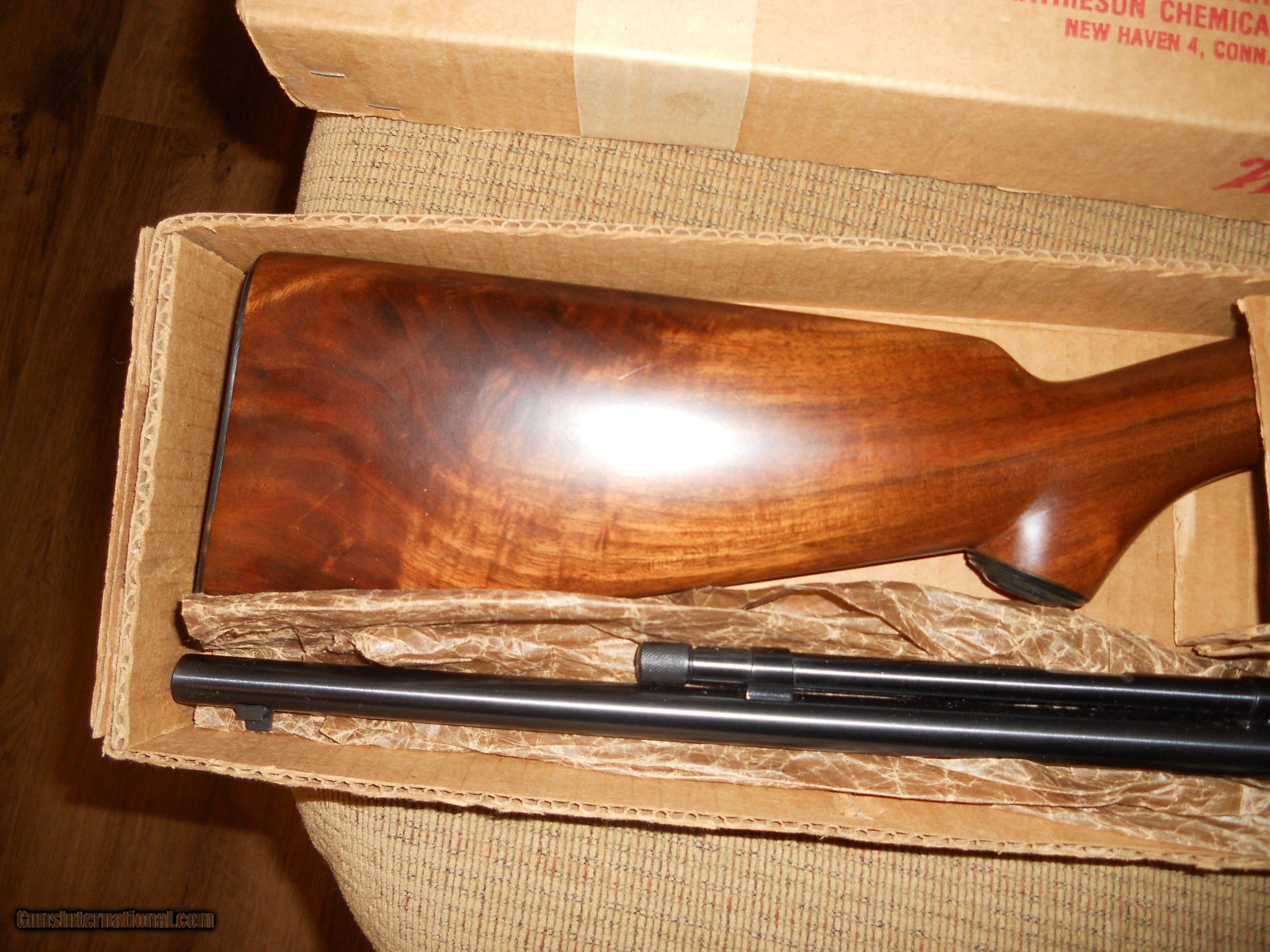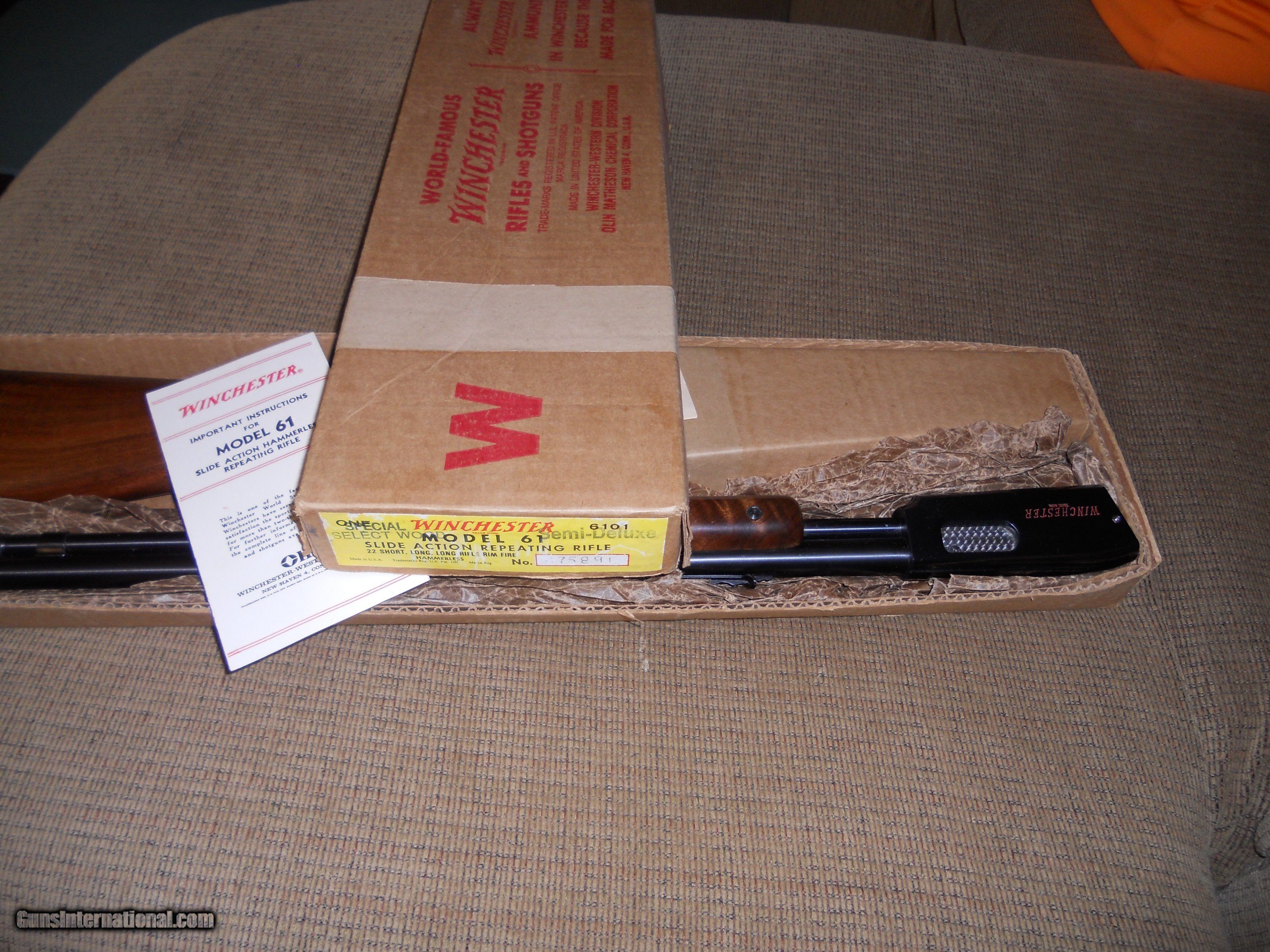Description: Beautiful Winchester 61 in rare semi deluxe with redletter and excellent figured walnut stock in the box.Gun was manufactured in 1959 and has the grooved receiver and steel butt plate and jeweled bolt. Very nice collector Winchester rifle. Hard to upgrade on this rifle with the original box.Add $100.00 insured shipping. SOLD SOLD Rifle Caliber: .22 Long Rifle Manufacturer: winchester Model: 61 Condition: excellent Metal Condition: excellent Wood Condition: excellent Bore Condition: excellent Manufacture Date: 1959 |