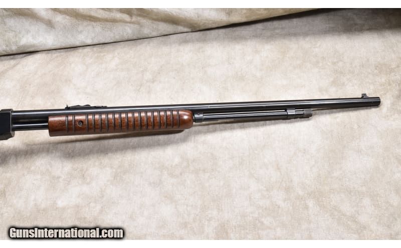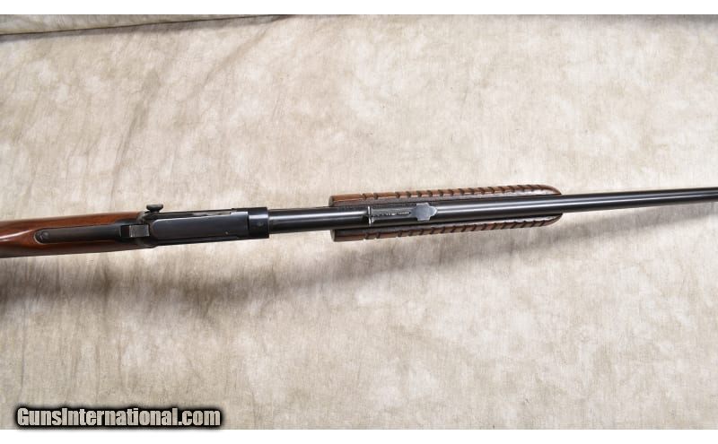 Description: This Winchester features ice wood, lots of residual blue, and is the straight grip takedown model. It has been used but not abused. Manufacture date is 1950 based upon the s/n.Nice little compact rifle. .22 Short/Long/Long Rifle SOLD Chambers: Up to 22 rounds (.22 Short) Metal Condition: "Good to very good overall. There is ""blush"" rust on the receiver, and some scratches/rust on the barrel. Nothing is really bad, just there. Wood Condition: "Very good. Very few blemishes, but the metal stands proud of the stock wood, and it may have been sanded/refinished. Bore Condition: Shiny and bright with good rifling. Barrels: 23 inch Triggers: Factory trigger. Stock Dimensions: 13-1/4 inch LOP. Fore End: Grooved hardwood beavertail. Butt Pad: Black wooden plate. Weight: 5 lb - 7 oz Sights: Silver bead and notch open sights. Item Location: Rogers |