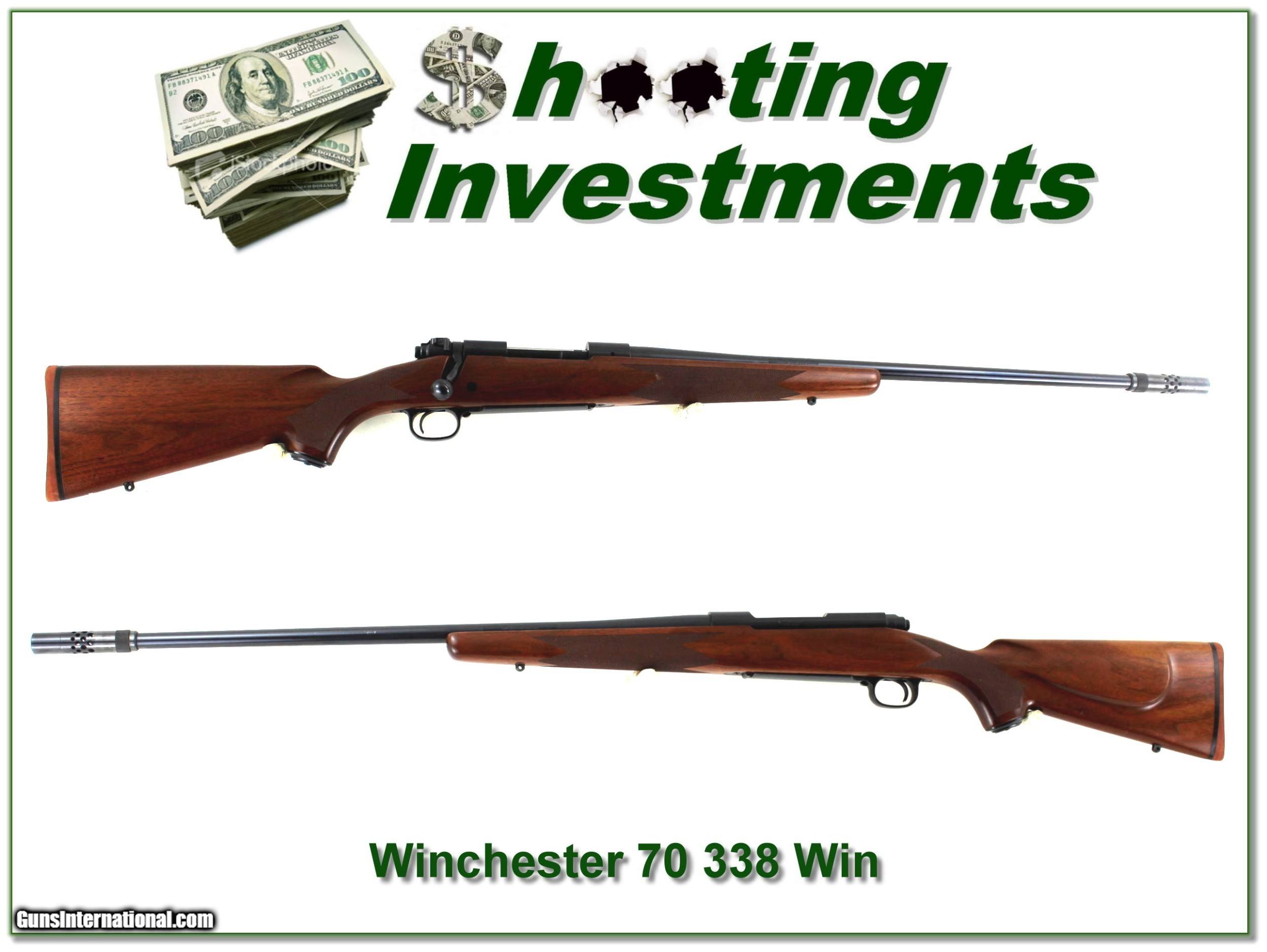 Description: Big game hunters, this is a VERY hard to find Winchester 70 Classic Sporter in 338 Winchester Magnum with the BOSS. It can be tuned for accuracy and will have recoil closer to a 30-06. It is in excellent condition and if fired, not more than test fired. It has a 26in barrel including the BOSS. It is a true Shooting Investment. Shipping and insurance is $49. Please email me with any questions or larger pictures. (Consign your quality firearms with Shooting Investments for only 12%! Let me know if you have any you would like to sell!) 22-1209 Payment: Payment is by Money Order, Cashiers Check or Personal Check. I can now also accept Credit Cards (MasterCard, Visa, Discover & American Express) with a 3% convenience fee. Shipping: The shipping charge will be listed in each description. It is $49 for most long guns. Some heavy guns, over 48in boxes or those insured for over $2000 will be higher. Shipments to Alaska and Hawaii are higher because air shipment is required. Most firearms are shipped on Tuesday and Thursday and usually in 5 days of receipt of payment. We package all shipments carefully and insure them. Optics are shipped Priority Mail and most other non-firearm shipments are shipped First Class. Returns: Our return policy is simple. If for any reason you are not pleased with your purchase, you may return your item for a full refund of purchase price. Ammunition cannot be returned. It is important to us that you are happy. Guns cannot be fired or dissembled before returning them and they must be returned in the same condition as received. Notification of a return must occur with-in 3 days of receipt at your dealer. Shipping, convenience and dealer fees are not refundable and are the responsibility of the buyer. Lay-a-way: If needed, we offer a 60 day lay-a-way option on most firearms. It is 1/3 now, 1/3 in 30 days and 1/3 in 60 days. Lay-a-way firearm sales are final and if not completed the first payment cannot be returned. Consigning your firearms with Shooting Investments: We will help you get top dollar for your firearms. While most local guns shops charge 20% or more, our fee is only 12% with a minimum of $75. At your local gun shop it might take months to sell. Selling on-line provides instant access to thousands of interested buyers. You won’t find any other on-line dealer willing to sell your firearms for only 12% or listing every gun on 3 separate s. Selling through an House typically costs the seller 15% and the buyer an addition 15% (so 30%) and you have to wait several months to sell and longer to receive funds. If properly priced, we will sell your firearms in a few weeks. Send us an email or give us a call and we’ll explain how easy it is for you to get top dollar. Trading: Trading for use is really just buying your gun to re-sell. If you have a gun you want to trade, please email a picture and we will let you know what we can give or it. You will always get more if we sell it for you on consignment. Help for California Buyers: We are happy to ship to California. It is the buyer’s responsibility to make sure any item you buy is legal in your state. We are also happy to help with your purchase of a firearm from someone other than us. If you see a gun you would like to buy but the seller can’t or won’t ship to California they can ship to use and we’ll then ship it to your California dealer. The cost for this service is only $30 + shipping. Let us know if we can help! SOLD |