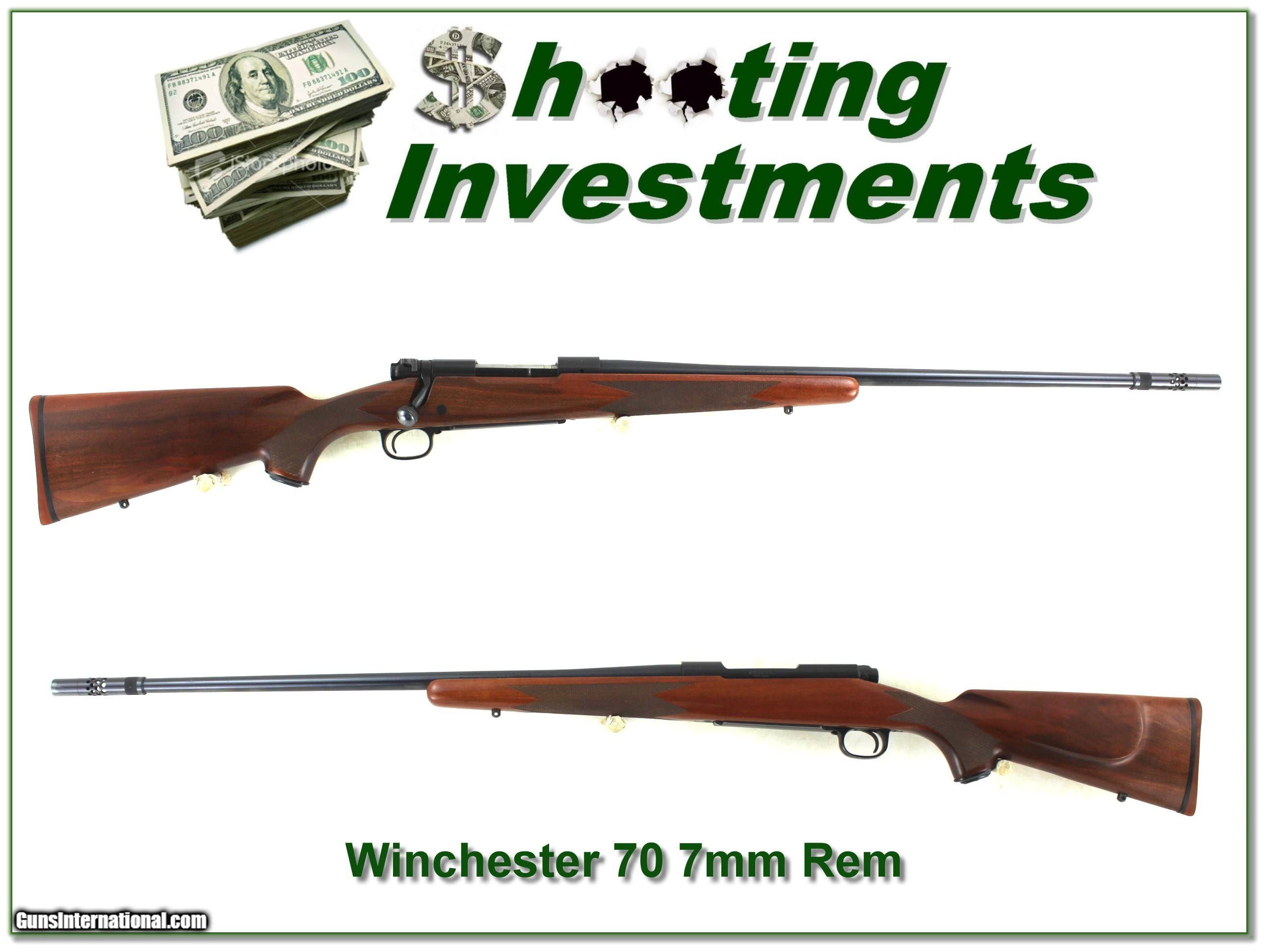 Description: Big game hunters, this is an excellent condition and hard to find Winchester Model 70 7mm Remington Magnum Classic Sportier with factory BOSS. It has a 26.5in barrel including the recoil reducing BOSS. With it, recoil will be more like a 243. For those that like suppressors it is already threaded! It is a New Haven made Winchester with Red Pad and the pre-64 Claw extractor! It find only a few minor marks. It will make a classic hunting gun or fine addition to your collection. It is a Shooting Investment! I am selling this one on consignment and as such lay-a-way can’t be used. It does of course have the standard 3-day inspection. Shipping and insurance is $49. Please email me with any questions or larger pictures. (Consign your quality firearms with Shooting Investments for only 12%! Let me know if you have any you would like to sell!) 25-0033 Payment: Payment is by Money Order, Cashier’s Check or Personal Check. I can now also accept Credit Cards (MasterCard, Visa, Discover & American Express) with a 3% convenience fee. Shipping: The shipping charge will be listed in each description. It is $49 for most firearms. Some heavy guns or those insured for over $2000 will be higher. Shipments to Alaska and Hawaii are higher because air shipment is required. Most firearms are shipped on Tuesday and Thursday and usually in 5 days of receipt of payment. We package all shipments carefully and insure them. Optics are shipped Priority Mail and most other non-firearm shipments are shipped First Class. Returns: Our return policy is simple. If for any reason you are not pleased with your purchase, you may return your item for a full refund of purchase price. Ammunition cannot be returned. It is important to us that you are happy. Guns cannot be fired or dissembled before returning them and they must be returned in the same condition as received. Notification of a return must occur within 3 days of receipt at your dealer. Shipping, convenience and dealer fees are not refundable and are the responsibility of the buyer. Lay-a-way: If needed, we offer a 60 day lay-a-way option on most firearms. It is 1/3 now, 1/3 in 30 days and 1/3 in 60 days. Lay-a-way firearm sales are final and cannot be returned. If a lay-a-way is not completed the first payment cannot be refunded. Consigning your firearms with Shooting Investments: We will help you get top dollar for your firearms. While most local guns shops charge 20% or more, our fee is only 12% with a minimum of $100. At your local gun shop it might take months to sell. Selling on-line provides instant access to thousands of interested buyers. You won’t find any other on-line dealer willing to sell your firearms for only 12% or listing every gun on 3 separate s. Selling through an House typically costs the seller 15% and the buyer an addition 15% (so 30%) and you have to wait several months to sell and longer to receive funds. If properly priced, we will sell your firearms within a few weeks. Send us an email or give us a call and we’ll explain how easy it is for you to get top dollar. Trading: Trading for us is really just buying your gun to re-sell. If you have a gun you want to trade, please email a picture and we will let you know what we can give for it. You will always get more if we sell it for you on consignment. SOLD |