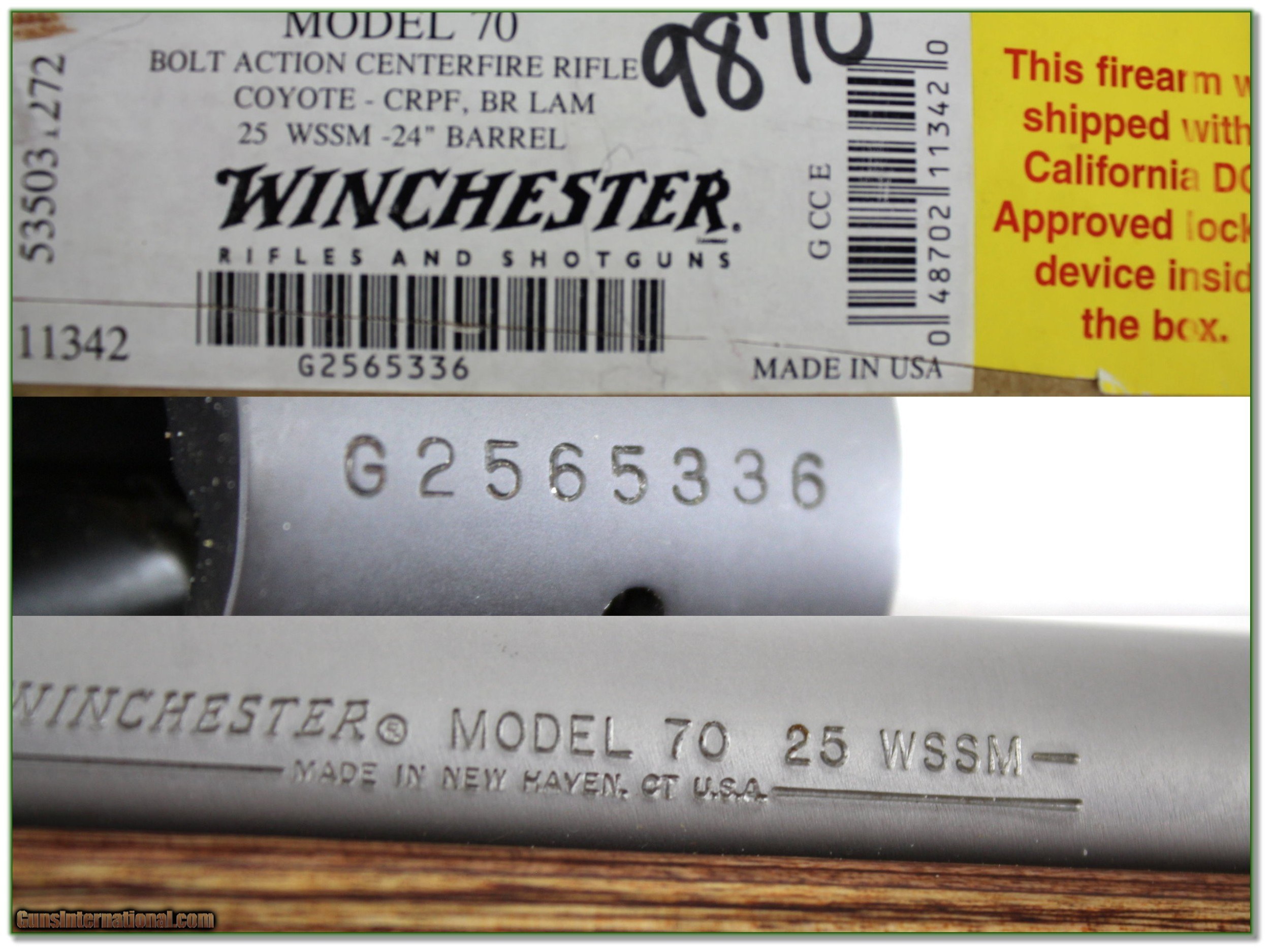 Winchester 70 Coyote Stainless HB Laminated stock 25 WSSM LNIB