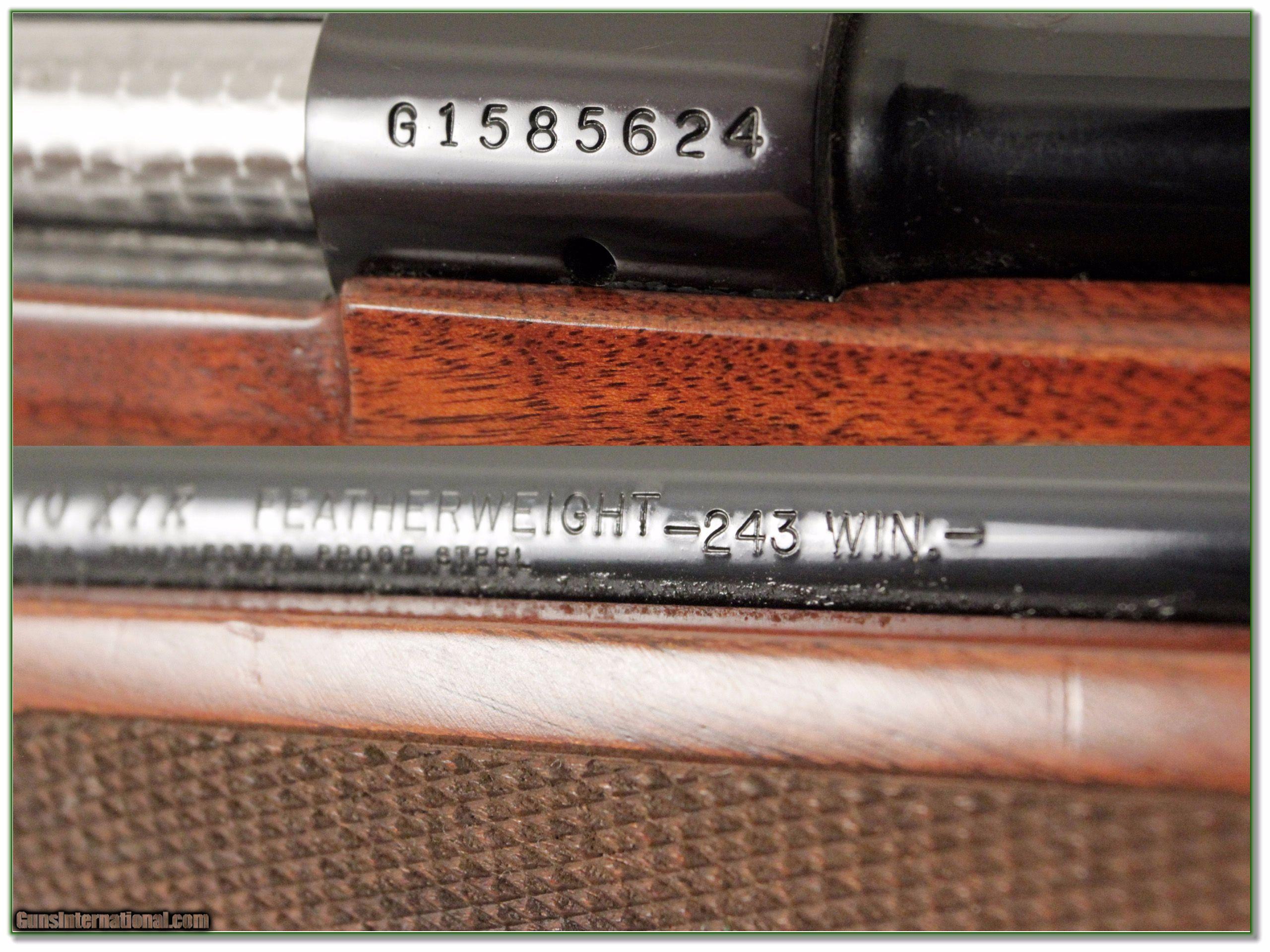 Description: Collectors, hunters and shooters, this beautiful Model 70 Featherweight was made in 1981. It is an XTR in 243. The blue is near new with no marks I see. The wood has only a couple on the left side under the receiver. This one will make a classic hunting gun or fine addition to your collection! It is a real Shooting Investment. Shipping and insurance is $35 or $15 more if you want it shipped in a new Plano hard case. Please email me with any questions or larger pictures. (Consign your quality firearms with Shooting Investments for only 10%! Let me know if you have any you would like to sell!) 17-0912 Payment: Payment is by Money Order, Cashiers Check or Personal Check. I can now also accept MasterCard and Visa with a 3% convenience fee. PayPal can be used for some items but never firearms. Please let us know if you would like to pay via PayPal. Shipping: The shipping charge will be listed in each description. It is $35 for most guns. Some heavy guns or those insured for over $2000 will be higher. Shipments to Alaska and Hawaii are higher because air shipment is required. Most firearms are shipped within 5 days of receipt of payment. We prefer shipping at the beginning of the week to avoid firearms in transit over weekends. We package all shipments carefully and insure them for the full purchase price, rounded up to the next $100. In the unlikely event that damage occurs, it is important that you save all packaging material for the claims process. Optics are shipped Priority Mail and most other non-firearm shipments are shipped First Class. Returns: Our return policy is simple. If for any reason you are not pleased with your purchase, you may return your item for a refund. The only exception is ammunition, it cannot be returned. It is important to us that you are happy. Guns cannot be fired or dissembled before returning them and must be returned in the same condition as received. Notification of a return must occur with-in 3 days of receipt at your dealer. Shipping, convenience and dealer fees are not refundable and are the responsibility of the buyer. Lay-a-way: If needed, we offer a 60 day lay-a-way option on most firearms. It is 1/3 now, 1/3 in 30 days and 1/3 in 60 days. Lay-a-way firearm sales are final. Consigning your firearms with Shooting Investments: We will help you get top dollar for your firearms. While most local guns shops charge 20% or more, our fee is only 10% with a minimum of $50. At your local gun shop it might take months to sell. Selling on-line provides instant access to thousands of interested buyers. You won’t find any other on-line dealer willing to sell your firearms for only 10% or listing every gun on 4 separate s. Selling through an House typically costs the seller 15% and the buyer an addition 15% (so 30%) and you have to wait several months to sell and longer to receive funds. If properly priced, we will sell your firearms in a week or two. Send us an email or give us a call and we’ll explain how easy it is for you to get top dollar. Trading: We collect guns and usually just trade for guns we want to add to our collections. We often sell guns for others wanting to purchase one of ours. We find this the most fair to both of us. Our Commission is only 10% and we hold the gun you want until yours sells. Please contact us if you want to sell one of yours to buy one of ours. Help for California Buyers: We are happy to ship to California. It is the buyer’s responsibility to make sure any item you buy is legal in your state. We are also happy to help with your purchase of a firearm from someone other than us. If you see a gun you would like to buy but the seller can’t or won’t ship to California we can help. You buy the gun and have it shipped to us. We’ll then ship it to your California dealer. The cost for this service is only $30 + shipping. Let me know if we can help! SOLD |