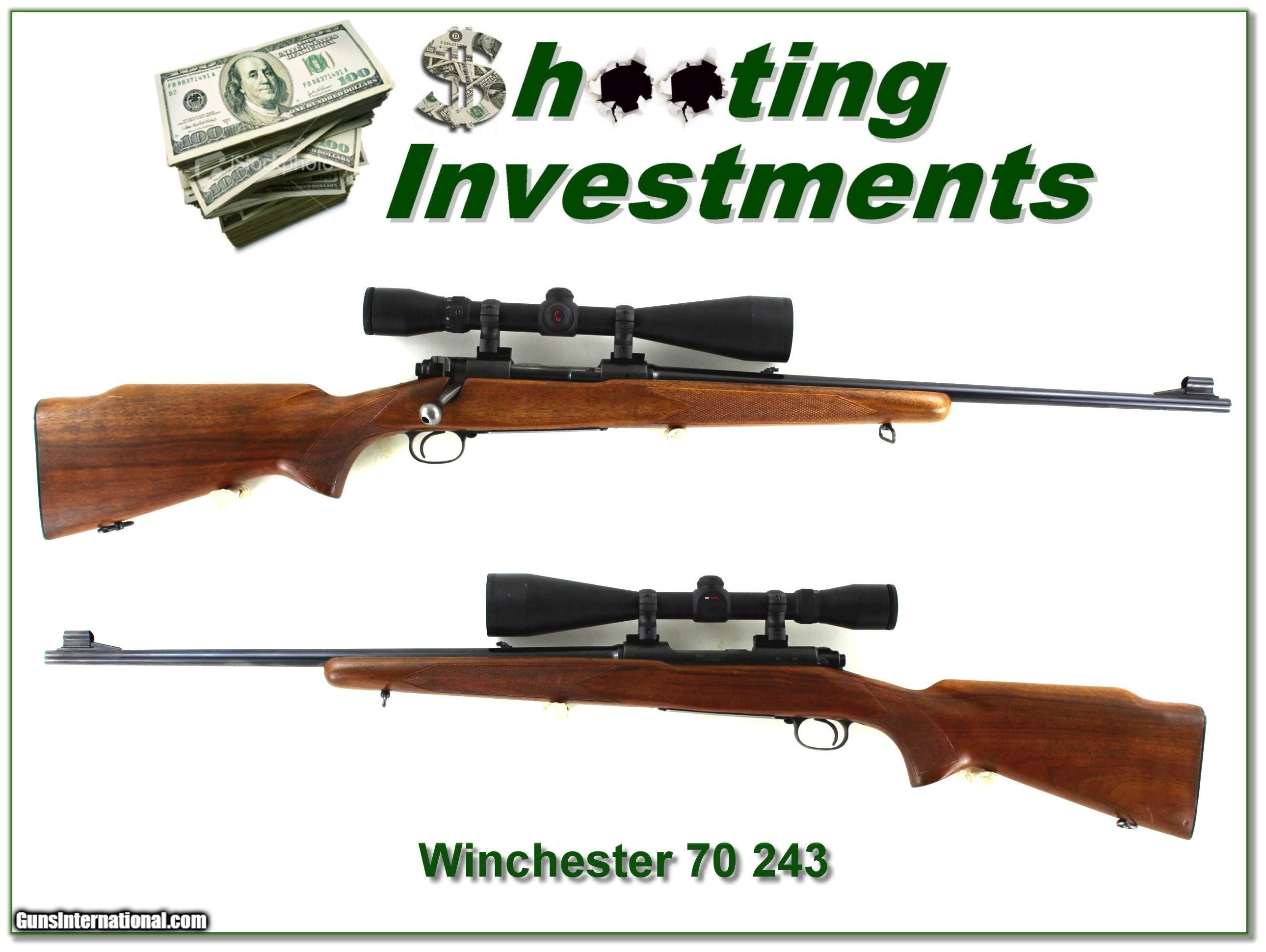 Description: This is a 1955 made Winchester Model 70 Featherweight in 243 Winchester. The metal is all original and excellent showing little wear or use. The original stock looks to have had its clear finished removed at some point and a new clear coat added. Otherwise is excellent with only a few minor marks. It comes with 3-10 scope as seen. It will make a classic Winchester! I am selling this one on consignment and as such lay-a-way can’t be used. It does of course have the standard 3-day inspection. Shipping and insurance is $49. Please email me with any questions or larger pictures. (Consign your quality firearms with Shooting Investments for only 12%! Let me know if you have any you would like to sell!) 23-0559 Payment: Payment is by Money Order, Cashier’s Check or Personal Check. I can now also accept Credit Cards (MasterCard, Visa, Discover & American Express) with a 3% convenience fee. Shipping: The shipping charge will be listed in each description. It is $49 for most firearms. Some heavy guns or those insured for over $2000 will be higher. Shipments to Alaska and Hawaii are higher because air shipment is required. Most firearms are shipped on Tuesday and Thursday and usually in 5 days of receipt of payment. We package all shipments carefully and insure them. Optics are shipped Priority Mail and most other non-firearm shipments are shipped First Class. Returns: Our return policy is simple. If for any reason you are not pleased with your purchase, you may return your item for a full refund of purchase price. Ammunition cannot be returned. It is important to us that you are happy. Guns cannot be fired or dissembled before returning them and they must be returned in the same condition as received. Notification of a return must occur within 3 days of receipt at your dealer. Shipping, convenience and dealer fees are not refundable and are the responsibility of the buyer. Lay-a-way: If needed, we offer a 60 day lay-a-way option on most firearms. It is 1/3 now, 1/3 in 30 days and 1/3 in 60 days. Lay-a-way firearm sales are final and cannot be returned. If a lay-a-way is not completed the first payment cannot be refunded. Consigning your firearms with Shooting Investments: We will help you get top dollar for your firearms. While most local guns shops charge 20% or more, our fee is only 12% with a minimum of $75. At your local gun shop it might take months to sell. Selling on-line provides instant access to thousands of interested buyers. You won’t find any other on-line dealer willing to sell your firearms for only 12% or listing every gun on 3 separate s. Selling through an House typically costs the seller 15% and the buyer an addition 15% (so 30%) and you have to wait several months to sell and longer to receive funds. If properly priced, we will sell your firearms within a few weeks. Send us an email or give us a call and we’ll explain how easy it is for you to get top dollar. Trading: Trading for us is really just buying your gun to re-sell. If you have a gun you want to trade, please email a picture and we will let you know what we can give for it. You will always get more if we sell it for you on consignment. SOLD |