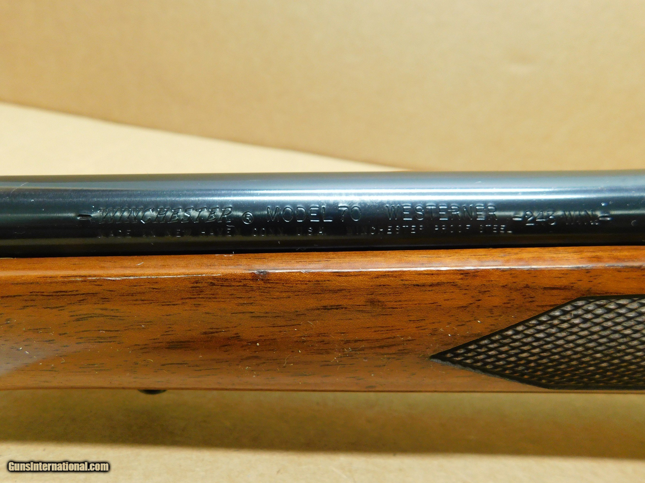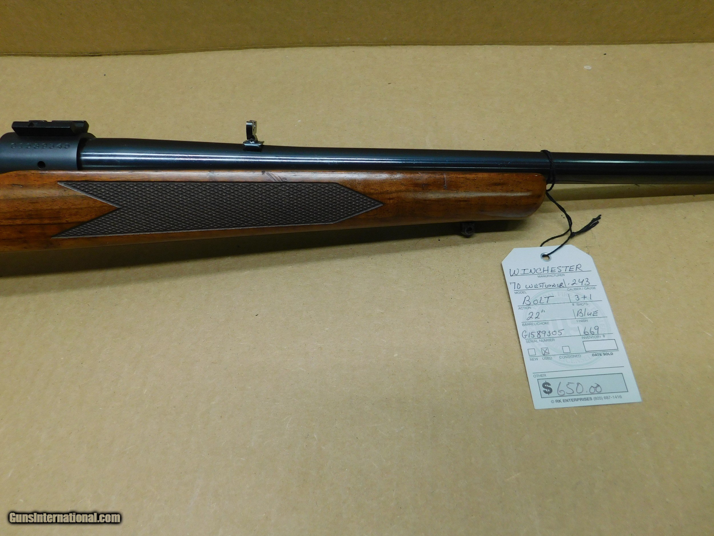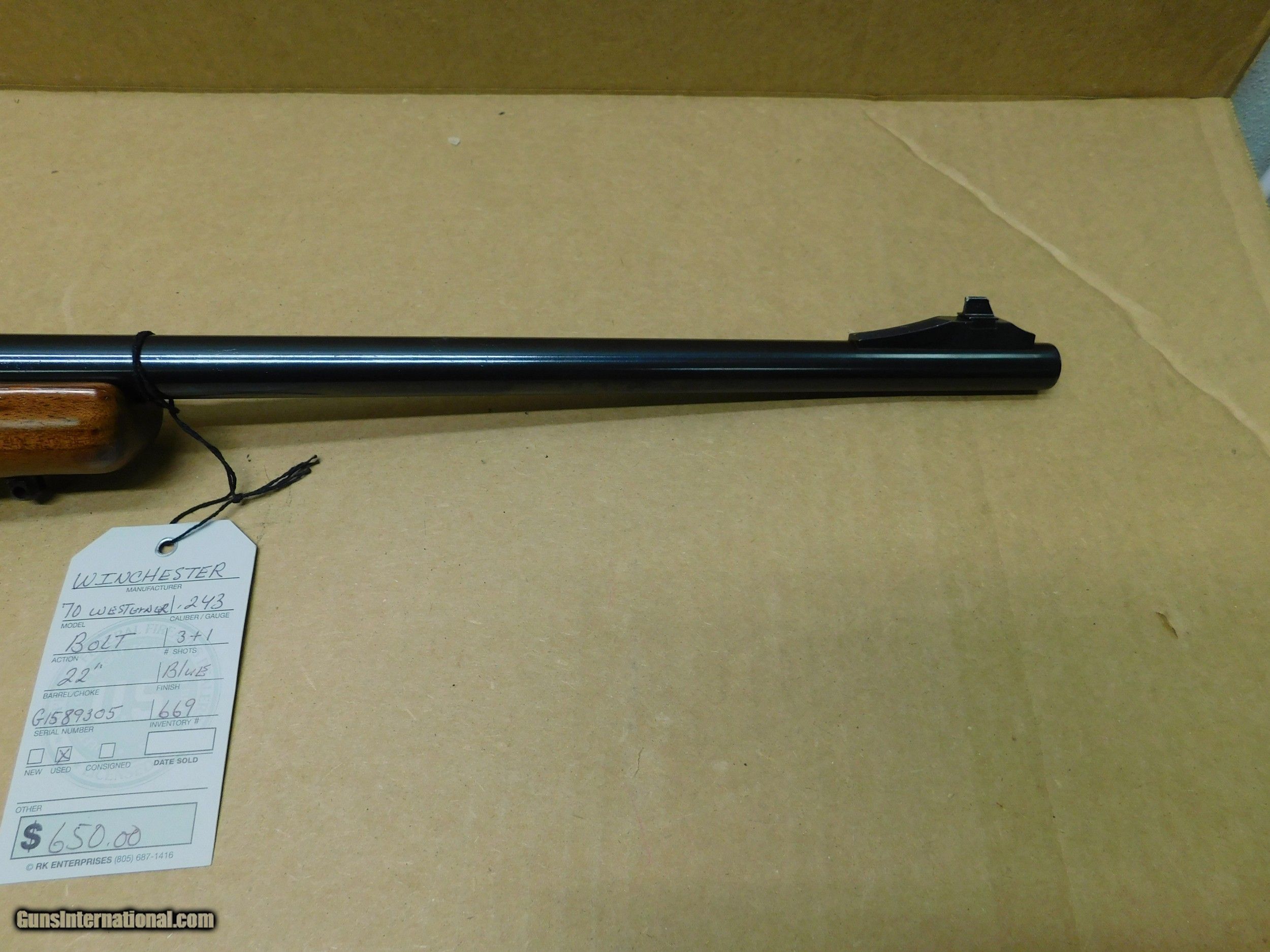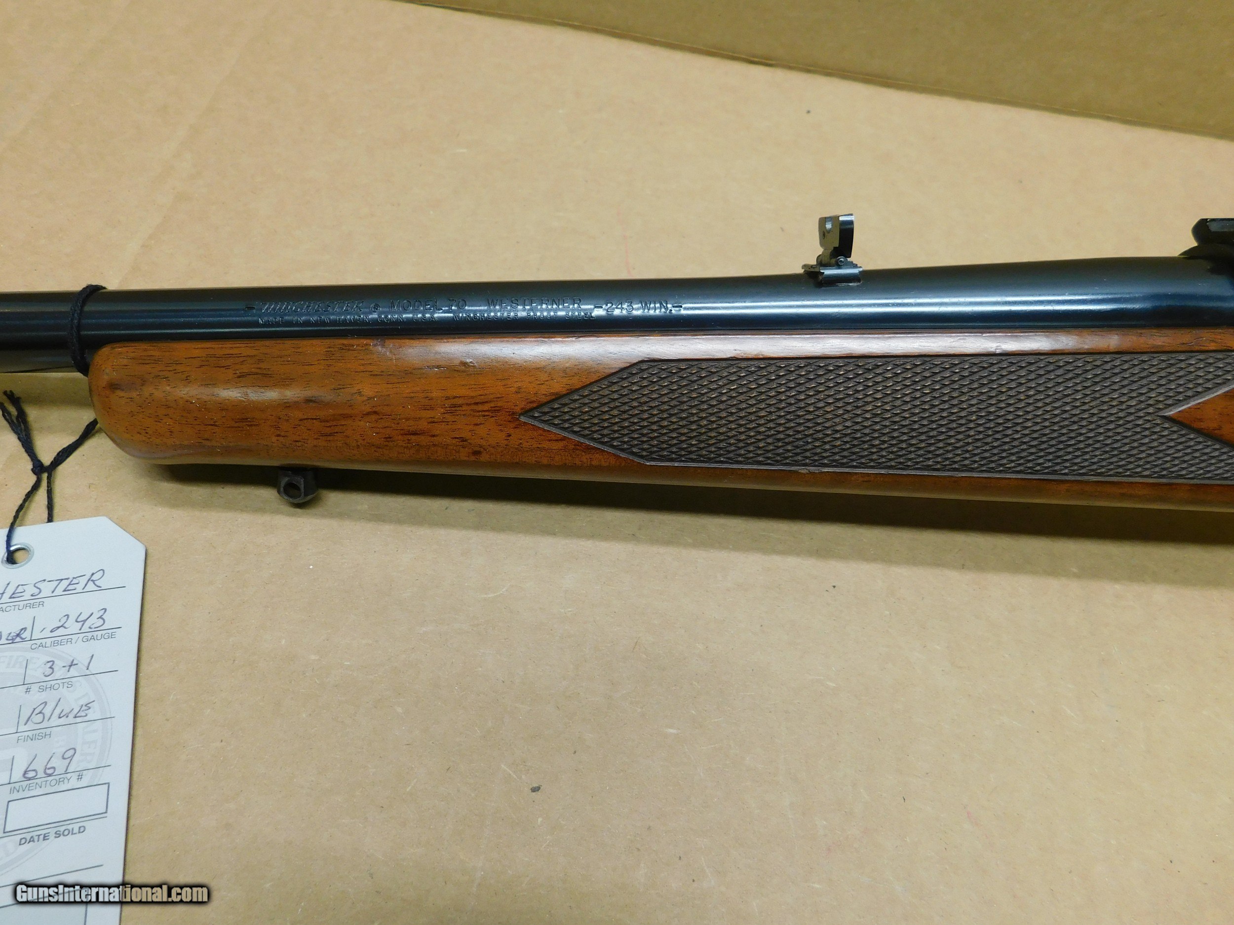 Description: This is a used Winchester 70 Westerner in a 243 bolt action rifle It is a 3+1 shot with a 22" blued barrel This rifle is in very nice shape, has some wear on the stock SN-G1589305 $650.00 SOLD Manufacturer: Winchester Model: 70 Westerner Serial Number: G1589305 Caliber Info: 243 Bore: very good Condition: Used Metal Condition: very good Wood Condition: Very good Bore Condition: Very good Barrels: 22 Barrel Type: round Action: Bolt Triggers: Standard Stock: Checkered walnut with sling studs Butt Pad: Winchester rubber Finish: Blue Sights: Fold-down rear sight |