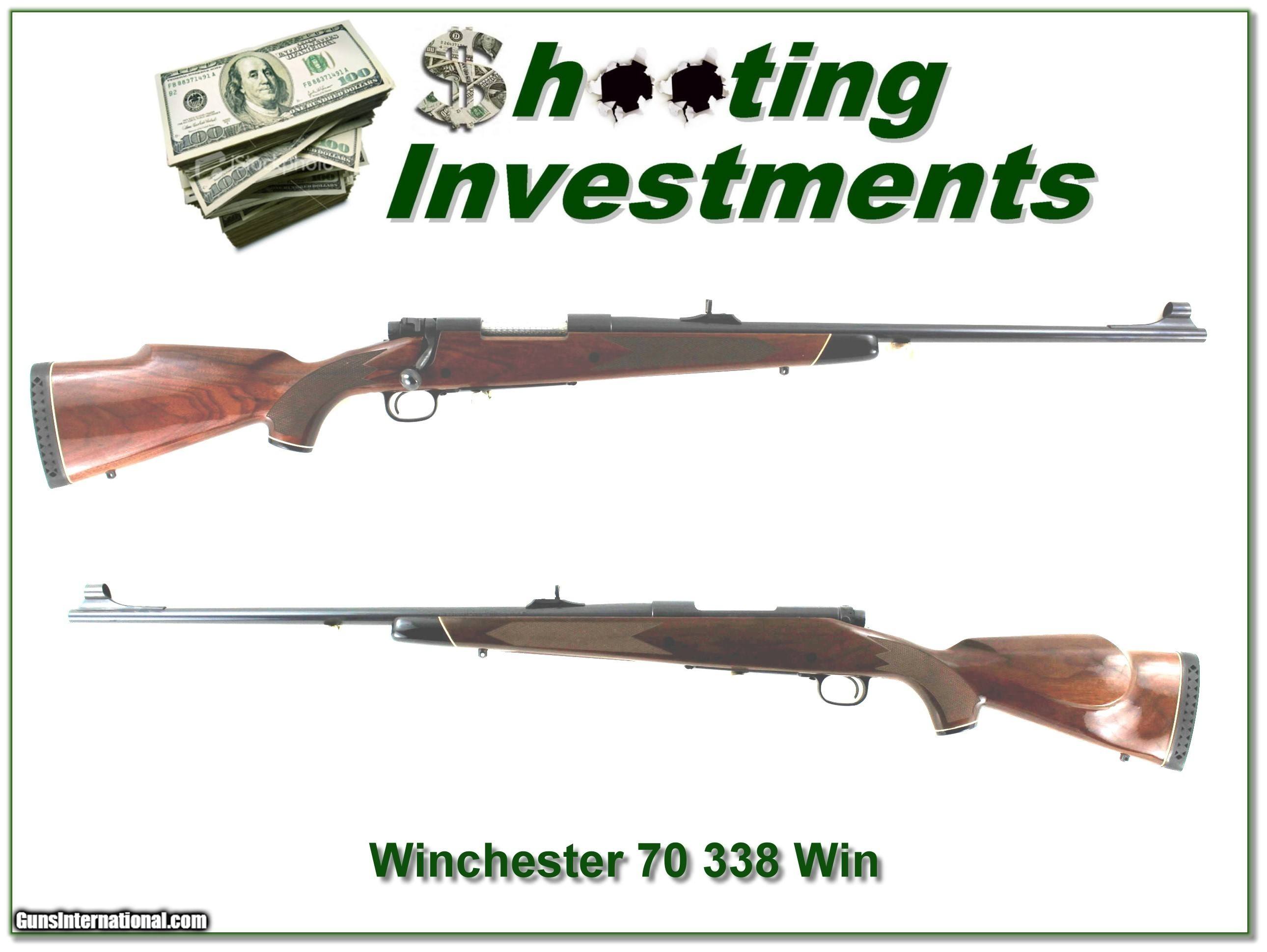 Description: Collectors, this is a like new collector condition early Winchester 70 XTR in the hard hitting 338 Winchester Magnum! From the bolt face I believe it’s unfired! The wood has beautiful grain and high gloss finished. The barrel is 24in. I don’t find any marks on the metal or the wood! It is a Shooting Investment! Shipping and insurance is $49. Please email me with any questions or larger pictures. (Consign your quality firearms with Shooting Investments for only 12%! Let me know if you have any you would like to sell!) 24-0697 Payment: Payment is by Money Order, Cashier’s Check or Personal Check. I can now also accept Credit Cards (MasterCard, Visa, Discover & American Express) with a 3% convenience fee. Shipping: The shipping charge will be listed in each description. It is $49 for most firearms. Some heavy guns or those insured for over $2000 will be higher. Shipments to Alaska and Hawaii are higher because air shipment is required. Most firearms are shipped on Tuesday and Thursday and usually in 5 days of receipt of payment. We package all shipments carefully and insure them. Optics are shipped Priority Mail and most other non-firearm shipments are shipped First Class. Returns: Our return policy is simple. If for any reason you are not pleased with your purchase, you may return your item for a full refund of purchase price. Ammunition cannot be returned. It is important to us that you are happy. Guns cannot be fired or dissembled before returning them and they must be returned in the same condition as received. Notification of a return must occur within 3 days of receipt at your dealer. Shipping, convenience and dealer fees are not refundable and are the responsibility of the buyer. Lay-a-way: If needed, we offer a 60 day lay-a-way option on most firearms. It is 1/3 now, 1/3 in 30 days and 1/3 in 60 days. Lay-a-way firearm sales are final and cannot be returned. If a lay-a-way is not completed the first payment cannot be refunded. Consigning your firearms with Shooting Investments: We will help you get top dollar for your firearms. While most local guns shops charge 20% or more, our fee is only 12% with a minimum of $75. At your local gun shop it might take months to sell. Selling on-line provides instant access to thousands of interested buyers. You won’t find any other on-line dealer willing to sell your firearms for only 12% or listing every gun on 3 separate s. Selling through an House typically costs the seller 15% and the buyer an addition 15% (so 30%) and you have to wait several months to sell and longer to receive funds. If properly priced, we will sell your firearms within a few weeks. Send us an email or give us a call and we’ll explain how easy it is for you to get top dollar. Trading: Trading for us is really just buying your gun to re-sell. If you have a gun you want to trade, please email a picture and we will let you know what we can give for it. You will always get more if we sell it for you on consignment. SOLD |