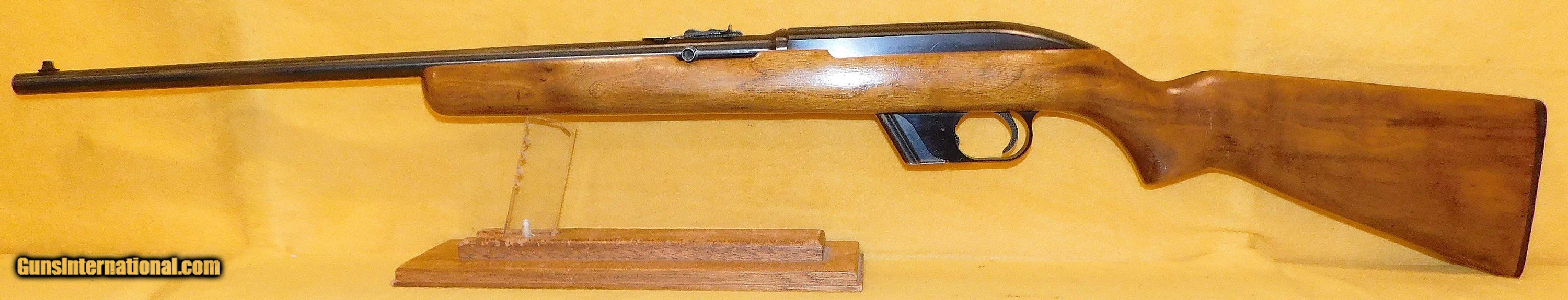 Description: WINCHESTER 77 IN .22 L.R. CAL., WITH 22" BARREL. COLOR BLUE. CONDITION 85%. SERIAL NUMBER NONE. WINCHESTER MODEL 77 (SEMI AUTO) IN .22 L.R. CALIBER, BRIGHT SHINY BORE, WOOD VERY GOOD TO EXCELLENT CONDITION, COMES WITH ONE FIVE ROUND FACTORY MAGAZINE, 85% OVERALL CONDITION, OUR STOCK # D3606. SOLD |