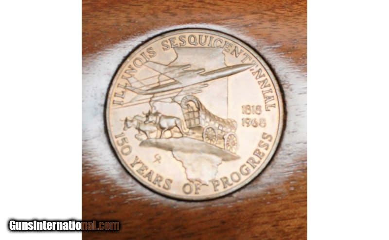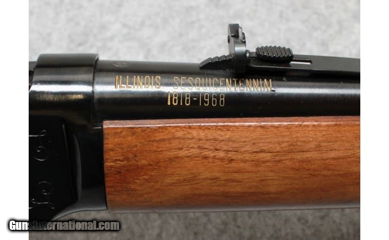 Description: Winchester 94 Illinois 1818-1968 Sesquicentennial lever action rifle chambered in .30-30 Winchester. The walnut stock has a brass token for the state of Illinois and factory engraved receiver. No box. .30-30 Winchester SOLD Metal Condition: Very Good with Minor Handling Marks Wood Condition: Very Good with Minor Handling Marks Bore Condition: Bright And Clear with No Pitting Barrels: 20 Inch Triggers: Factory Gold Stock Dimensions: LOP 13.25 Inch Butt Pad: Gold with Checkering Weight: 6 lbs 6 oz Sights: Blade Front with Hood / Adjustable U-Notch Rear Item Location: Allen, TX |