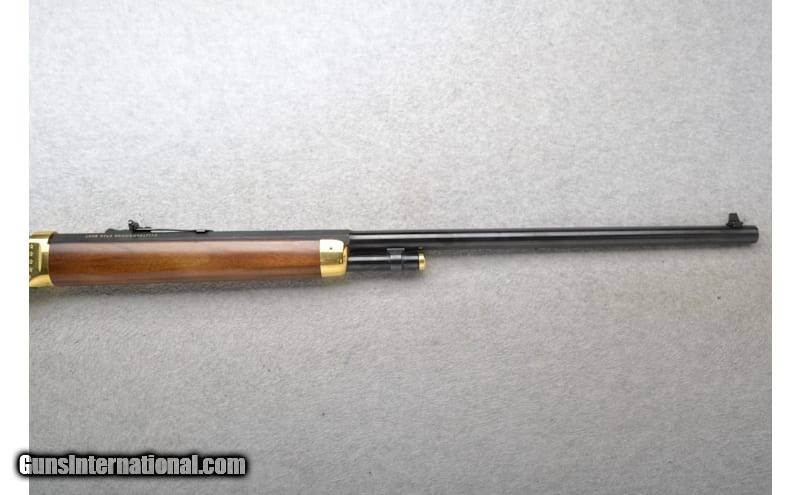 Description: This Winchester 94 Lone Star Commemorative is a right-hand lever action rifle in .30-30 Winchester Cal. The barrel is 26 inches long. It has a fixed, raised, bar front sight, and an adjustable notch rear sight. The forearm is smooth hardwood with a gold band. The stock is a smooth hardwood pistol grip with a Texas cap, an inlaid medallion, and a smooth metal butt plate. No box. .30-30 Winchester .30-30 Winchester Chambers: 6 round tubular magazine Wood Condition: Excellent with mild handling marks Bore Condition: Excellent Barrels: 26 Stock Dimensions: LOP 13.25 Fore End: Smooth hardwood Butt Pad: Smooth metal Weight: 7 lbs Sights: "Fixed raised bar front, adjustable notch rear Item Location: Richfield, WI Price: $899.99 Contact Seller |