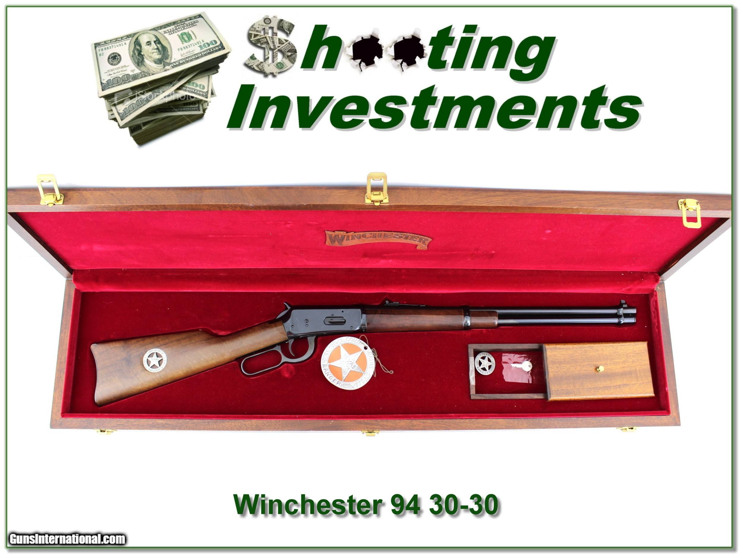 Description: Collectors, this is a set of 3 collectable Texas Ranger items. The first is a new and unfired Winchester 94 30-30. It is a 20in Carbine and comes in Wooden display case as seen. The second is a very hard to find Texas Ranger commemorative Tomahawk. The Tomahawk is like new. The case has wear. And third, is the Texas Ranger commemorative knife. It to is new with wear on the wooden case. These are being sold as a set. Shipping is $129 because of size and weight. I am selling this one on consignment and as such lay-a-way can’t be used. It does of course have the standard 3-day inspection. Shipping and insurance is $129. Please email me with any questions or larger pictures. (Consign your quality firearms with Shooting Investments for only 12%! Let me know if you have any you would like to sell!) 21-1018 Payment: Payment is by Money Order, Cashiers Check or Personal Check. I can now also accept Credit Cards (MasterCard, Visa, Discover & American Express) with a 3% convenience fee. Shipping: The shipping charge will be listed in each description. It is $39 for most firearms. Some heavy guns or those insured for over $2000 will be higher. Shipments to Alaska and Hawaii are higher because air shipment is required. Most firearms are shipped on Tuesday and Thursday and usually in 5 days of receipt of payment. We package all shipments carefully and insure them. Optics are shipped Priority Mail and most other non-firearm shipments are shipped First Class. Returns: Our return policy is simple. If for any reason you are not pleased with your purchase, you may return your item for a full refund of purchase price. Ammunition cannot be returned. It is important to us that you are happy. Guns cannot be fired or dissembled before returning them and they must be returned in the same condition as received. Notification of a return must occur with-in 3 days of receipt at your dealer. Shipping, convenience and dealer fees are not refundable and are the responsibility of the buyer. Lay-a-way: If needed, we offer a 60 day lay-a-way option on most firearms. It is 1/3 now, 1/3 in 30 days and 1/3 in 60 days. Lay-a-way firearm sales are final and if not completed the first payment cannot be returned. Consigning your firearms with Shooting Investments: We will help you get top dollar for your firearms. While most local guns shops charge 20% or more, our fee is only 12% with a minimum of $75. At your local gun shop it might take months to sell. Selling on-line provides instant access to thousands of interested buyers. You won’t find any other on-line dealer willing to sell your firearms for only 12% or listing every gun on 3 separate s. Selling through an House typically costs the seller 15% and the buyer an addition 15% (so 30%) and you have to wait several months to sell and longer to receive funds. If properly priced, we will sell your firearms in a few weeks. Send us an email or give us a call and we’ll explain how easy it is for you to get top dollar. Trading: Trading for use is really just buying your gun to re-sell. If you have a gun you want to trade, please email a picture and we will let you know what we can give or it. You will always get more if we sell it for you on consignment. Help for California Buyers: We are happy to ship to California. It is the buyer’s responsibility to make sure any item you buy is legal in your state. We are also happy to help with your purchase of a firearm from someone other than us. If you see a gun you would like to buy but the seller can’t or won’t ship to California they can ship to use and we’ll then ship it to your California dealer. The cost for this service is only $30 + shipping. Let us know if we can help! SOLD |