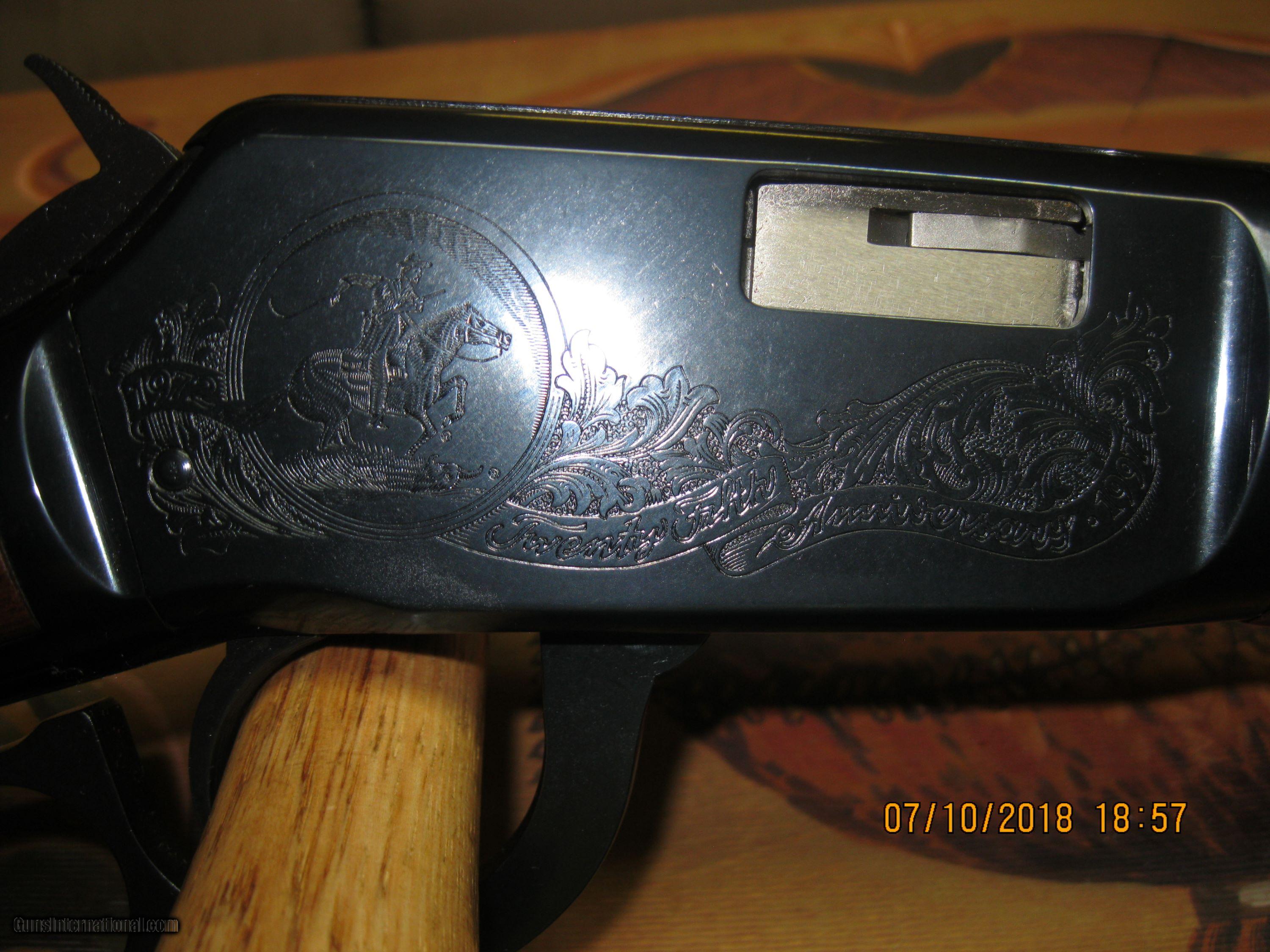 Description: This is the 1 of 2,500 9422 Winchester 22 caliber rifle. It has the father and son on one side of the receiver and the Winchester horse rider on the other side. This gun is unfired, has the correct box and all the paper work. I will ship and insure at the buyers expense. I would also consider a trade for Winchester lever guns, 1892 44-40 take down, , 65 20-25 take down, 73 44-40 0r 32-20 or any special model Winchester Lever gun. I am hearing impared and it is best to contact me by e mail or text me by cell phone 573 544 7881 SOLD Manufacturer: Winchester Model: 9422 Serial Number: FTT7230 Caliber Info: 22 Bore: liike new Condition: like new Metal Condition: like new Wood Condition: like new Bore Condition: like new Fore End: like new Finish: like new Engraving: As Aniversaery Model |
