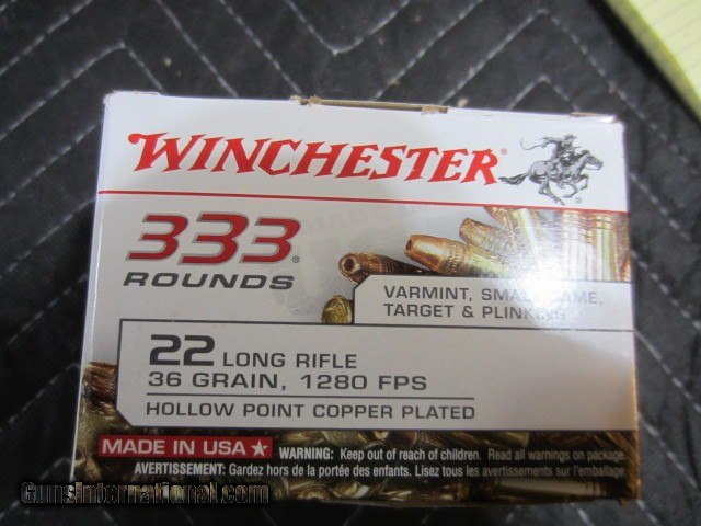 WINCHESTER BRAND 22 L.R. AMMO 333 ROUNDS PER CARTON