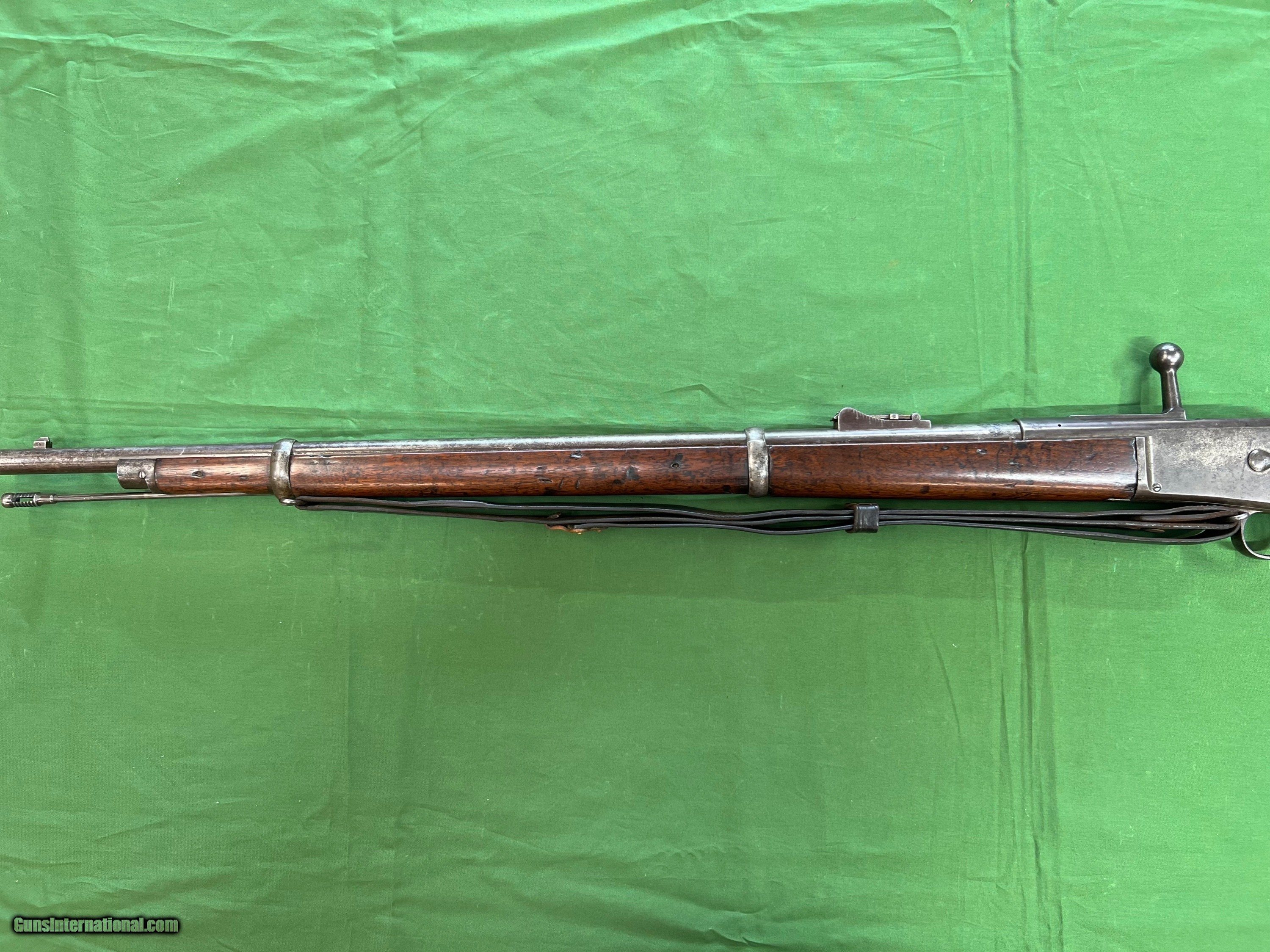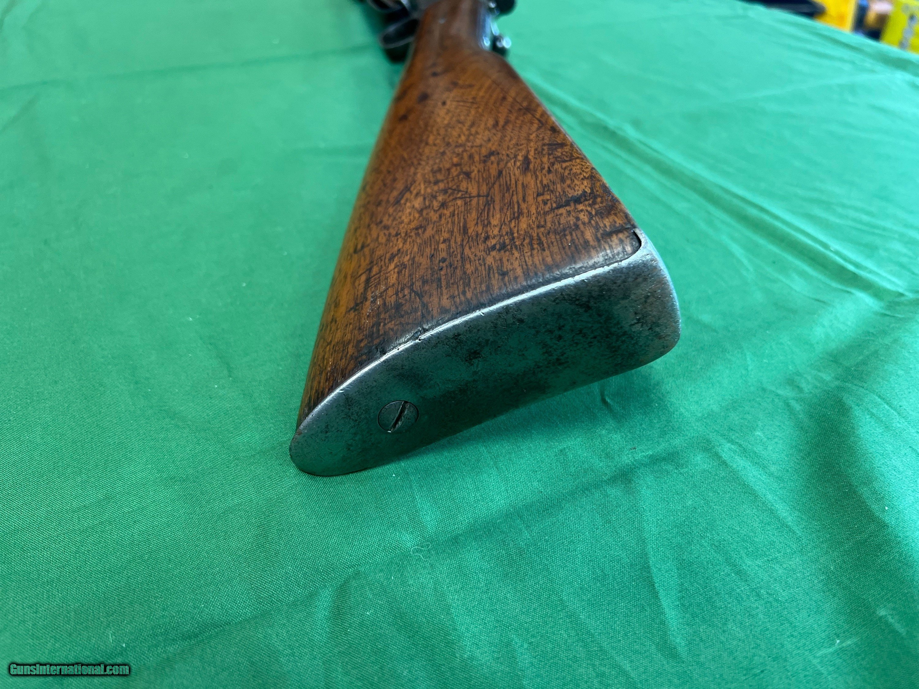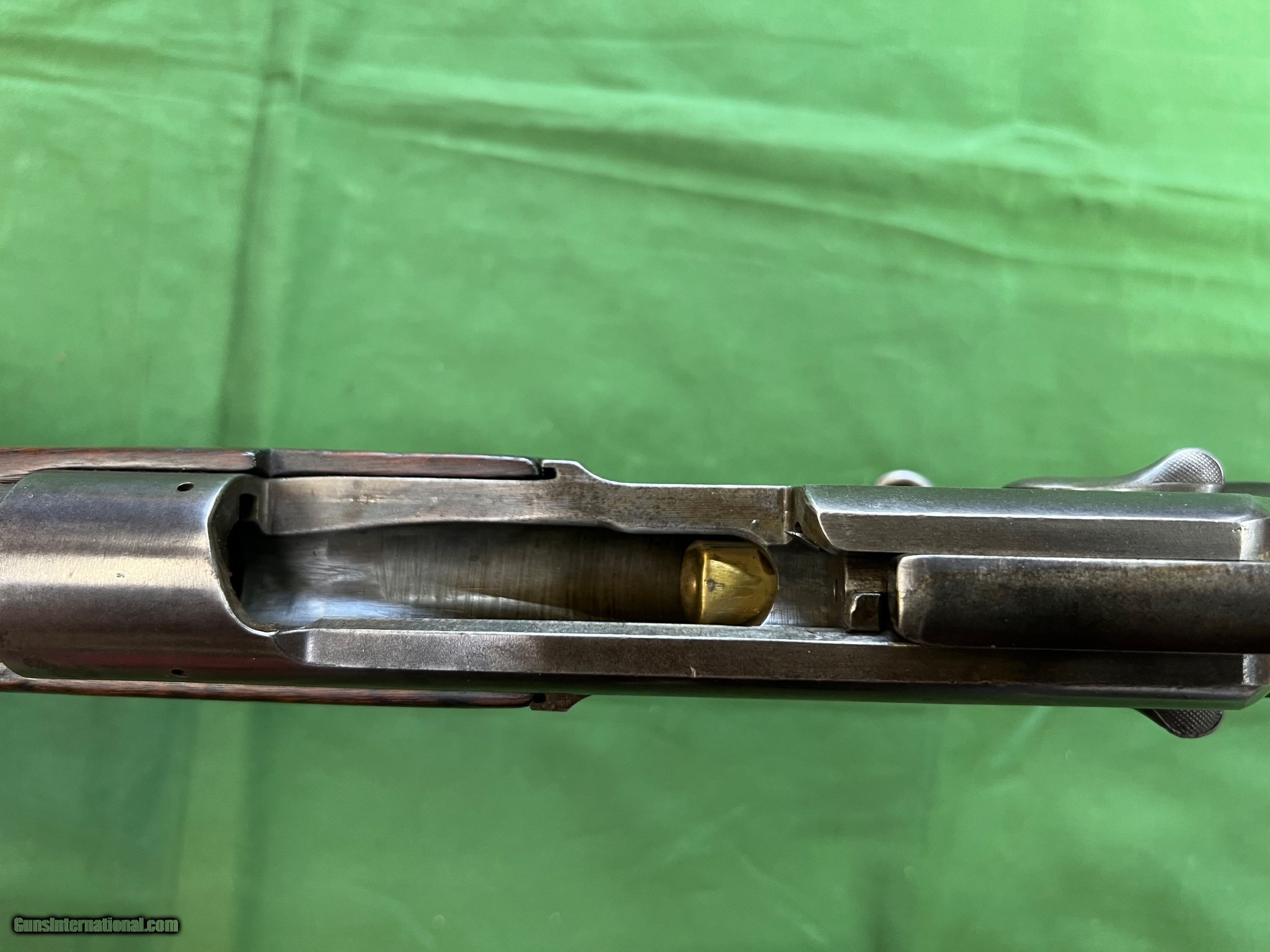 Description: Winchester Hotchkiss antique bolt action rifle in 45–70 GOV. Very nice example of a Hotchkiss Rifle that is in great condition. The rifle boasts a 28 inch barrel with adjustable site and was manufactured in the early 1880's. The bolt action is smooth and the gun is very well preserved. Very nice bore, would be a great gun to add to your collection Antique: Yes Rifle Caliber: .45-70 Government Manufacturer: Winchester Hotchkiss Model: 1883 Barrel Length: 28 Condition: Good++ Metal Condition: Fine Price: $2,950.00 Contact Seller |