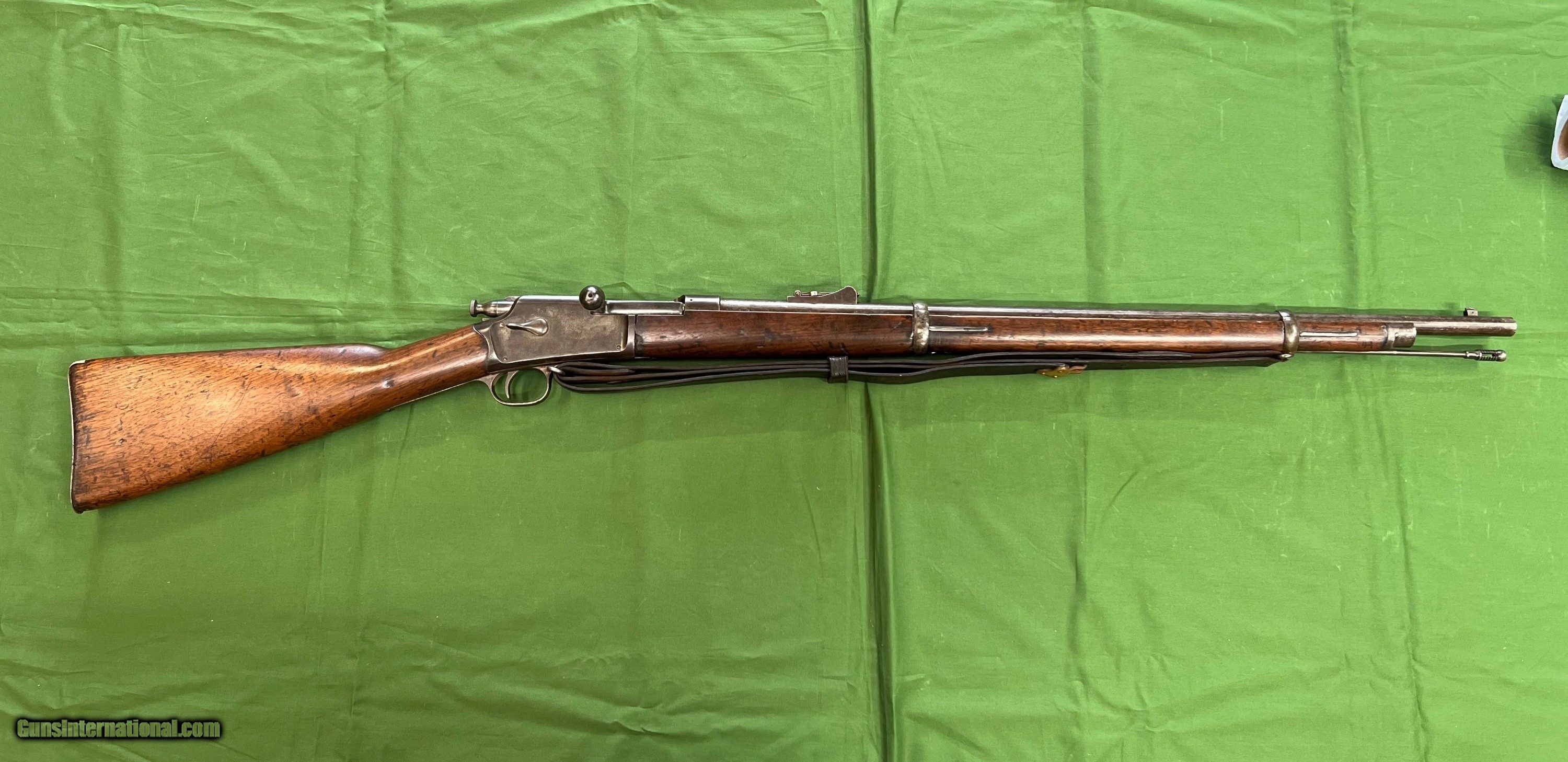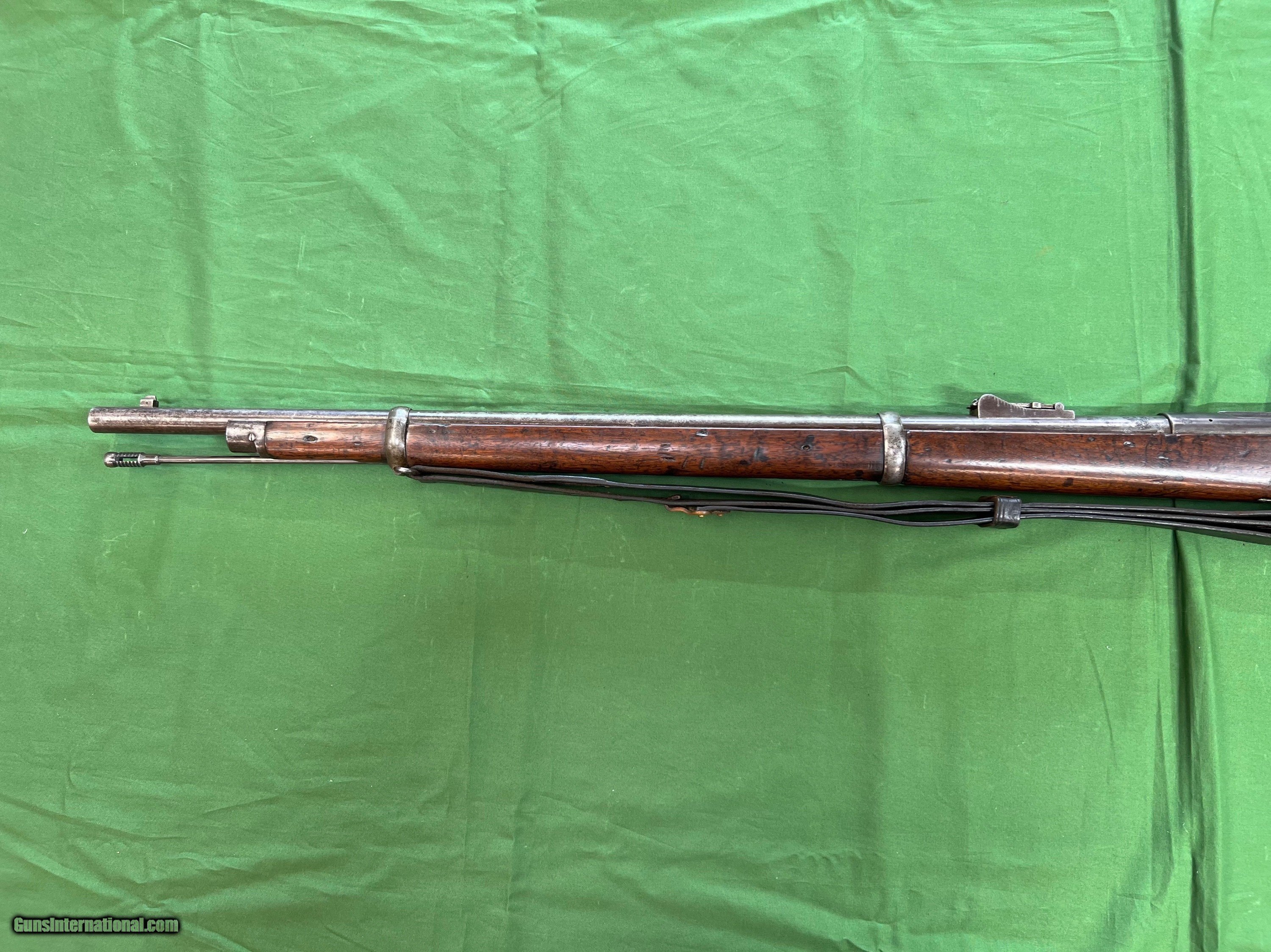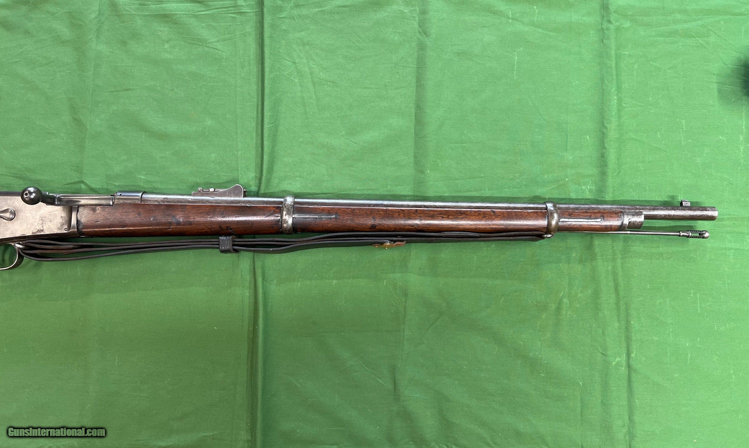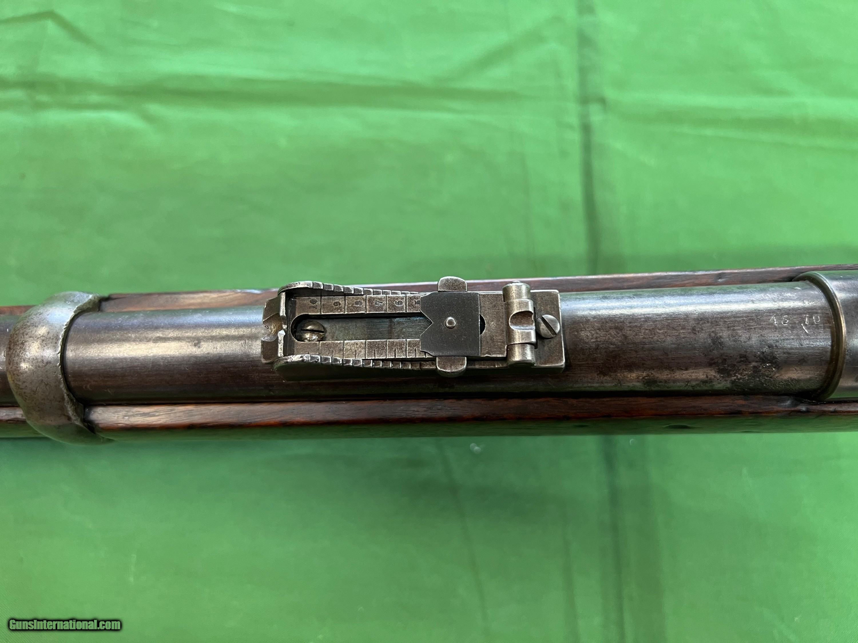 Description: Winchester Hotchkiss antique bolt action rifle in 45–70 GOV. Very nice example of a Hotchkiss Rifle that is in great condition. The rifle boasts a 28 inch barrel with adjustable site and was manufactured in the early 1880's. The bolt action is smooth and the gun is very well preserved. Very nice bore, would be a great gun to add to your collection Antique: Yes Rifle Caliber: .45-70 Government Manufacturer: Winchester Hotchkiss Model: 1883 Barrel Length: 28 Condition: Good++ Metal Condition: Fine Price: $2,950.00 Contact Seller |