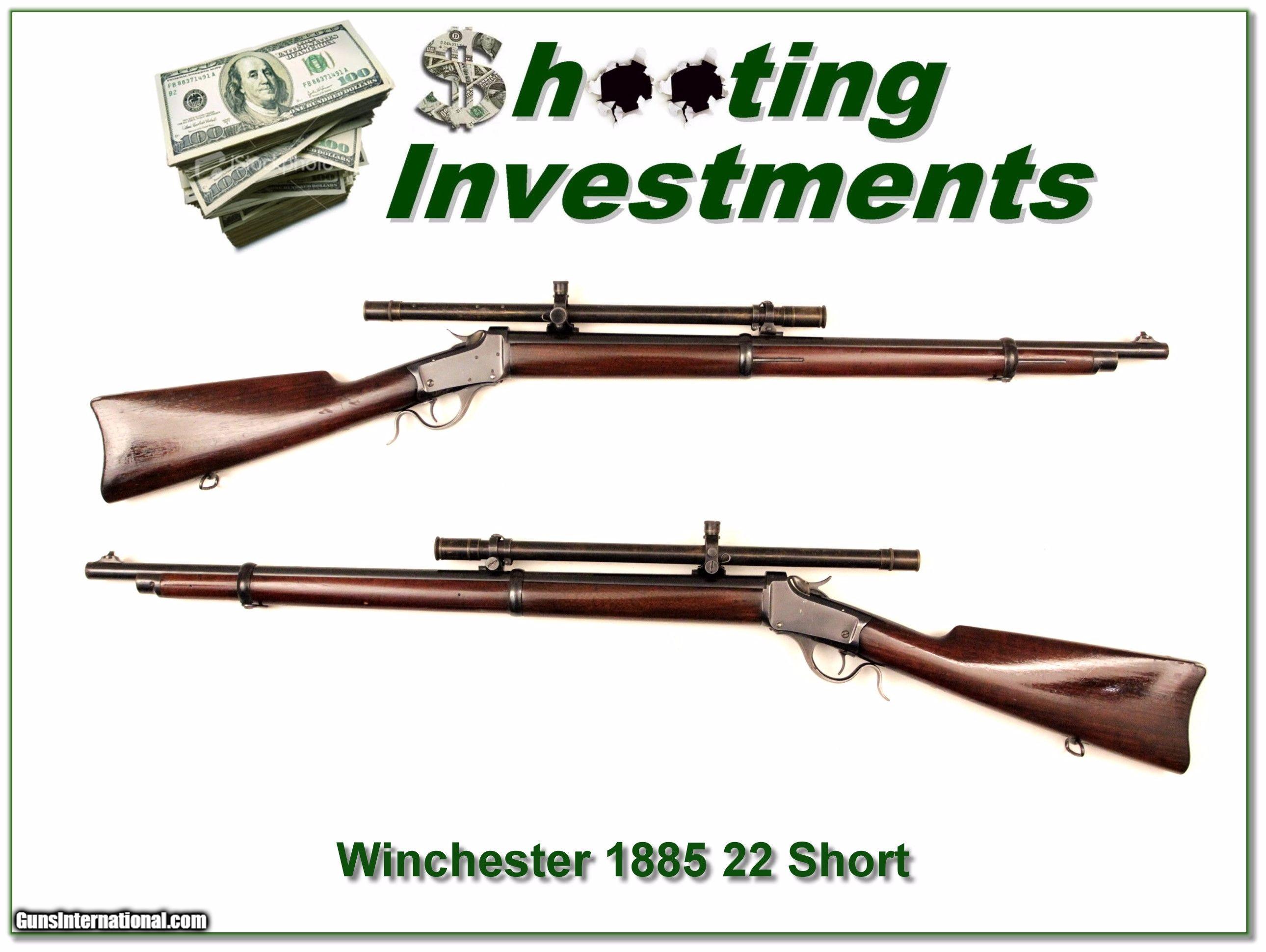 Description: This is Winchester 1885 Low Wall is a 22 Short Musket with full stock. It is in very nice condition with most blue remaining. It comes with period scope as shown. I can’t find a name on the scope. It looks to be brass and the owner says a Winchester scope? I have many high resolution pictures if needed. I am selling this one on consignment and as such lay-a-way can’t be used. It does of course have the standard 3 day inspection. Shipping and insurance is $39 or $19 more if you want it shipped in a new Plano hard case. Please email me with any questions or larger pictures. (I now consign quality firearms only 10%! Let me know if you have any you would like to sell!) [14-1055] Payment: Payment is by Money Order, Cashiers Check or Personal Check. I can now also accept MasterCard and Visa with a 3% convenience fee. PayPal can be used for some items but never firearms. Please let us know if you would like to pay via PayPal. Shipping: The shipping charge will be listed in each description. It is $39 for most long guns and $29 for most handguns. Some heavy guns or those insured for over $2000 will be higher. Shipments to Alaska and Hawaii are higher because air shipment is required. Most firearms are shipped on Tuesday and Thursday and usually in 5 days of receipt of payment. We package all shipments carefully and insure them. For long guns you can purchase a new Plano case for $19. They now cost us $22 when buying 100 at a time. Optics are shipped Priority Mail and most other non-firearm shipments are shipped First Class. Returns: Our return policy is simple. If for any reason you are not pleased with your purchase, you may return your item for a full refund of purchase price. Ammunition cannot be returned. It is important to us that you are happy. Guns cannot be fired or dissembled before returning them and they must be returned in the same condition as received. Notification of a return must occur with-in 3 days of receipt at your dealer. Shipping, convenience and dealer fees are not refundable and are the responsibility of the buyer. Lay-a-way: If needed, we offer a 60 day lay-a-way option on most firearms. It is 1/3 now, 1/3 in 30 days and 1/3 in 60 days. Lay-a-way firearm sales are final and if not completed the first payment cannot be returned. Consigning your firearms with Shooting Investments: We will help you get top dollar for your firearms. While most local guns shops charge 20% or more, our fee is only 10% with a minimum of $75. At your local gun shop it might take months to sell. Selling on-line provides instant access to thousands of interested buyers. You won’t find any other on-line dealer willing to sell your firearms for only 10% or listing every gun on 3 separate s. Selling through an House typically costs the seller 15% and the buyer an addition 15% (so 30%) and you have to wait several months to sell and longer to receive funds. If properly priced, we will sell your firearms in a few weeks. Send us an email or give us a call and we’ll explain how easy it is for you to get top dollar. Trading: Trading for use is really just buying your gun to re-sell. If you have a gun you want to trade, please email a picture and we will let you know what we can give or it. You will always get more if we sell it for you on consignment. Help for California Buyers: We are happy to ship to California. It is the buyer’s responsibility to make sure any item you buy is legal in your state. We are also happy to help with your purchase of a firearm from someone other than us. If you see a gun you would like to buy but the seller can’t or won’t ship to California they can ship to use and we’ll then ship it to your California dealer. The cost for this service is only $30 + shipping. Let us know if we can help! SOLD |